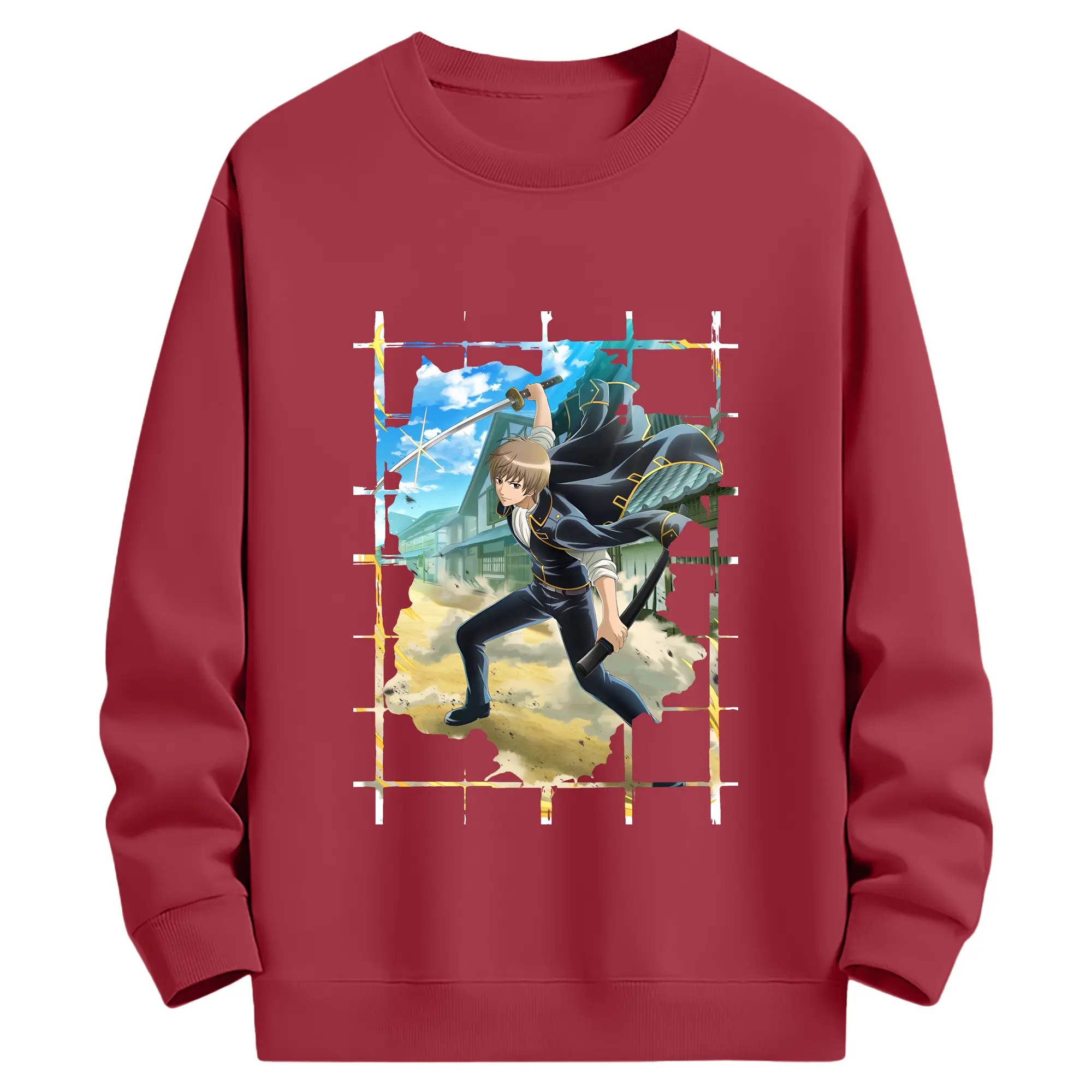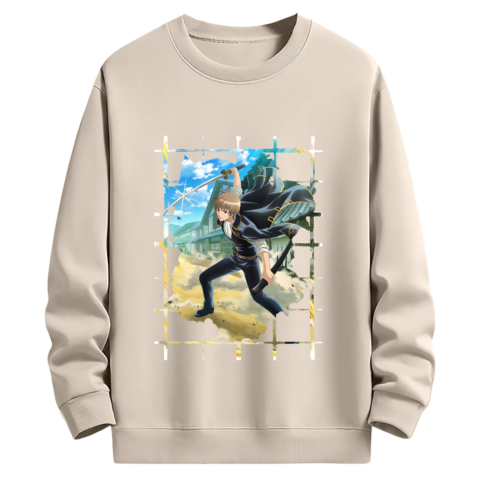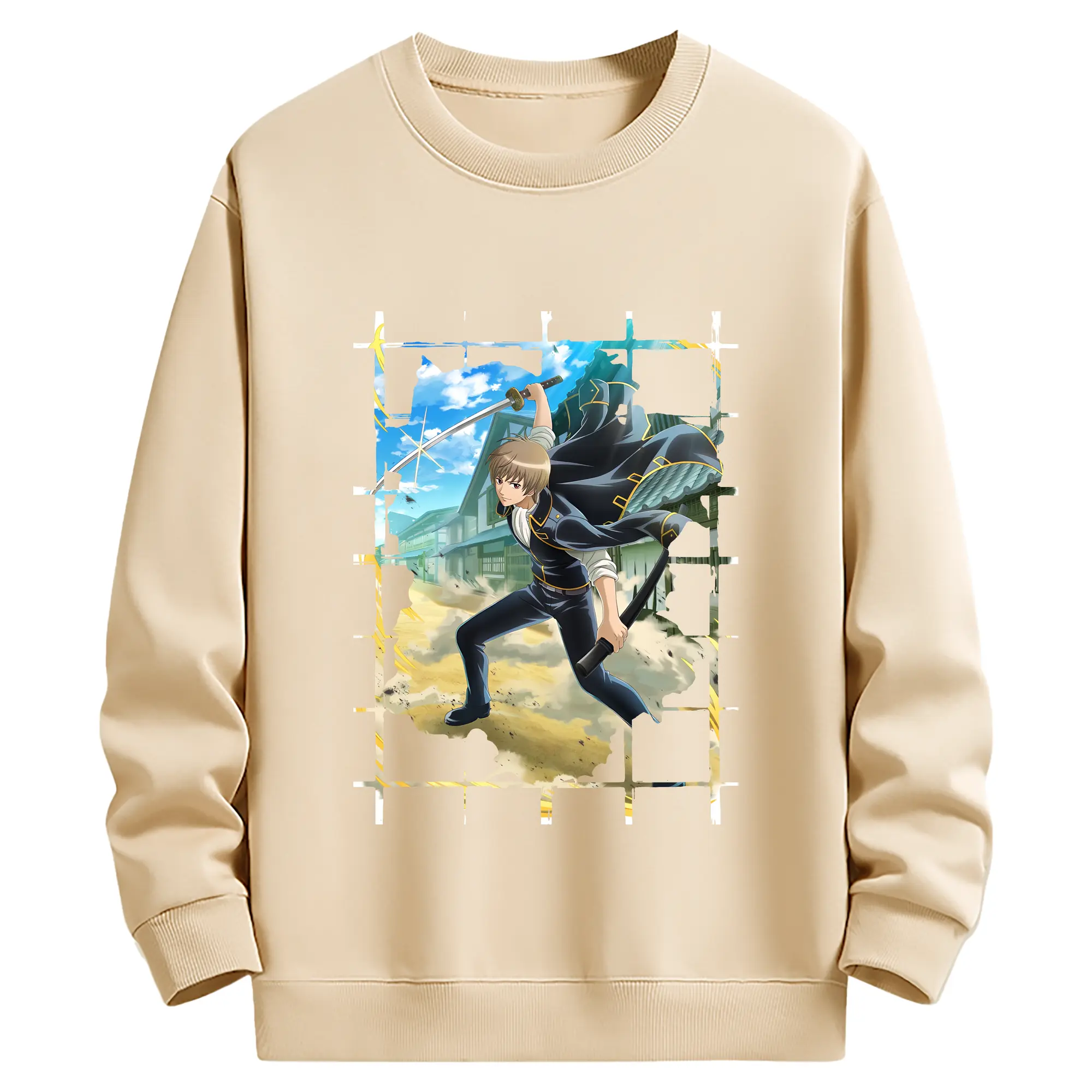 銀魂 グッズ 沖田 総悟 - 薄手 クルーネック スウェット 裏毛260g · ポリエステル 春秋向け カジュアル 男女兼用 · トレーナー デイリー スポーツ 散歩に最適