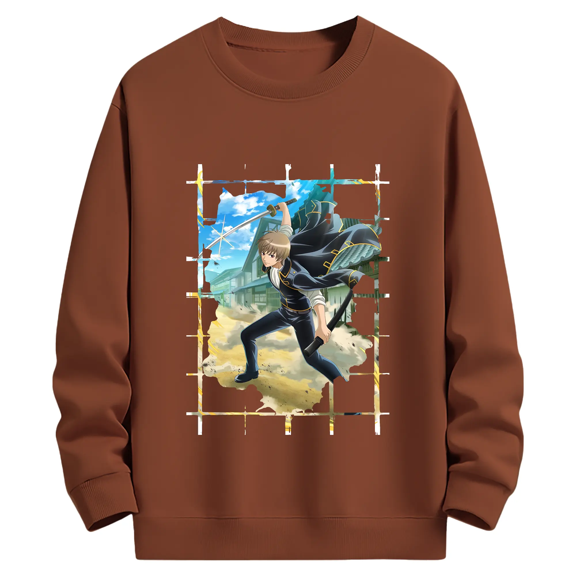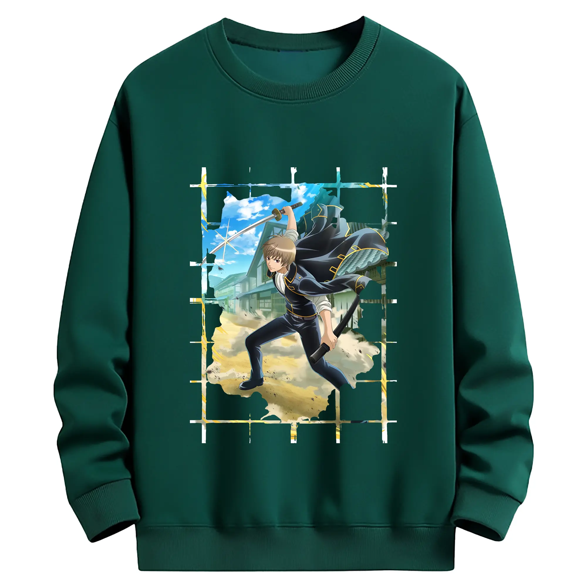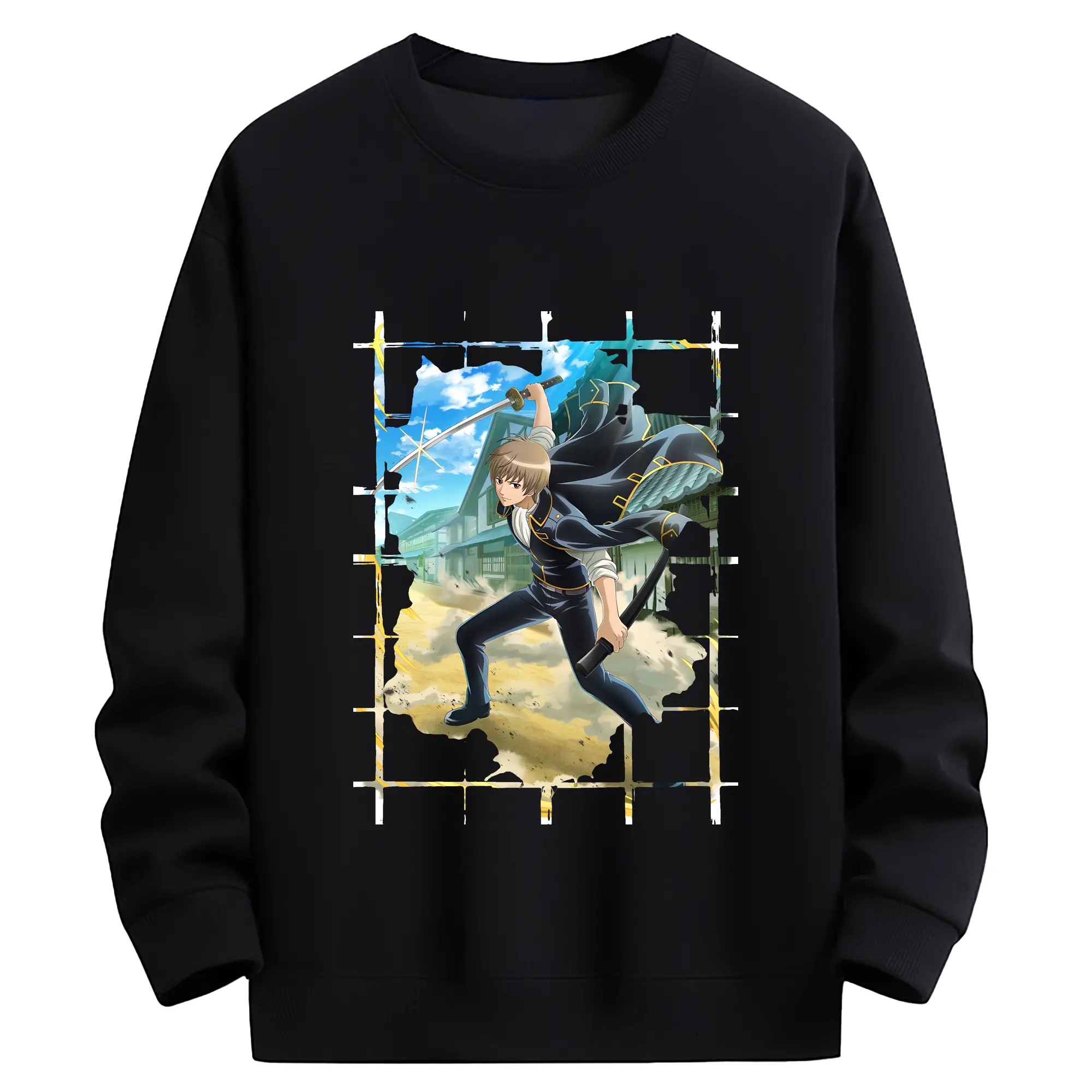 銀魂 グッズ 沖田 総悟 - 薄手 クルーネック スウェット 裏毛260g · ポリエステル 春秋向け カジュアル 男女兼用 · トレーナー デイリー スポーツ 散歩に最適