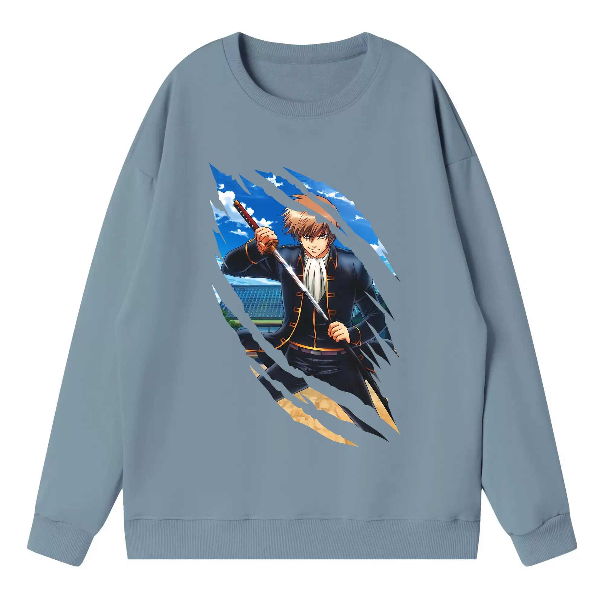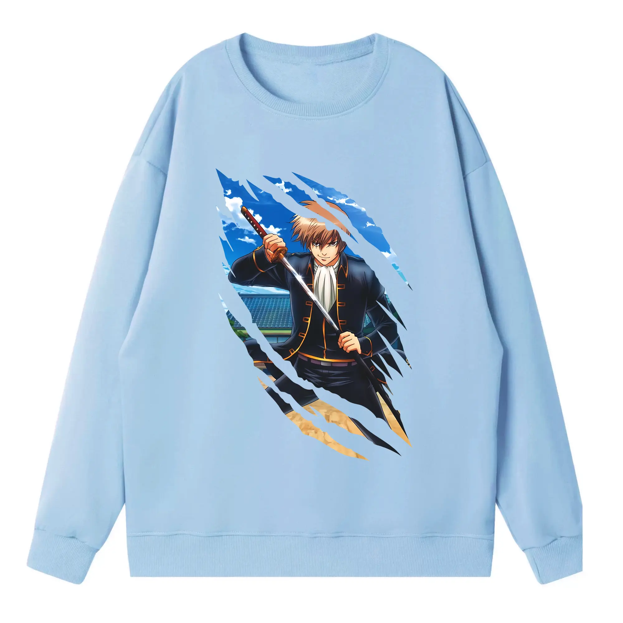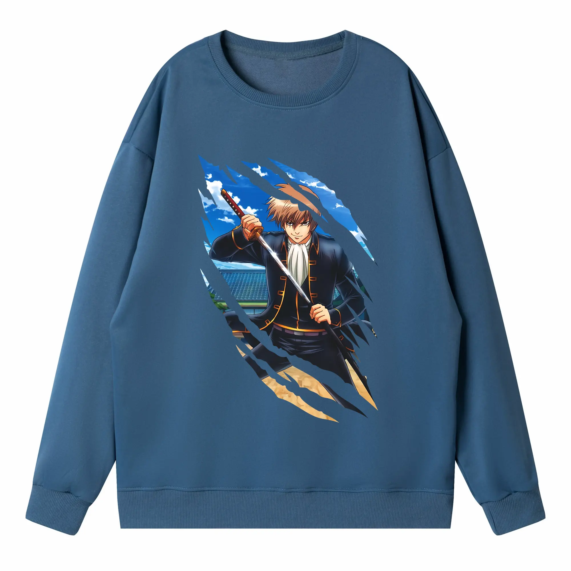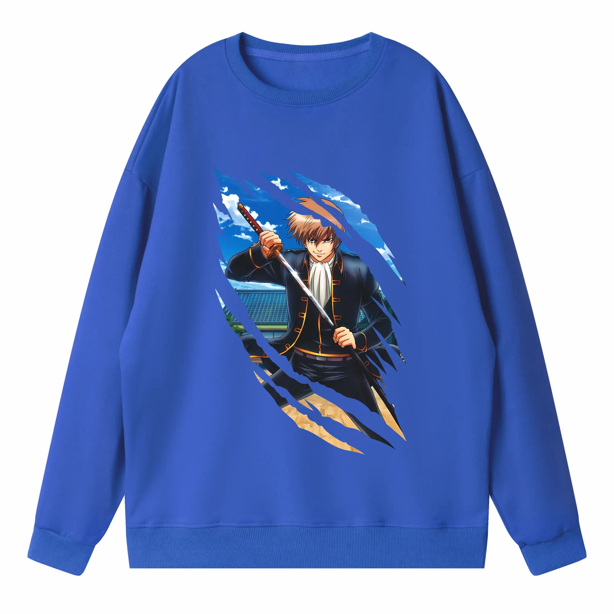 銀魂 グッズ 沖田 総悟 - 高品質 クルーネック スウェット ・ コットン59% ポリエステル41% ・ ユニセックス 長袖 トレーナー ・ カジュアル デイリー スポーツ 散歩用