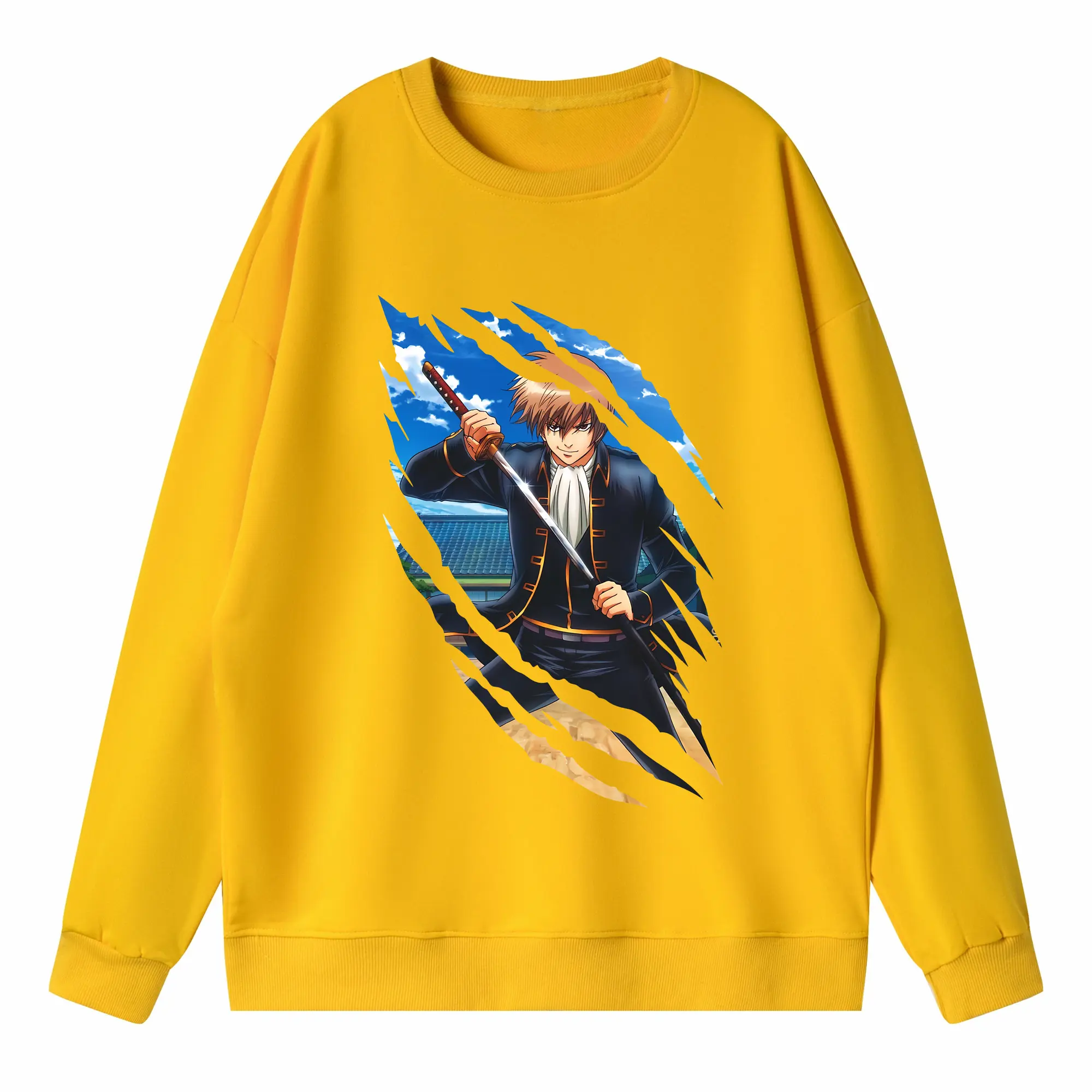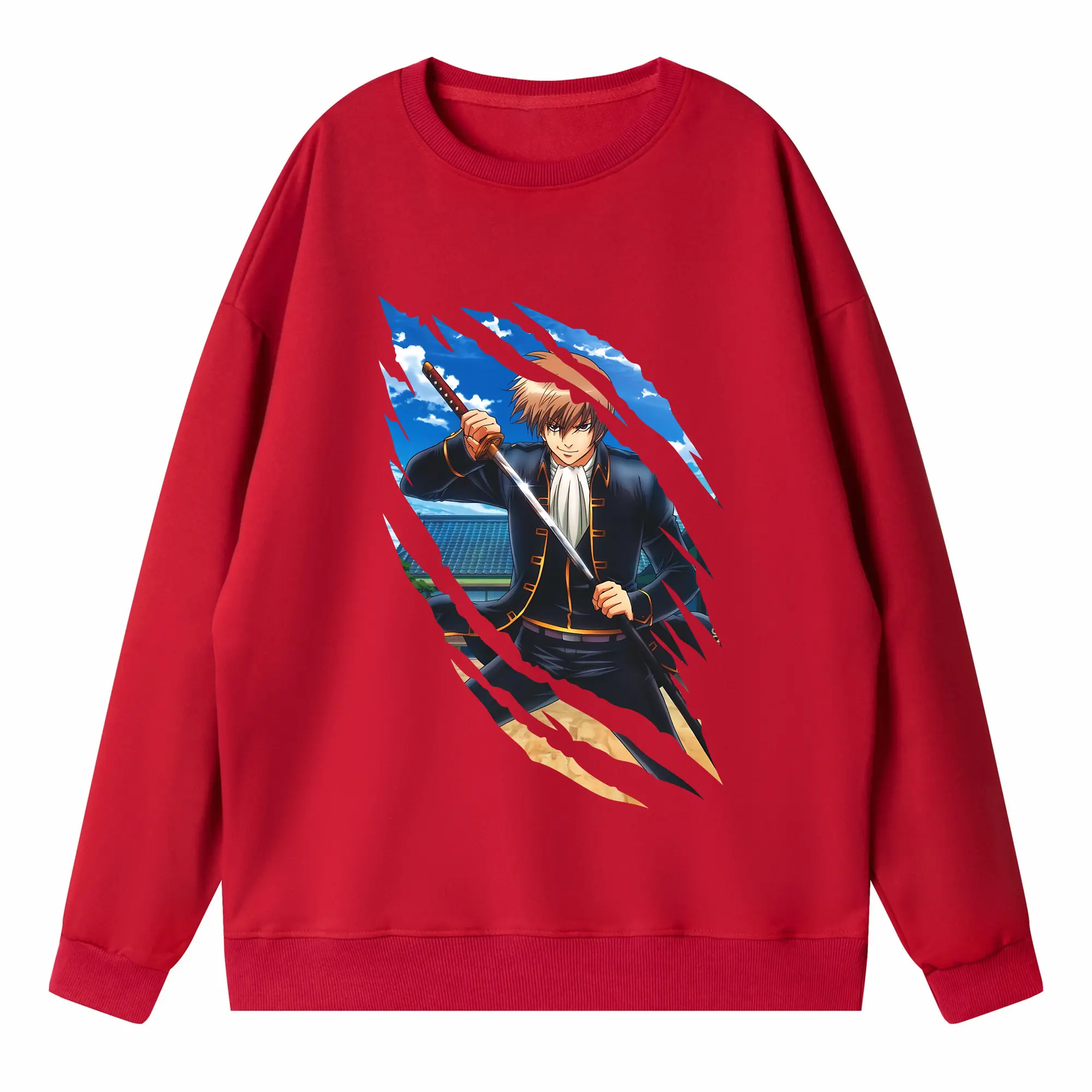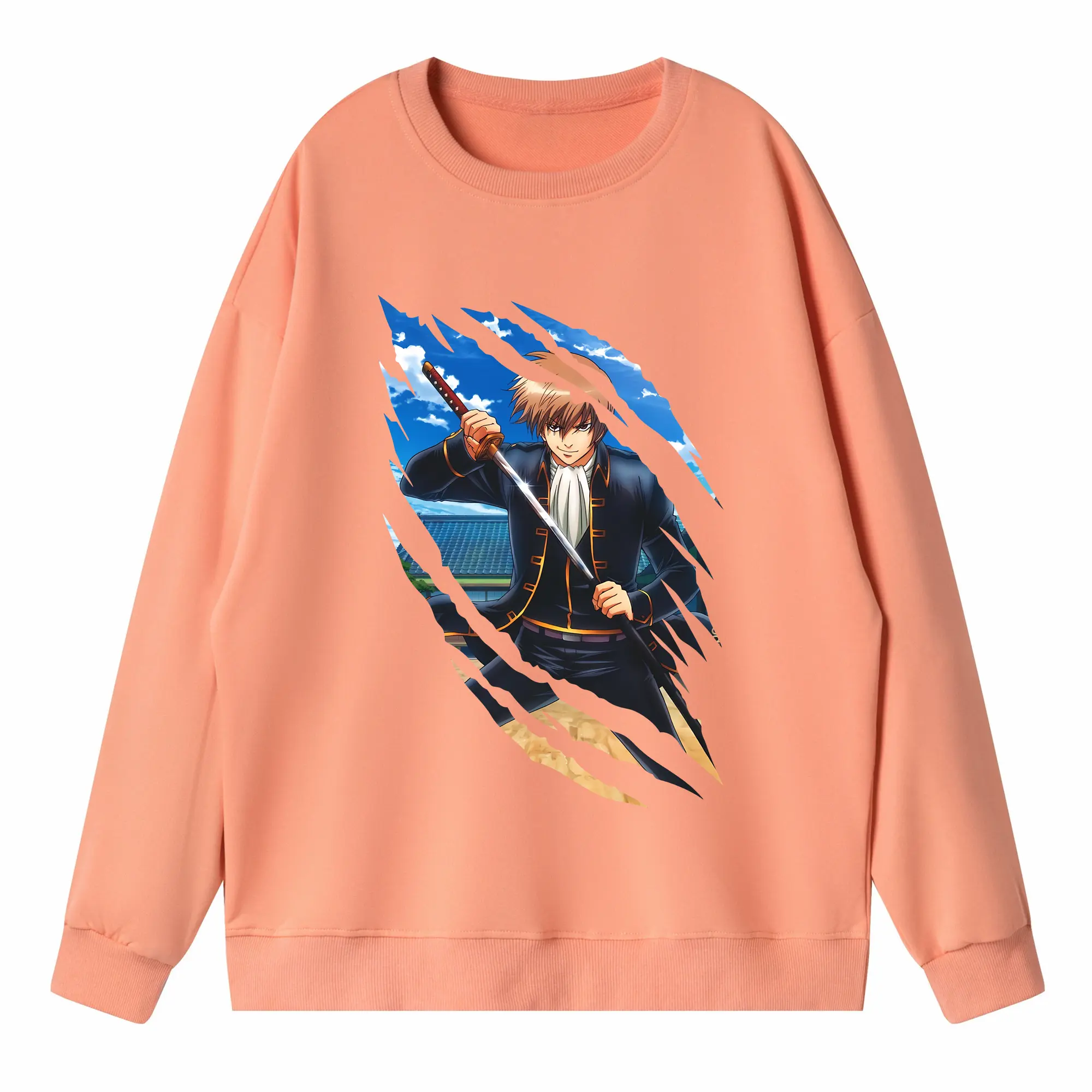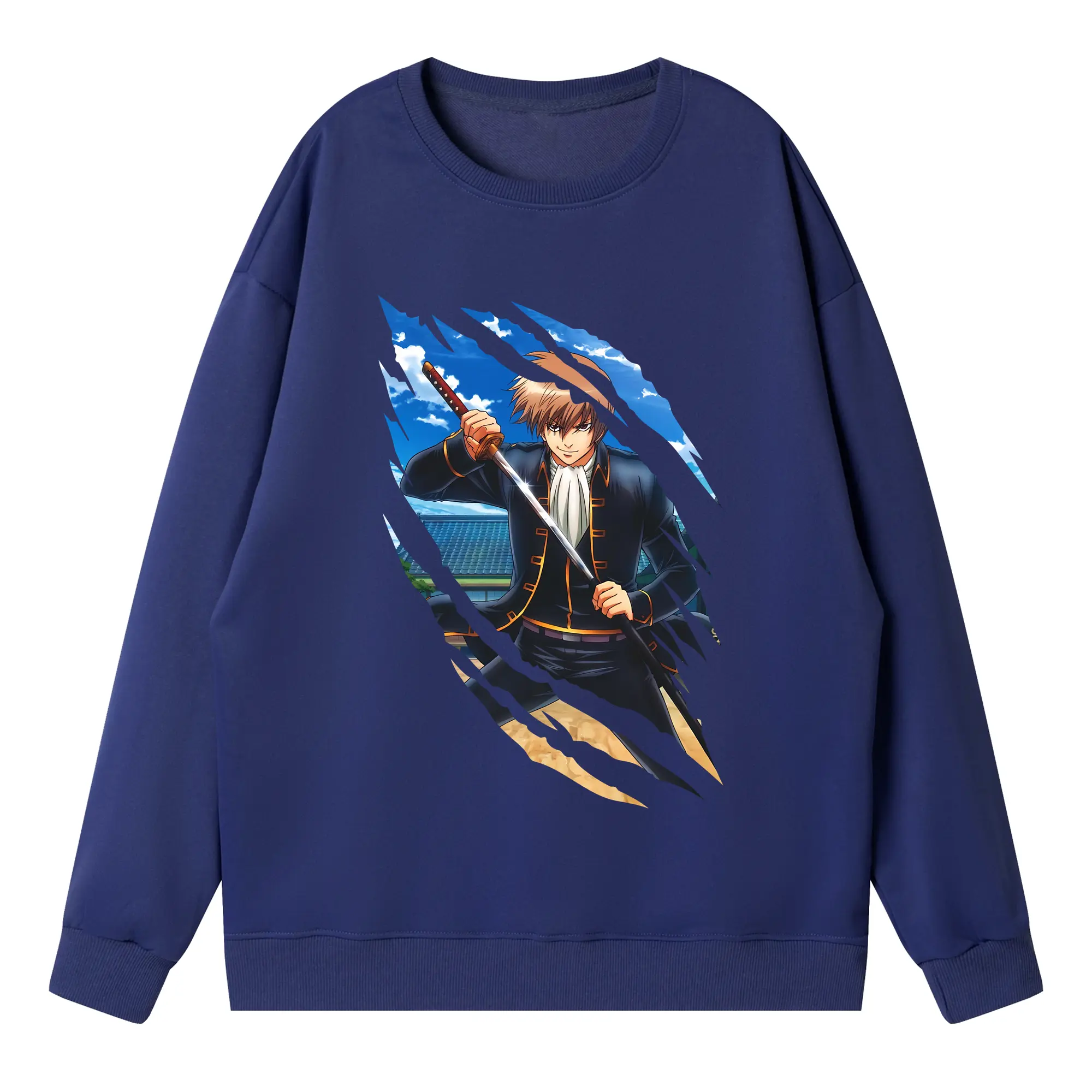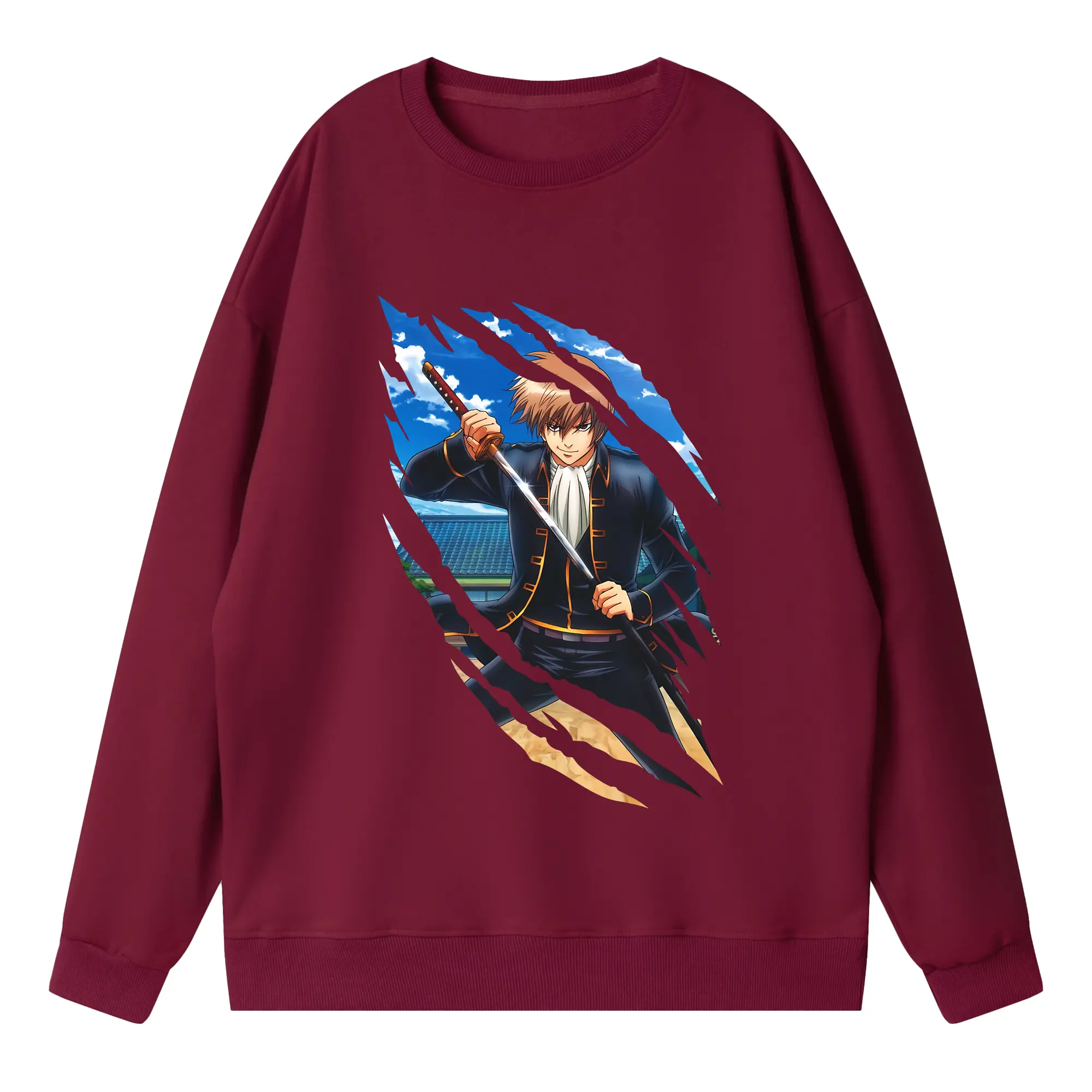 銀魂 グッズ 沖田 総悟 - 高品質 クルーネック スウェット ・ コットン59% ポリエステル41% ・ ユニセックス 長袖 トレーナー ・ カジュアル デイリー スポーツ 散歩用