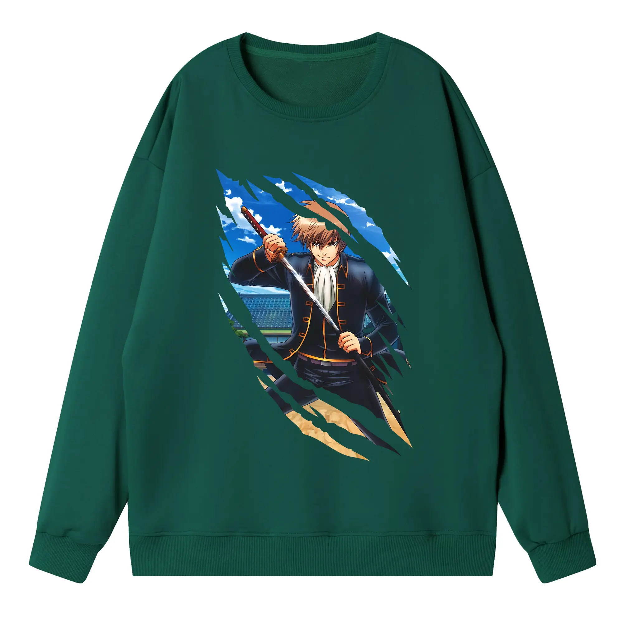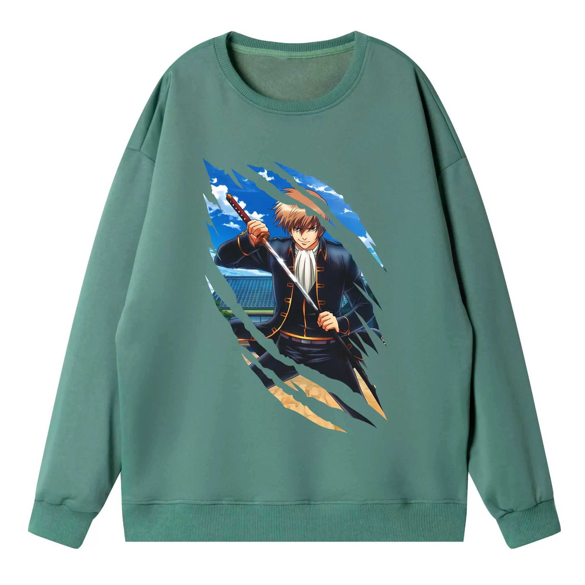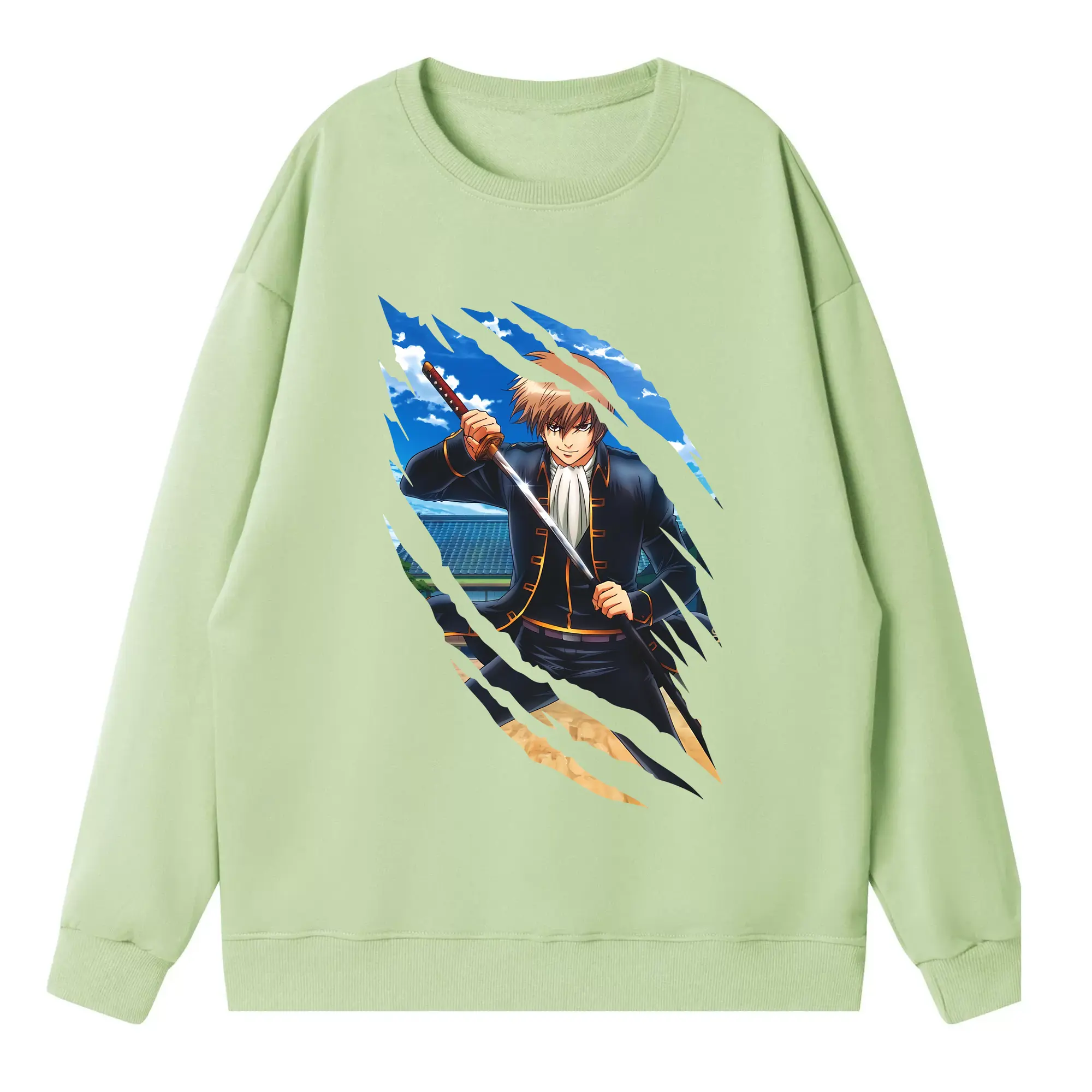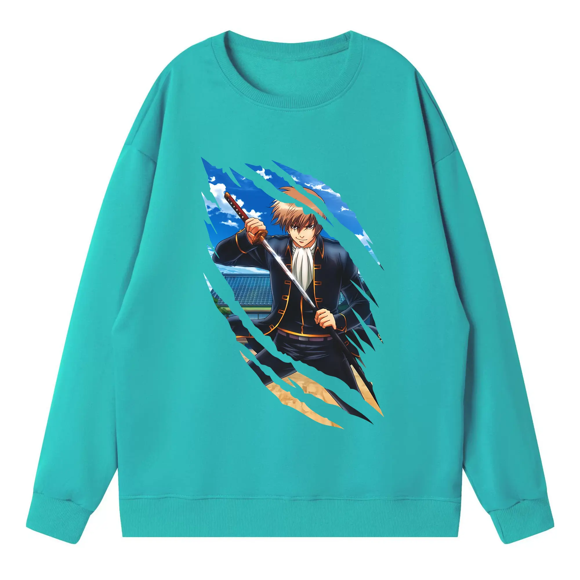 銀魂 グッズ 沖田 総悟 - 高品質 クルーネック スウェット ・ コットン59% ポリエステル41% ・ ユニセックス 長袖 トレーナー ・ カジュアル デイリー スポーツ 散歩用