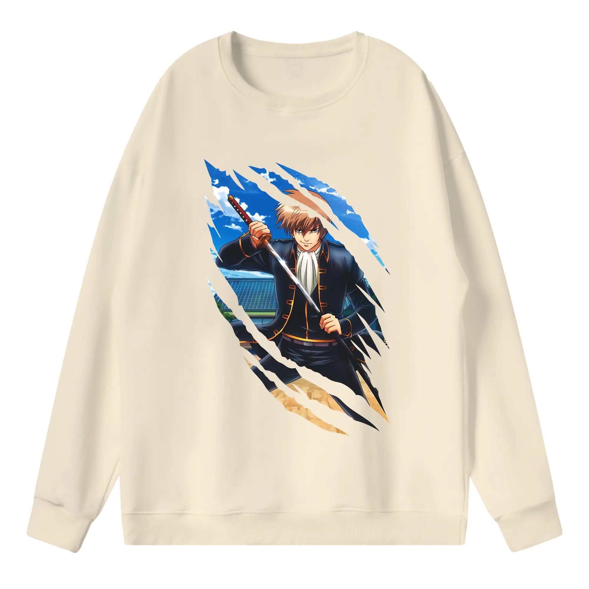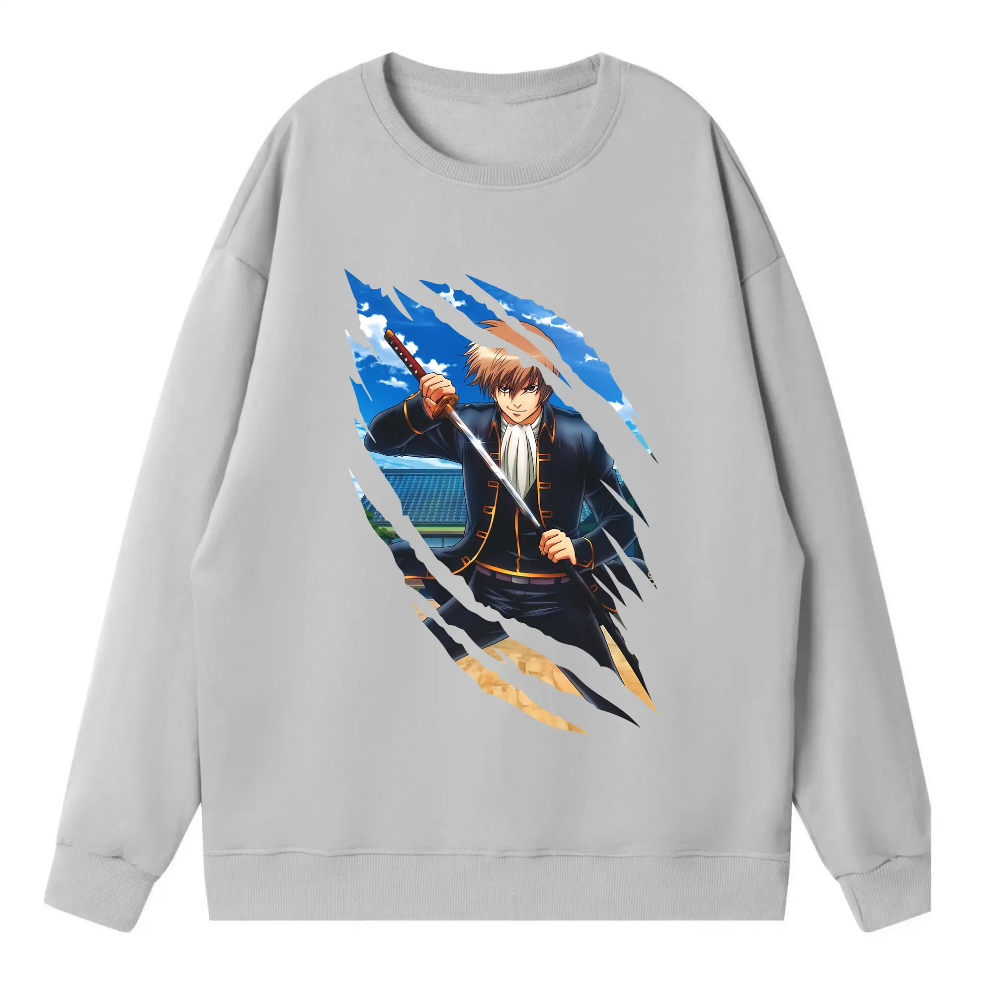 銀魂 グッズ 坂田 銀時 - 薄手 クルーネック スウェット 裏毛260g · ポリエステル 春秋向け カジュアル 男女兼用 · トレーナー デイリー スポーツ 散歩に最適