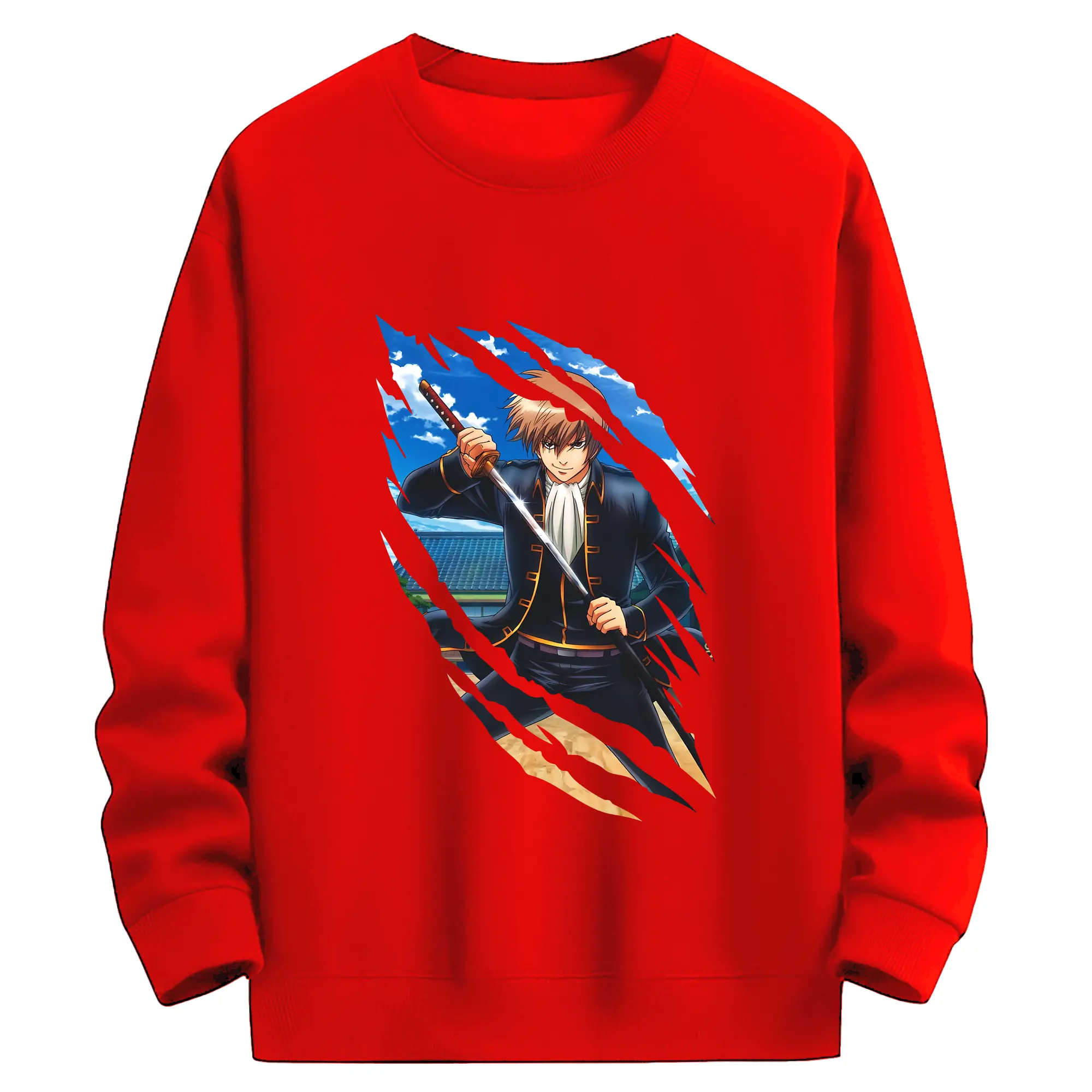銀魂 グッズ 沖田 総悟 - 薄手 クルーネック スウェット 裏毛260g · ポリエステル 春秋向け カジュアル 男女兼用 · トレーナー デイリー スポーツ 散歩に最適