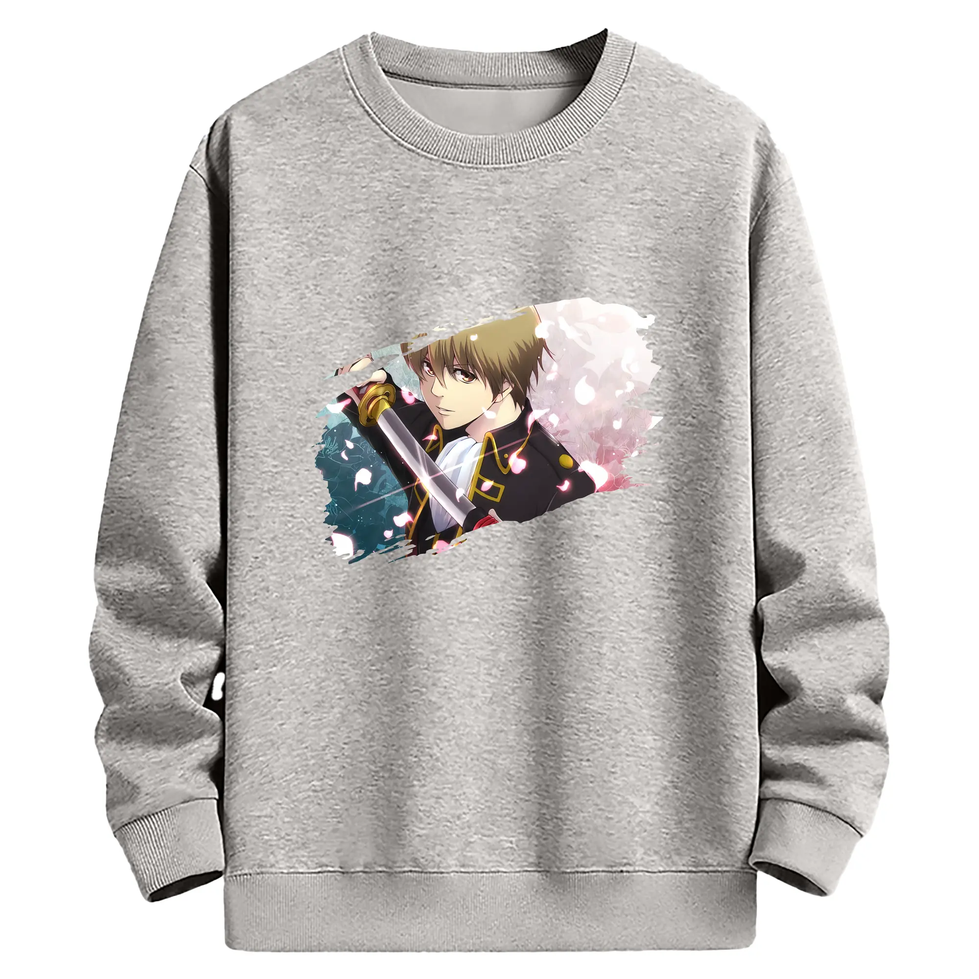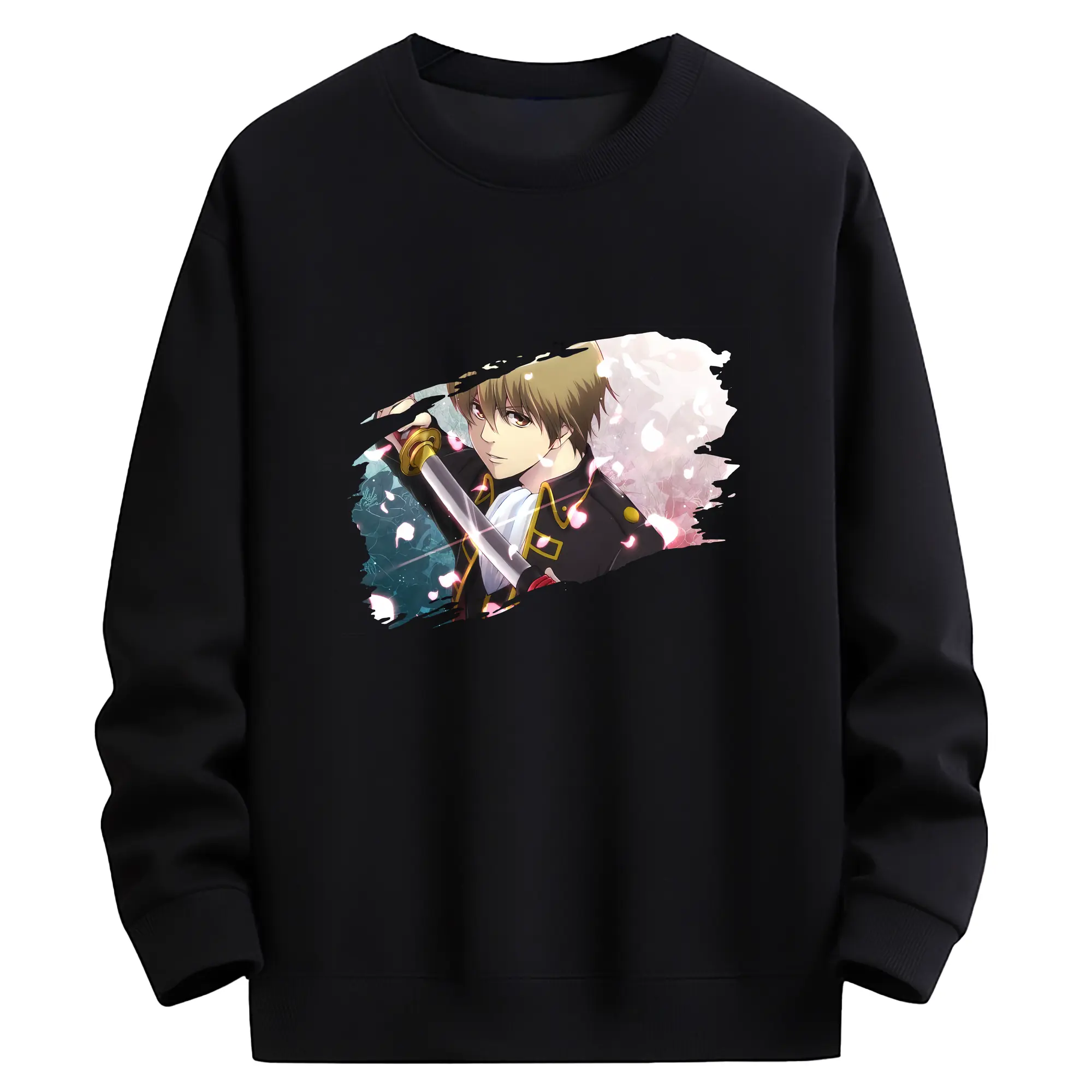 銀魂 グッズ 沖田 総悟 - 薄手 クルーネック スウェット 裏毛260g · ポリエステル 春秋向け カジュアル 男女兼用 · トレーナー デイリー スポーツ 散歩に最適