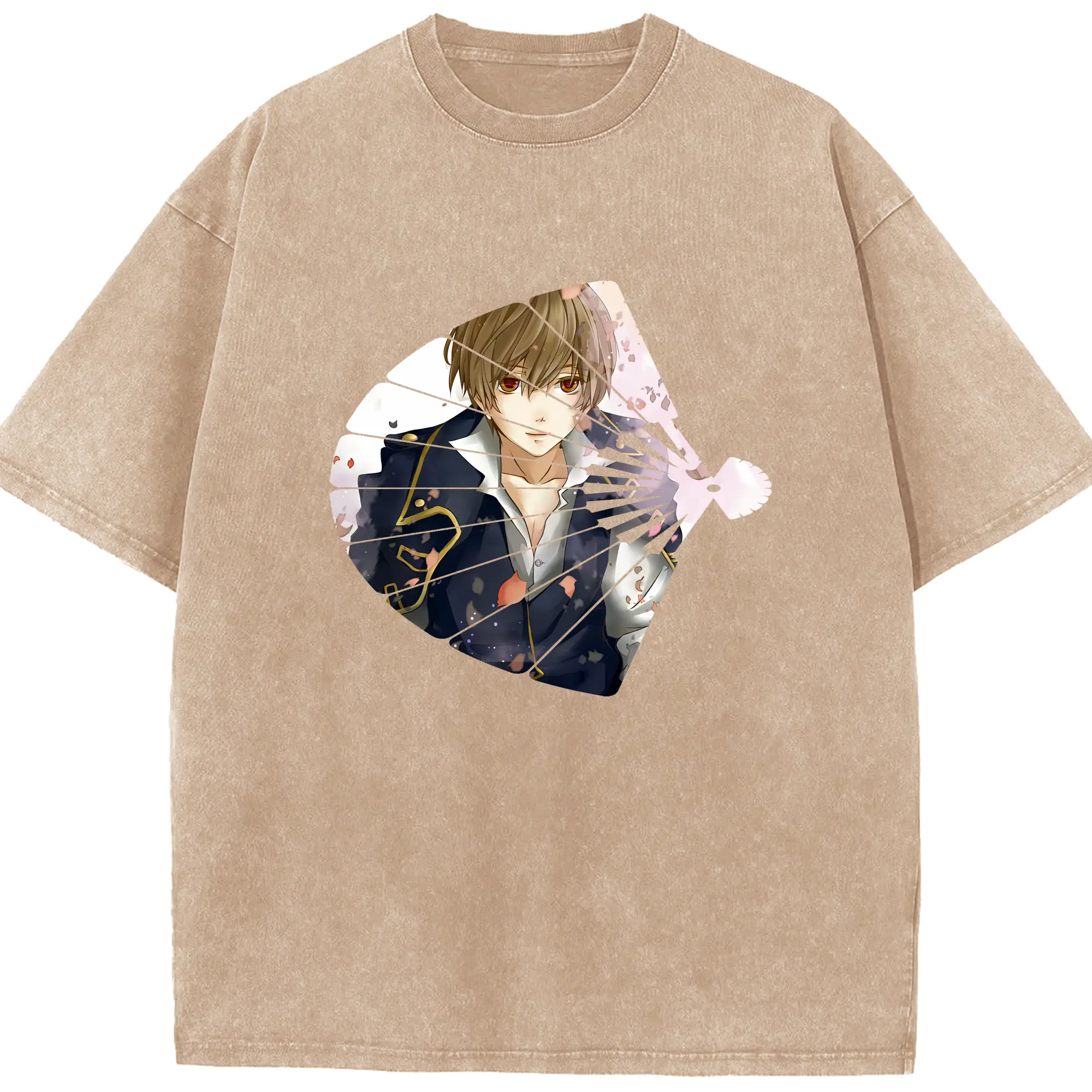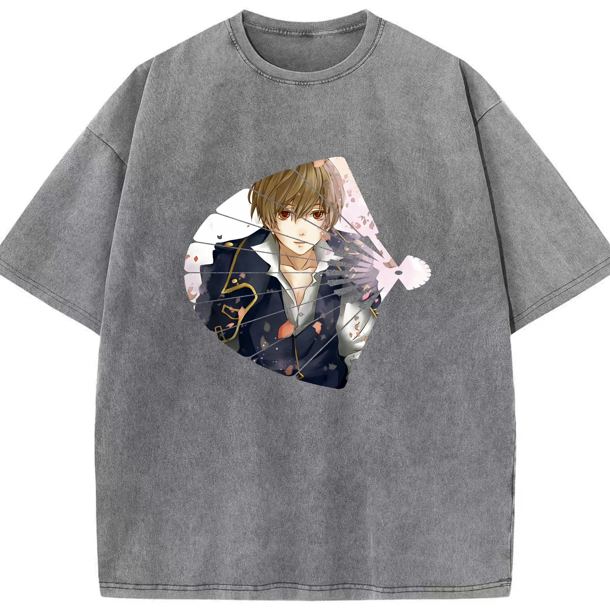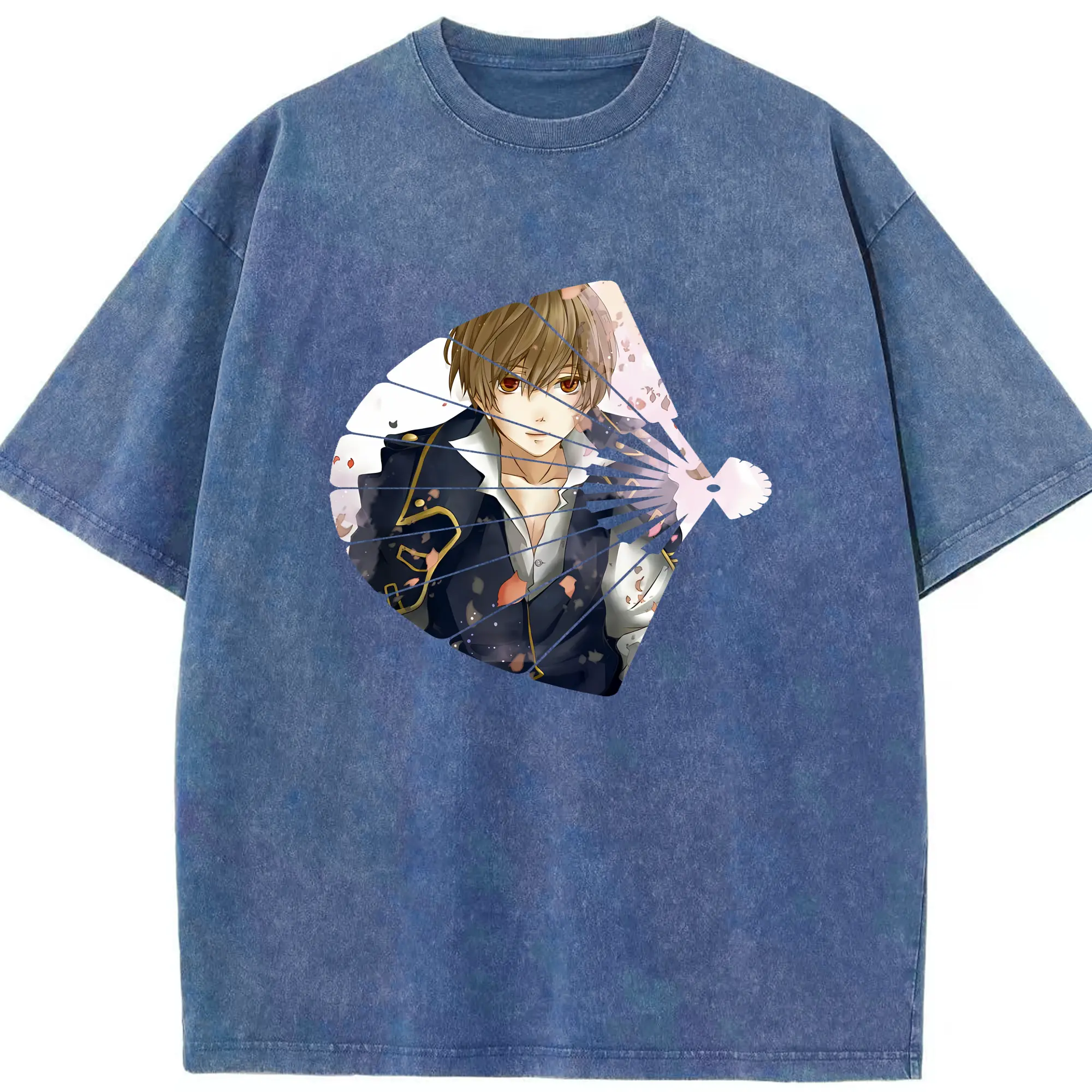 銀魂 グッズ 沖田 総悟 - 綿100% ヴィンテージ風 半袖Tシャツ ・ 背面プリント ・ 柔らか肌触り ・ 通気性 快適 ・ スポーツ カジュアル 外出用