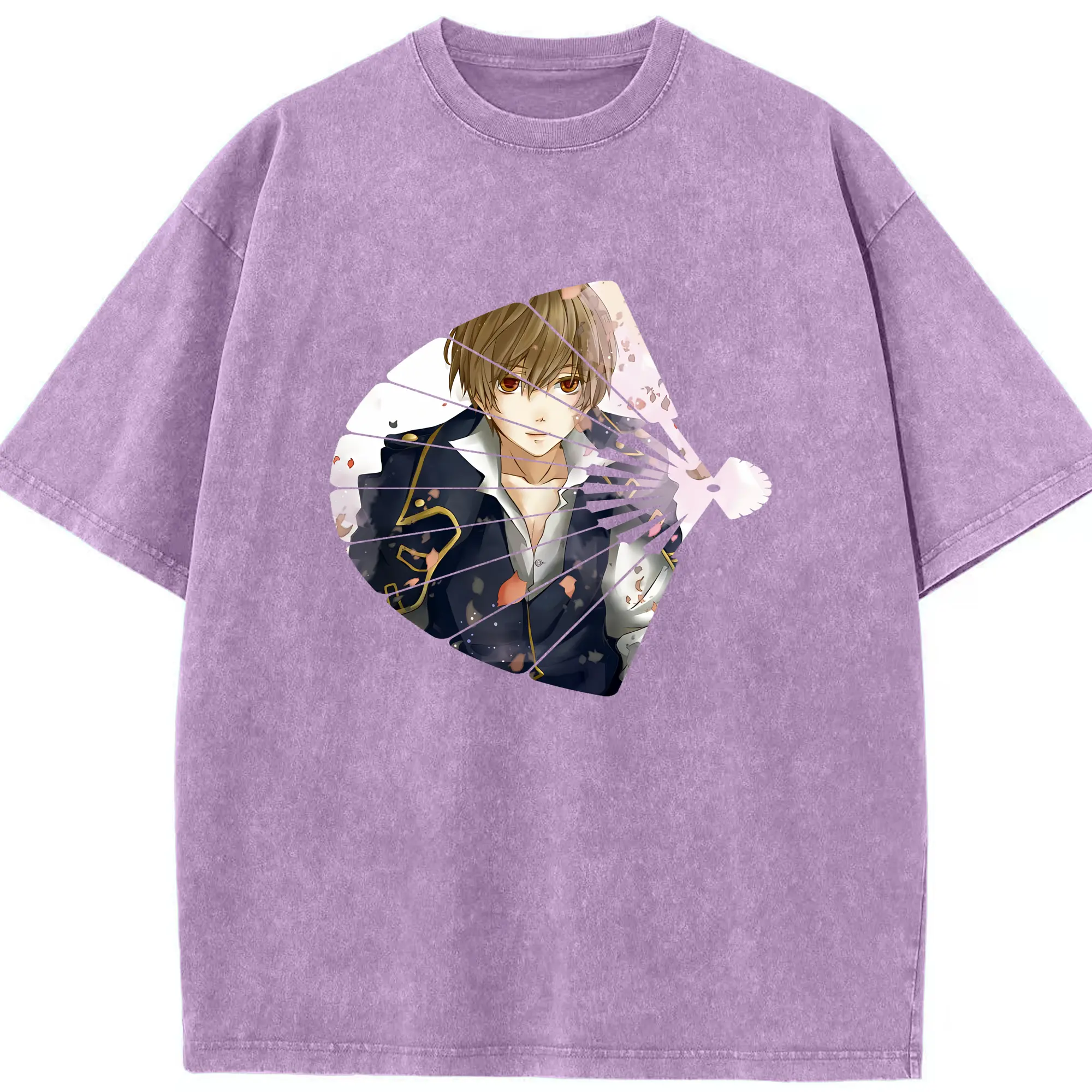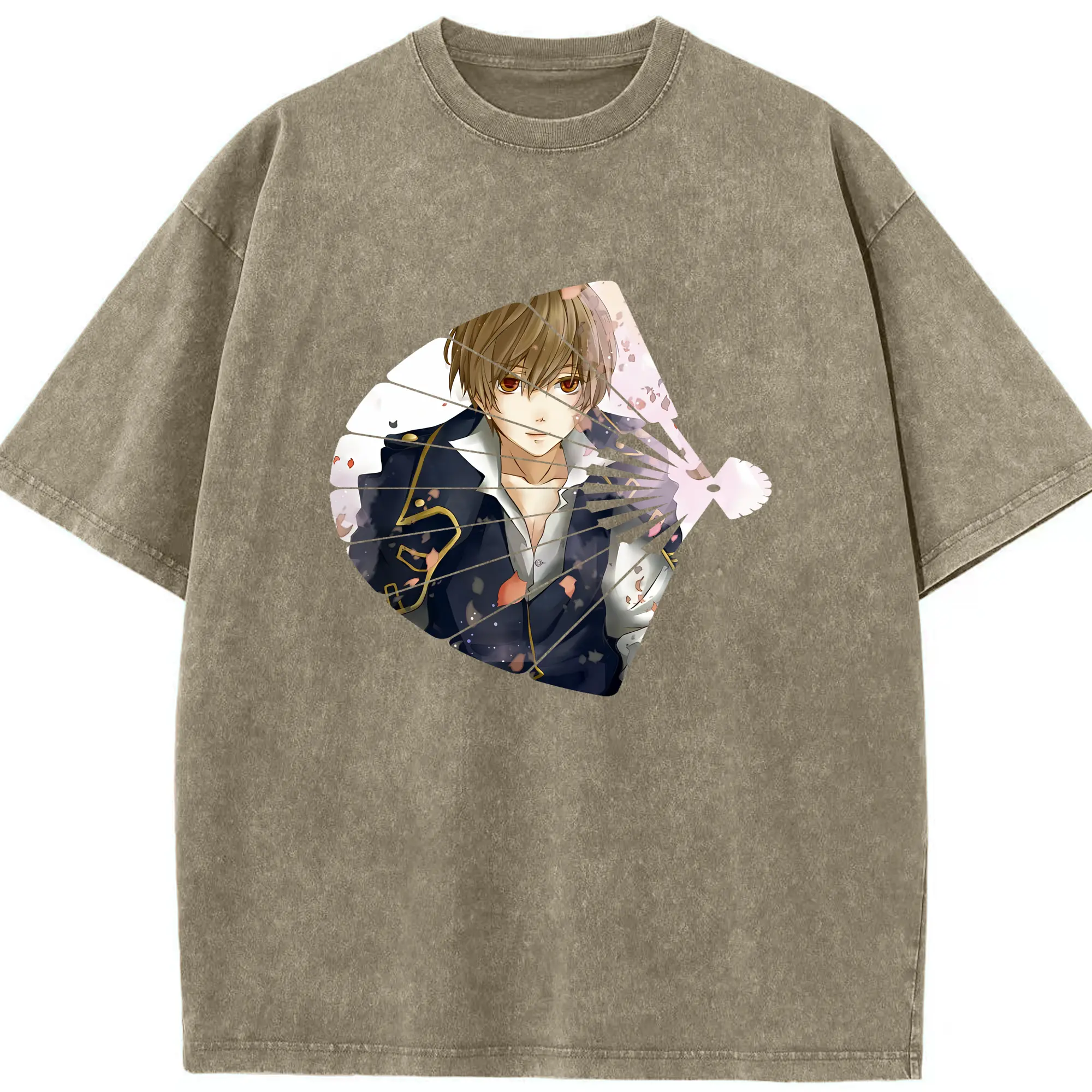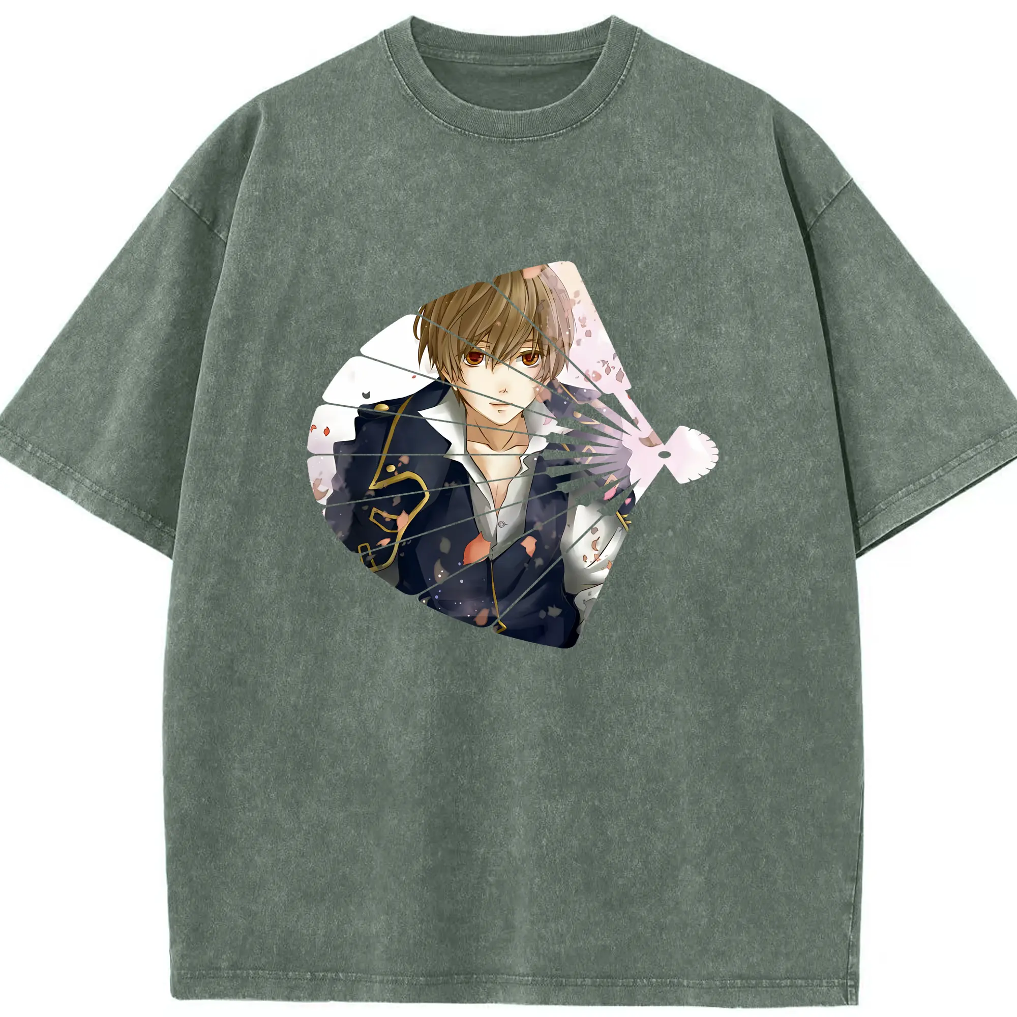 銀魂 グッズ 沖田 総悟 - 綿100% ヴィンテージ風 半袖Tシャツ ・ 背面プリント ・ 柔らか肌触り ・ 通気性 快適 ・ スポーツ カジュアル 外出用