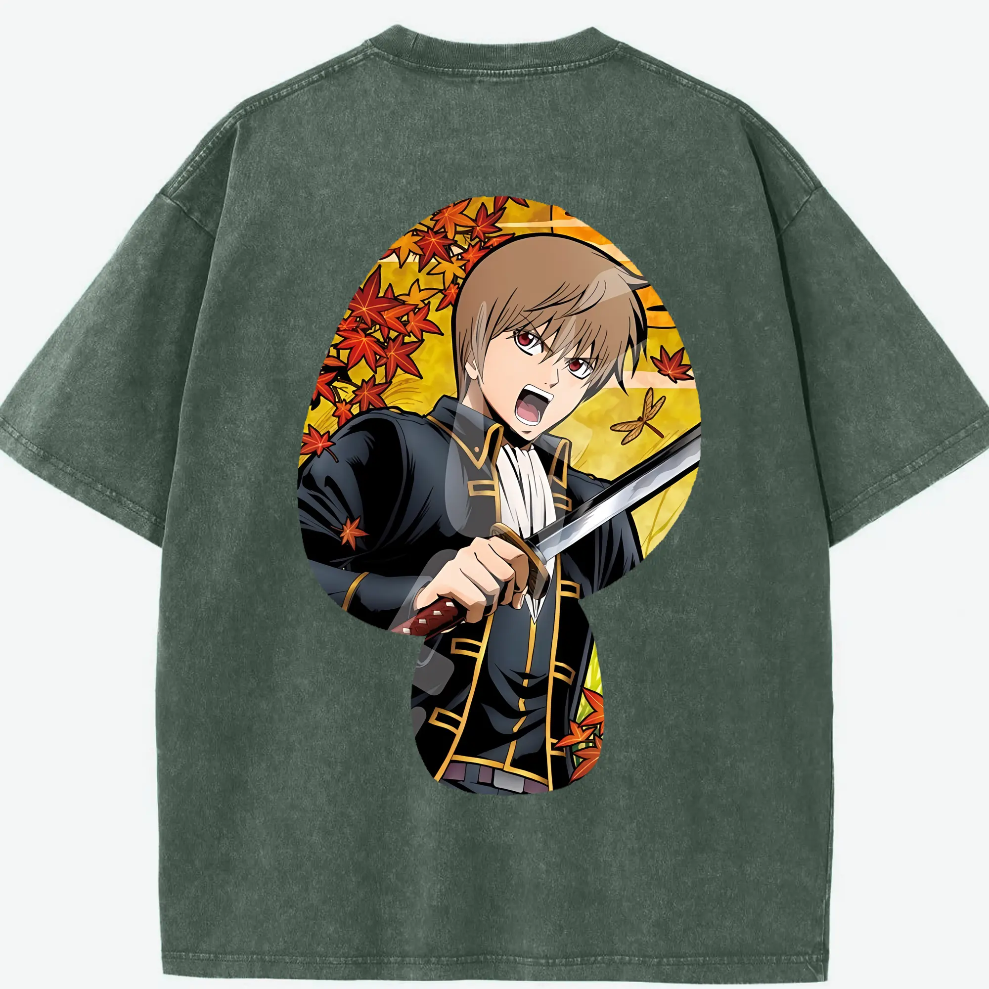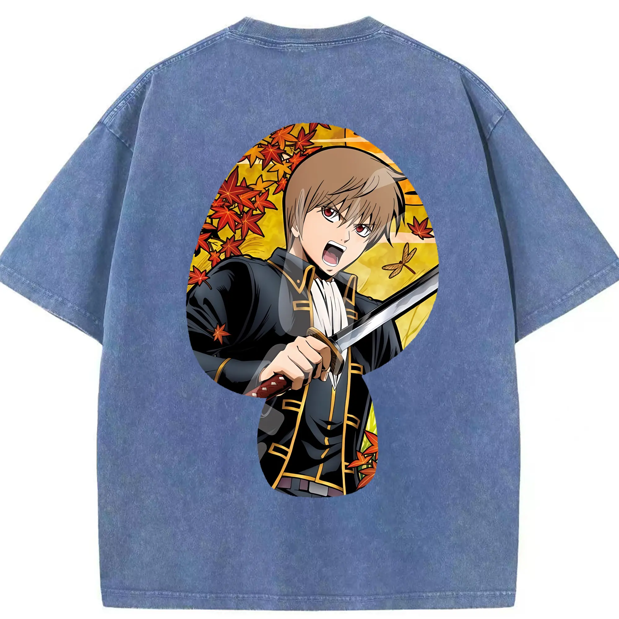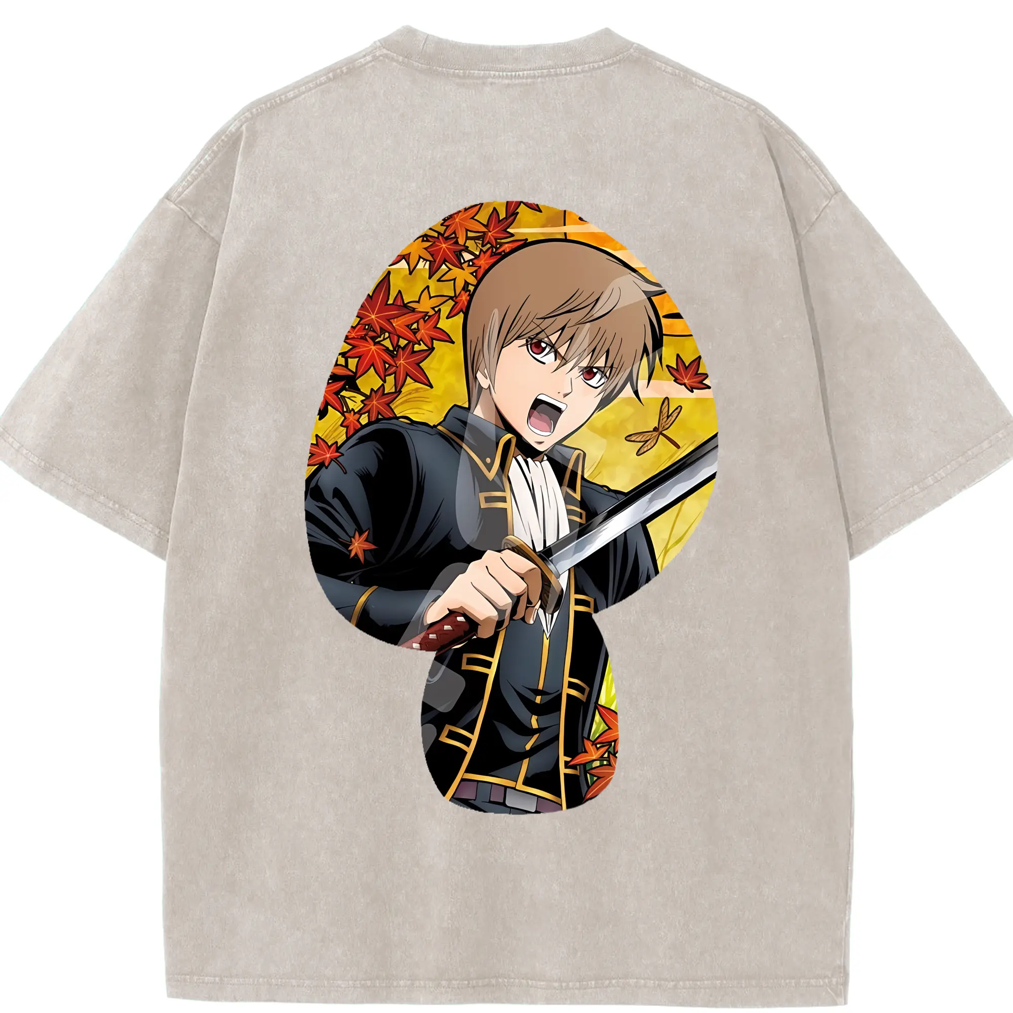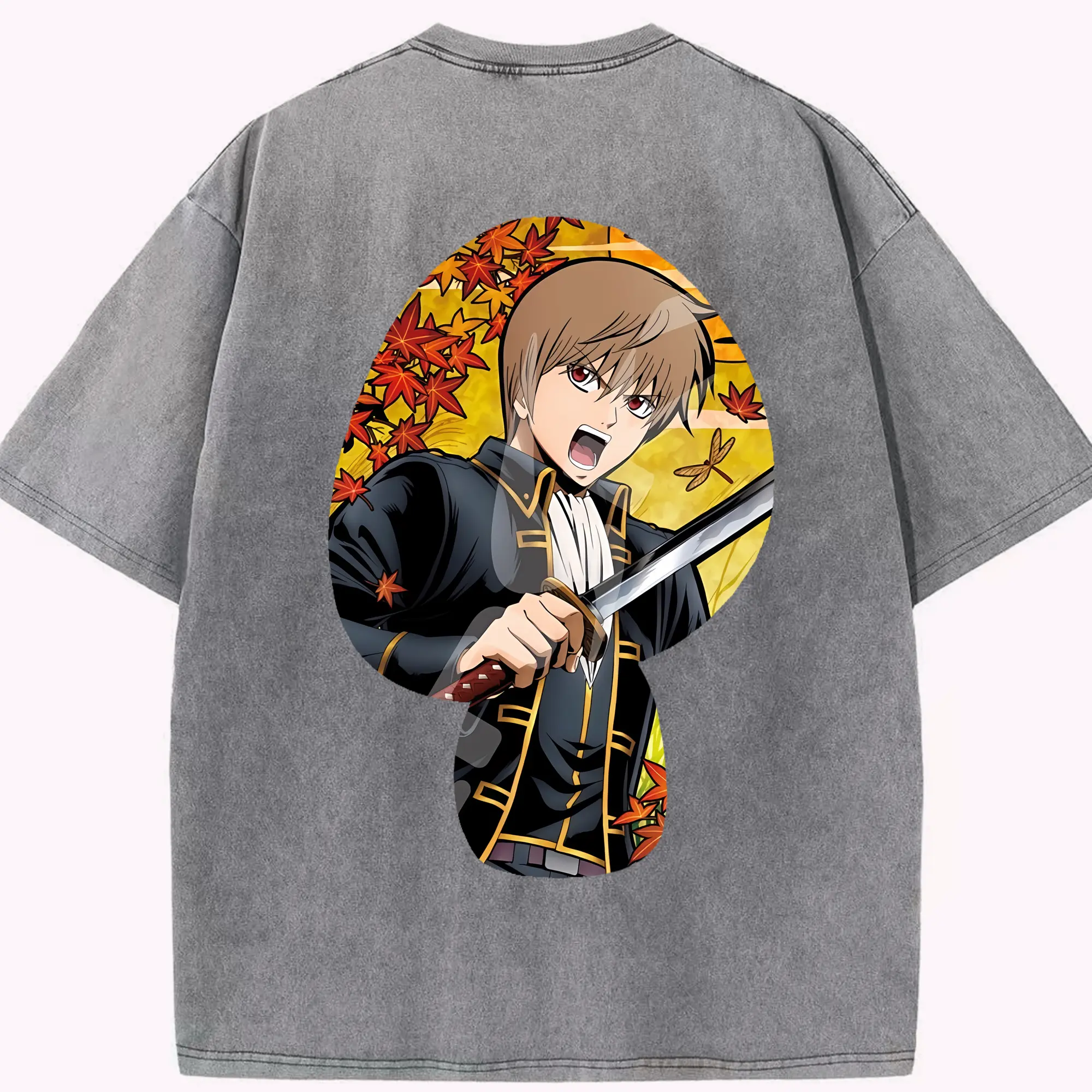 銀魂 グッズ 沖田 総悟 - 綿100% ヴィンテージ風 半袖Tシャツ ・ フロントプリント ・ 柔らか肌触り ・ 通気性 快適 ・ スポーツ カジュアル 外出用
