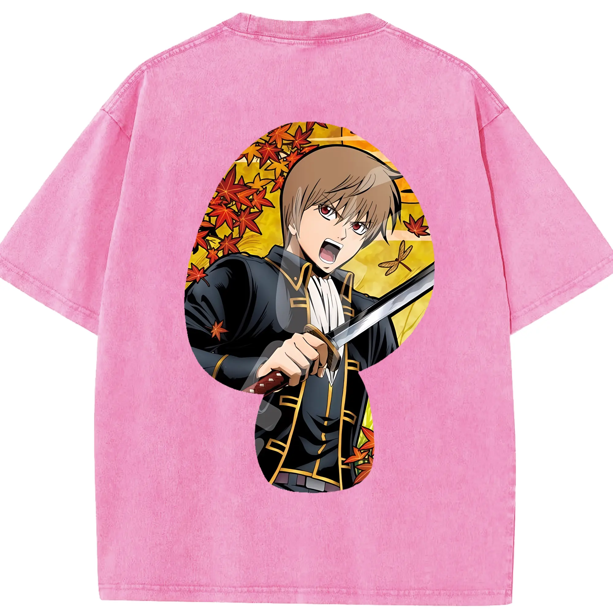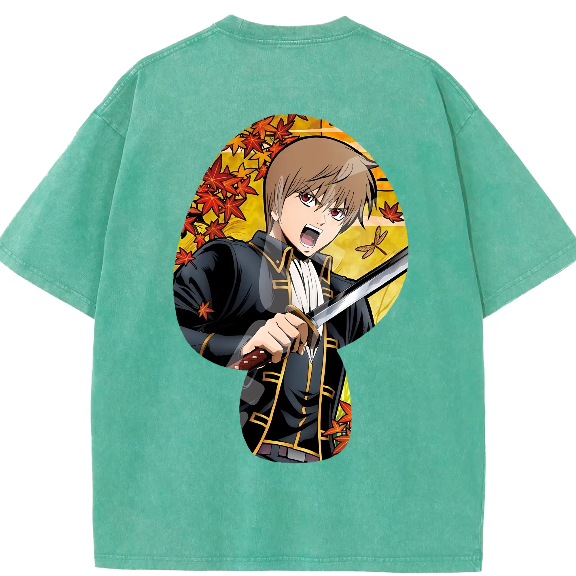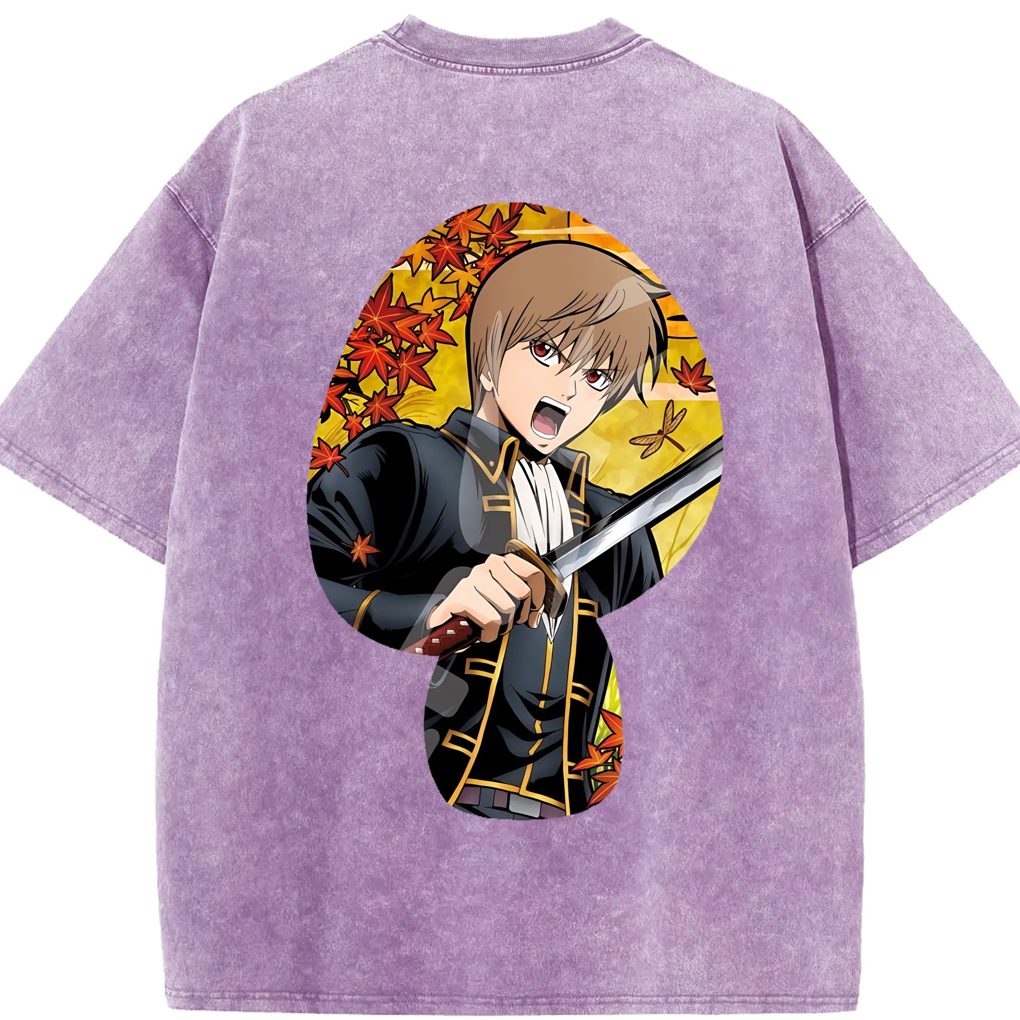 銀魂 グッズ 沖田 総悟 - 綿100% 半袖Tシャツ ・ バックプリント ・ 快適 通気性 ・ 日常使い 散歩 スポーツ用