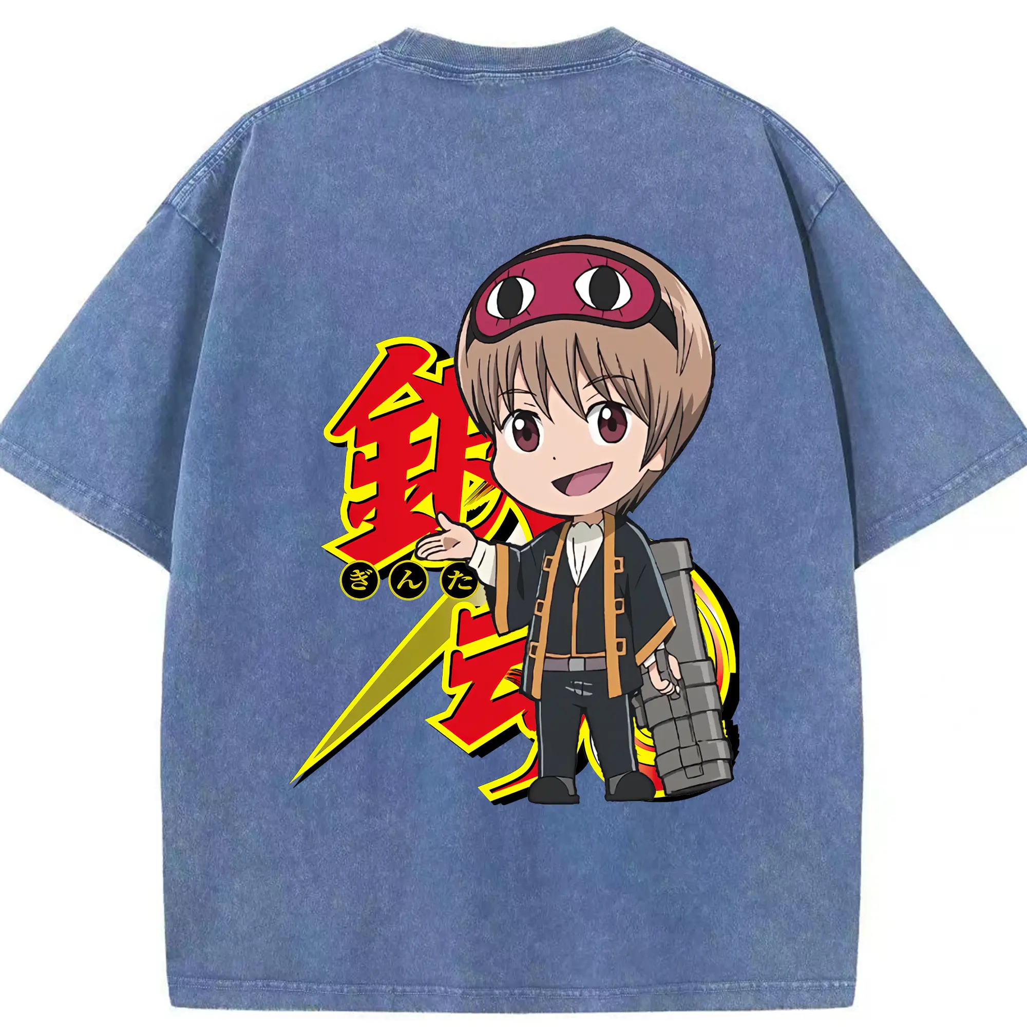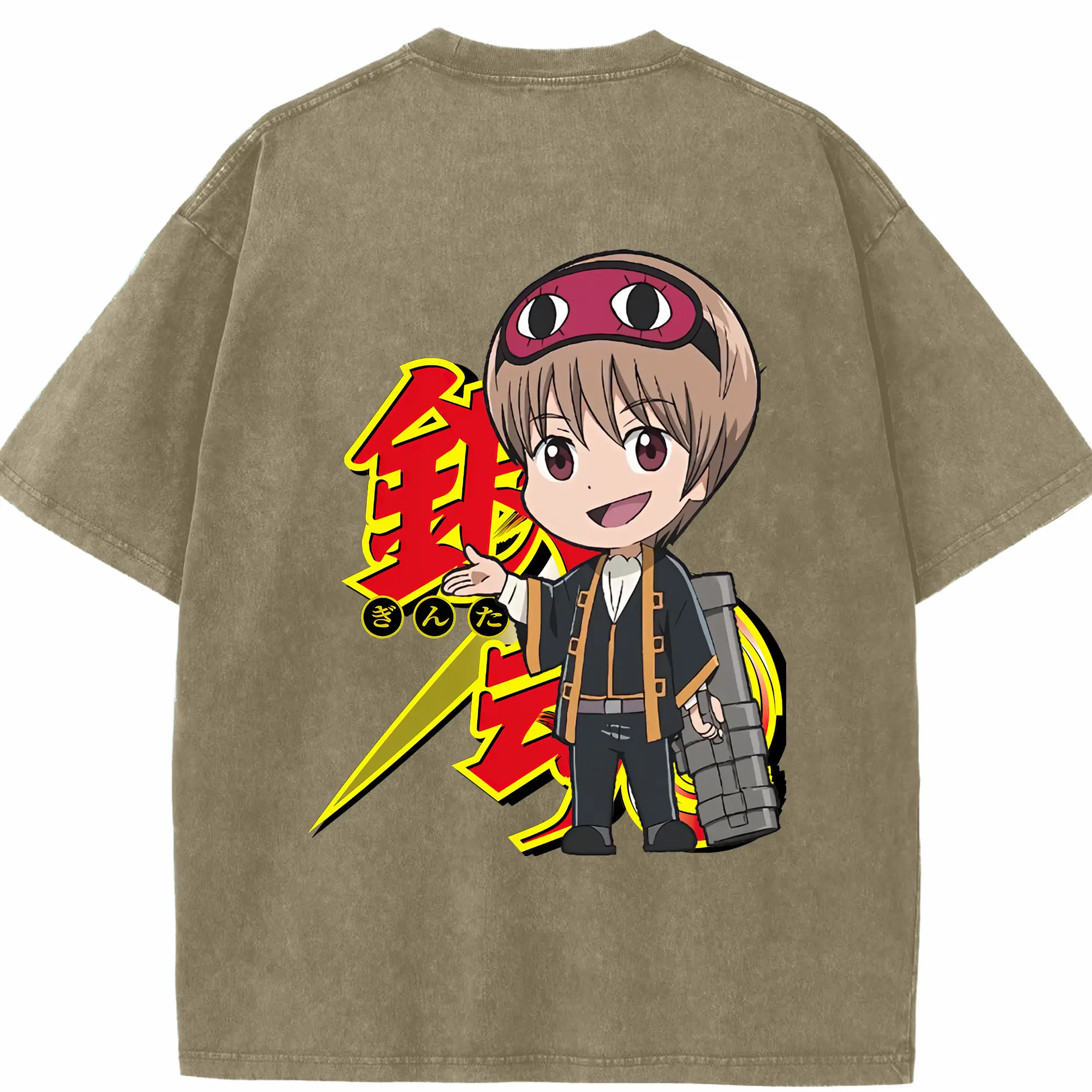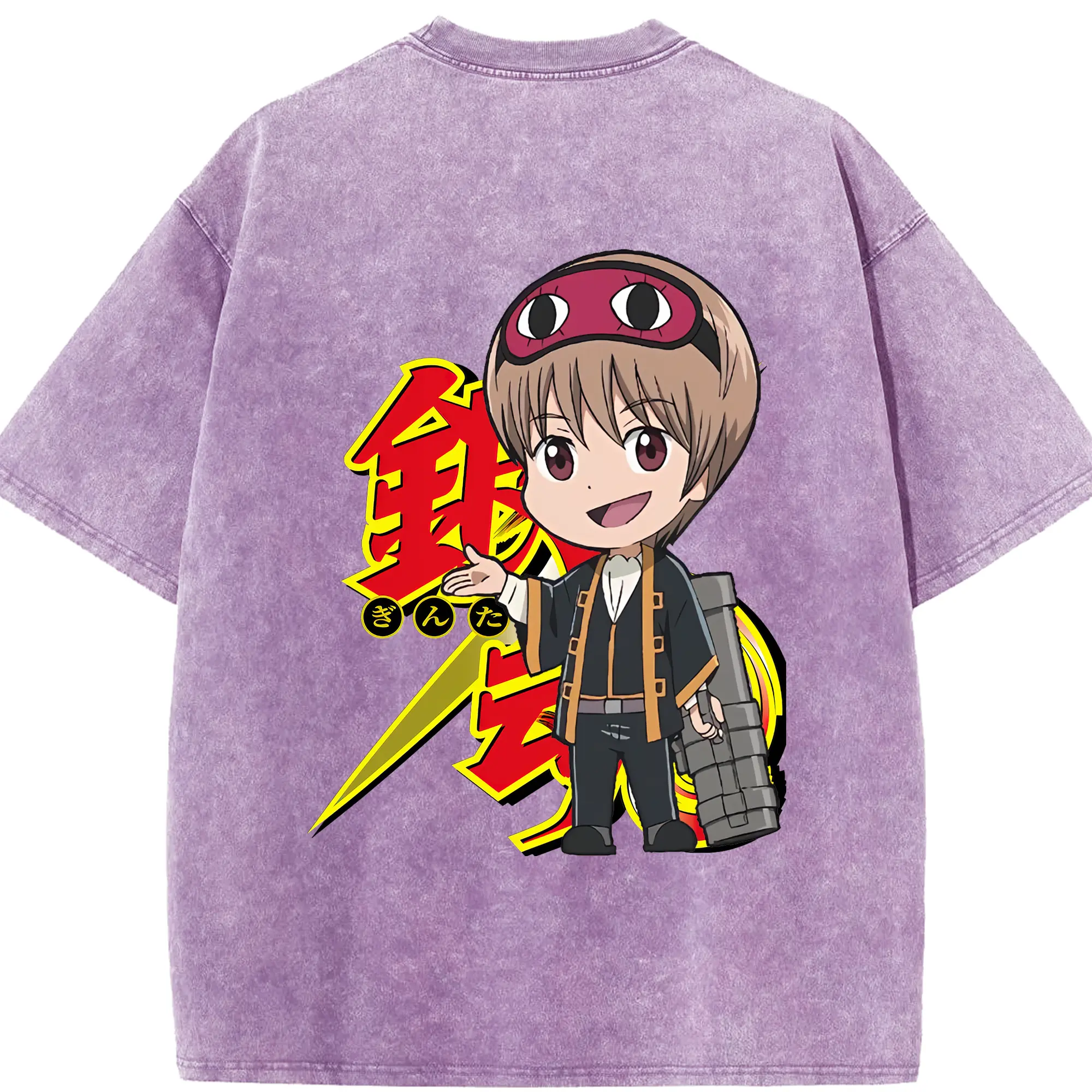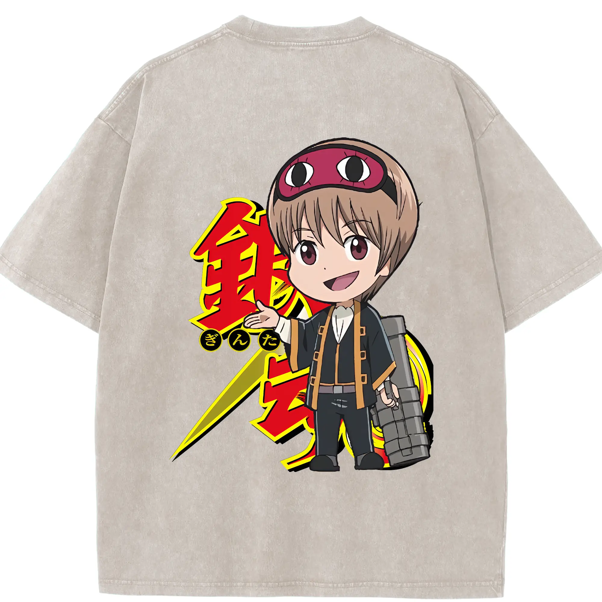 銀魂 グッズ 沖田 総悟 - 綿100% ヴィンテージ風 半袖Tシャツ ・ フロントプリント ・ 柔らか肌触り ・ 通気性 快適 ・ スポーツ カジュアル 外出用