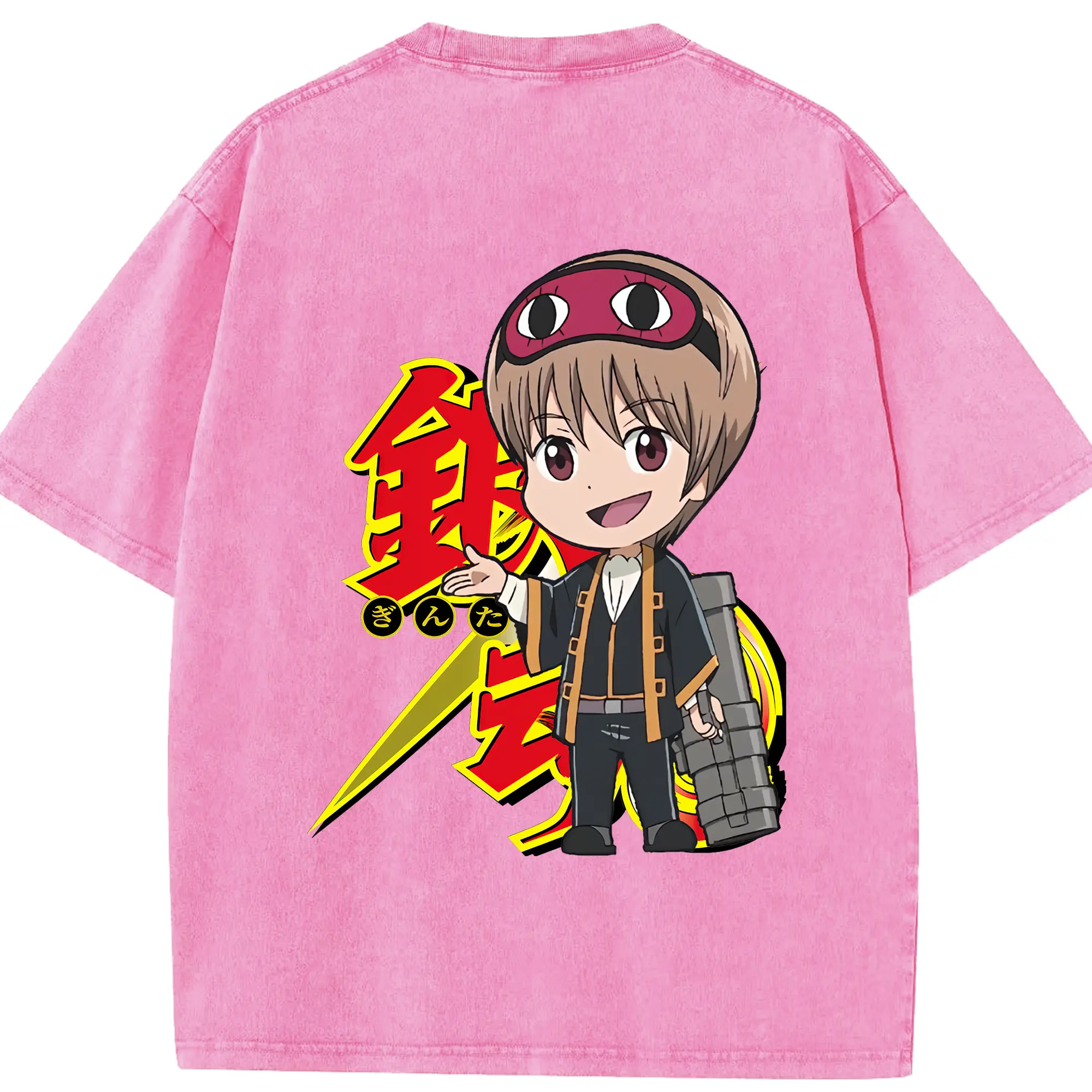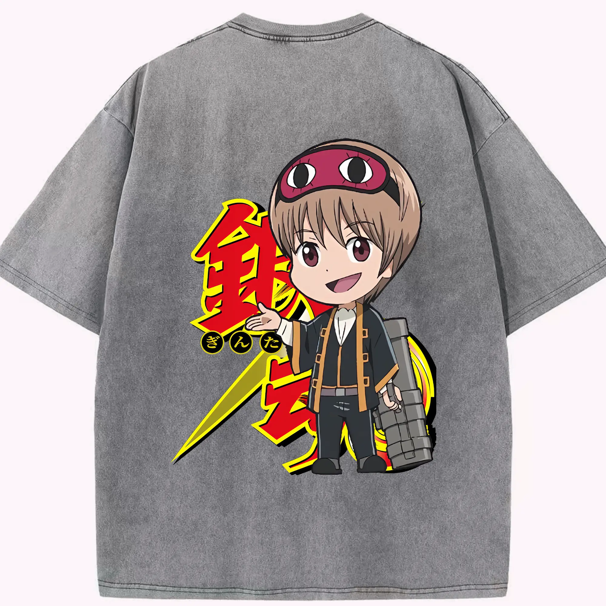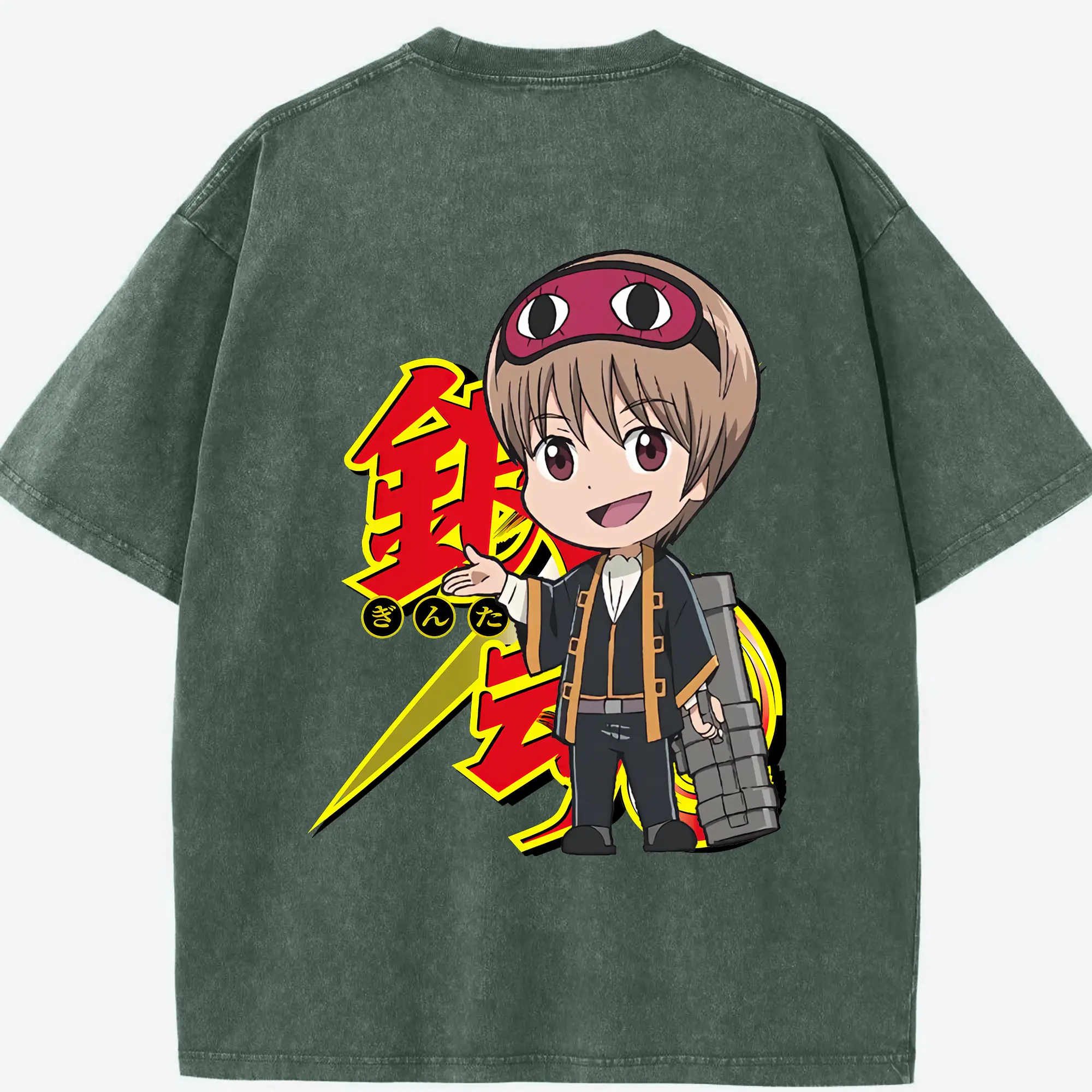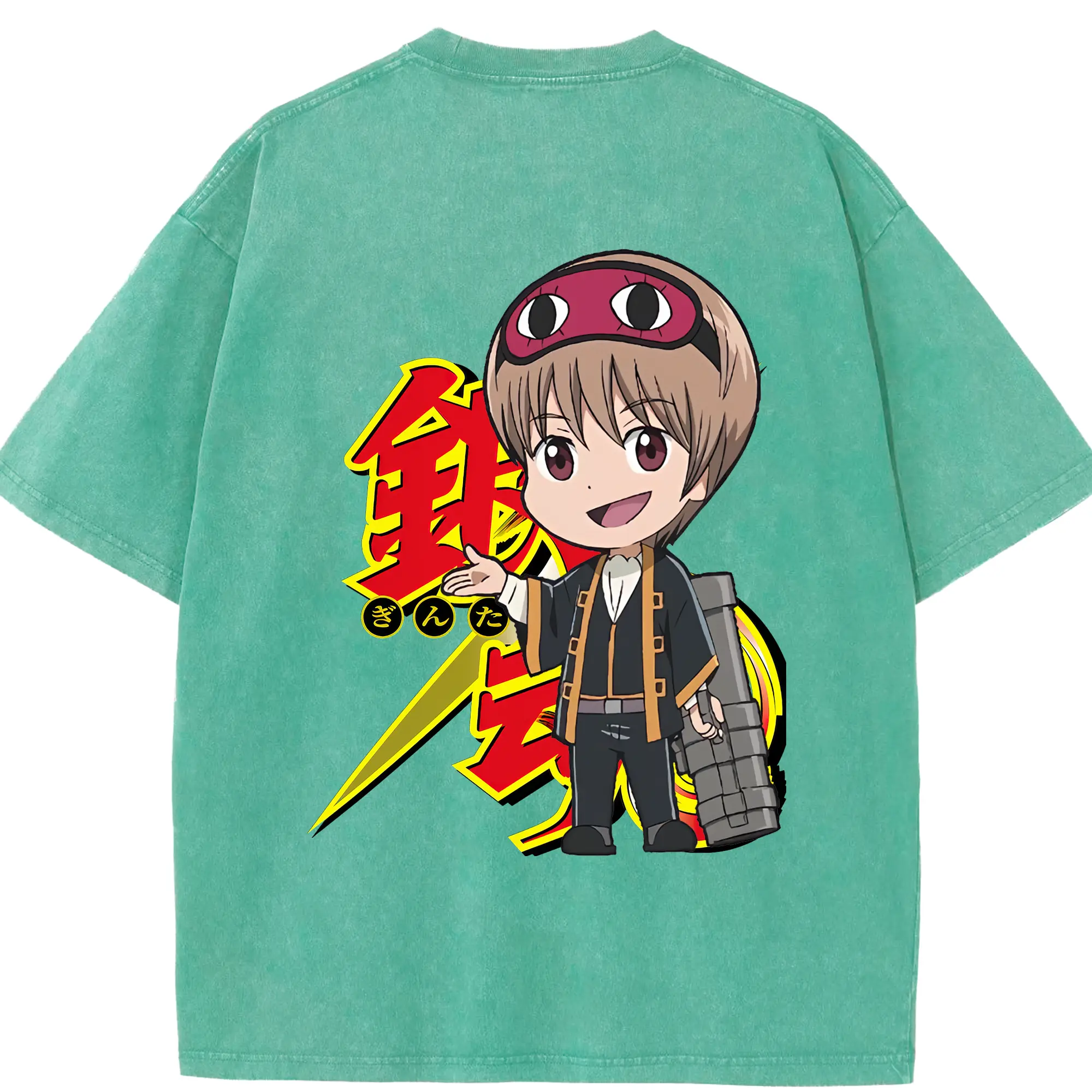 銀魂 グッズ 沖田 総悟 - 綿100% ヴィンテージ風 半袖Tシャツ ・ フロントプリント ・ 柔らか肌触り ・ 通気性 快適 ・ スポーツ カジュアル 外出用