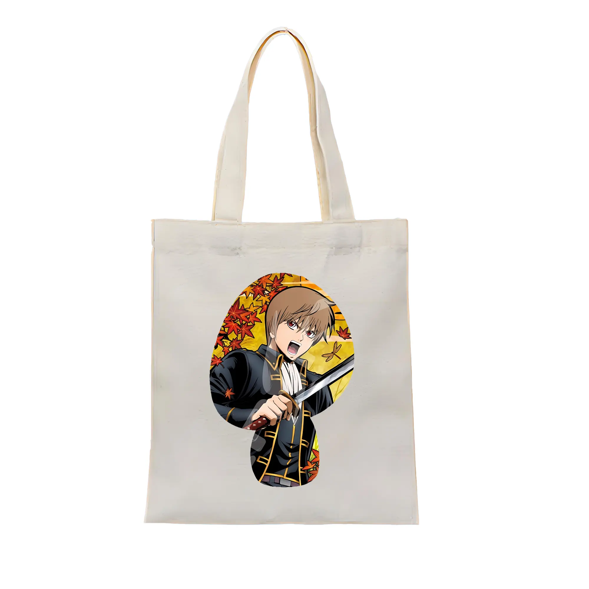 銀魂 グッズ 沖田 総悟 - 縦型キャンバス手提げバッグ(トートバッグ) ・ キャンバス素材 ・ ショッピング用 ・ 軽量 丈夫 お手入れ簡単