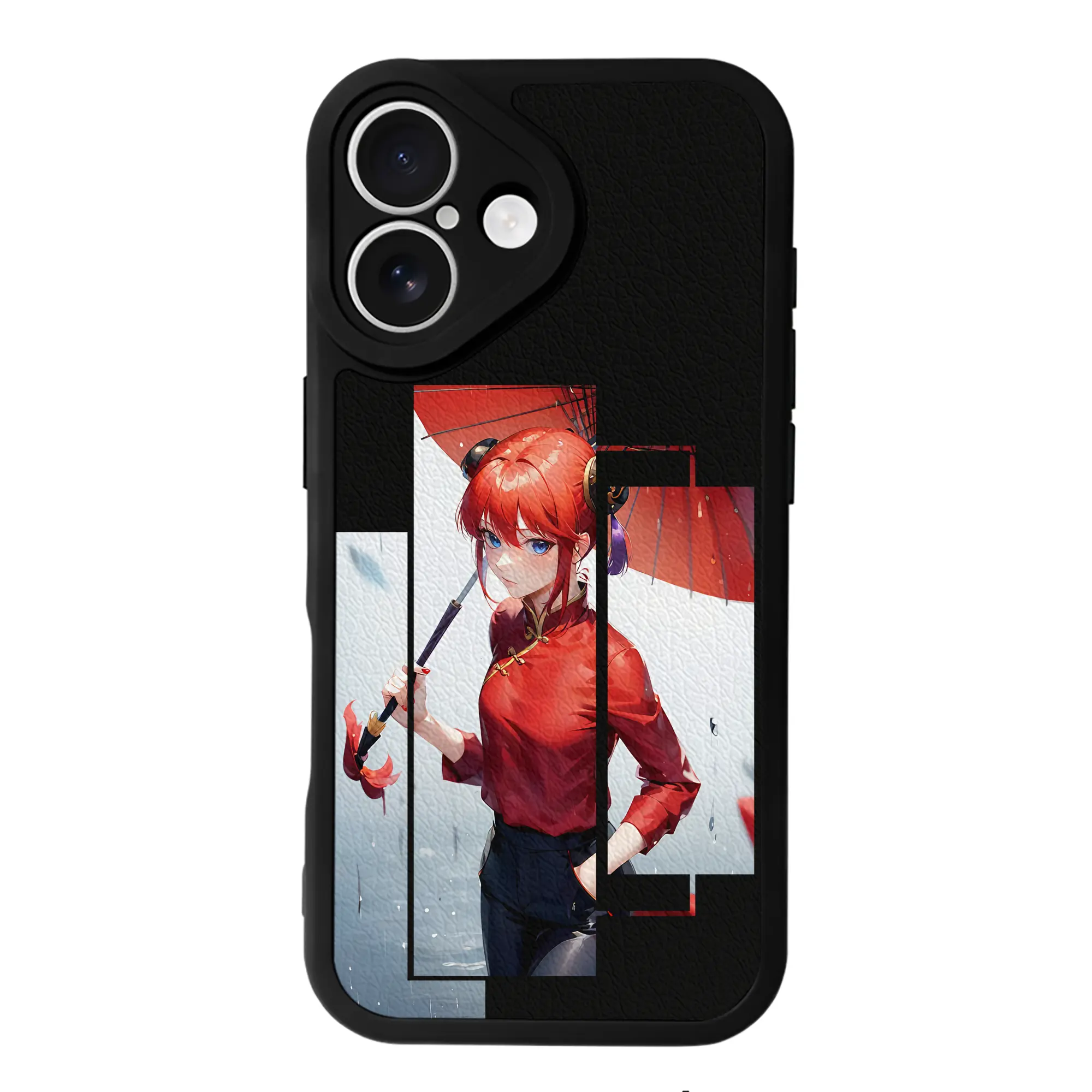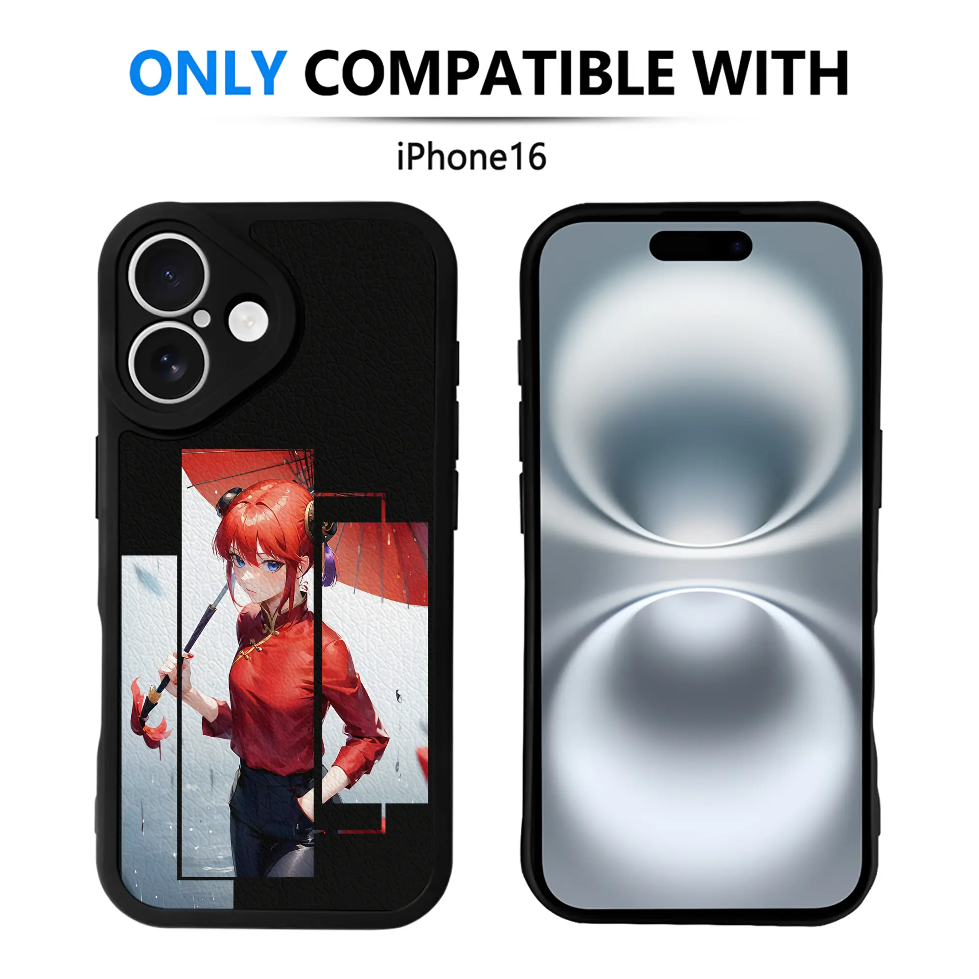 銀魂 グッズ 神楽 - IPhone 16シリーズ対応 ・ シリコンスマホケース ・ レザー調 ・ 高精度フィット ・ 耐衝撃 ・ ワイヤレス充電対応 ・ 精密カット