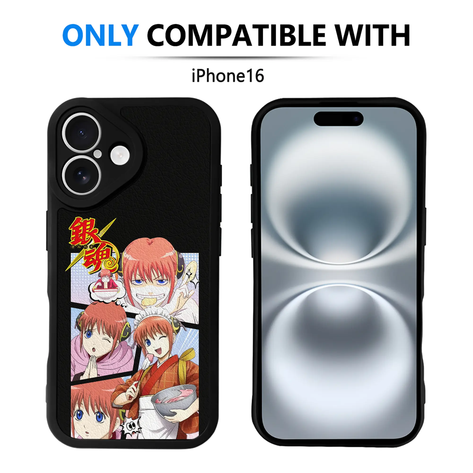銀魂 グッズ 神楽 - IPhone 16シリーズ対応 ・ シリコンスマホケース ・ レザー調 ・ 高精度フィット ・ 耐衝撃 ・ ワイヤレス充電対応 ・ 精密カット