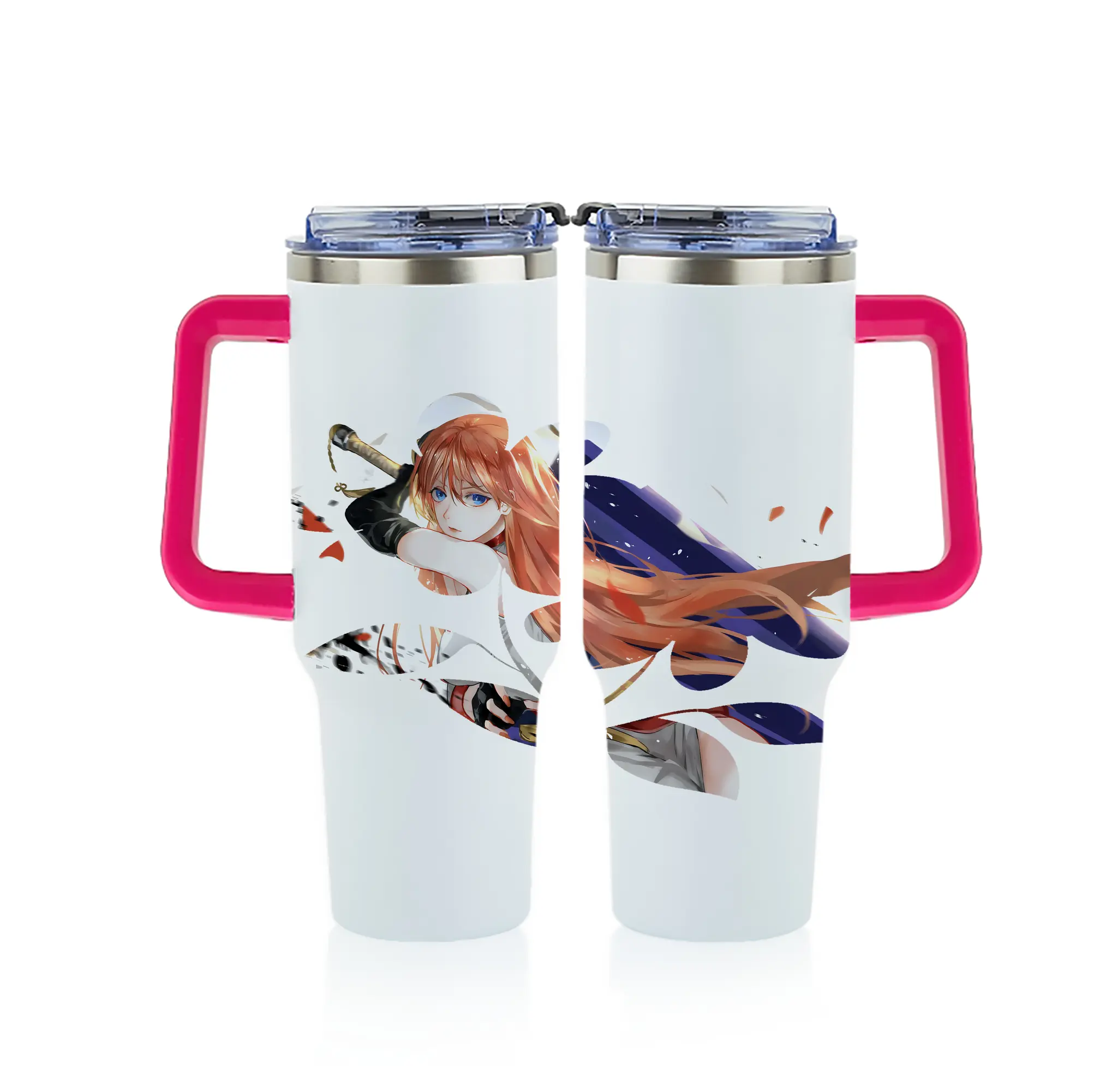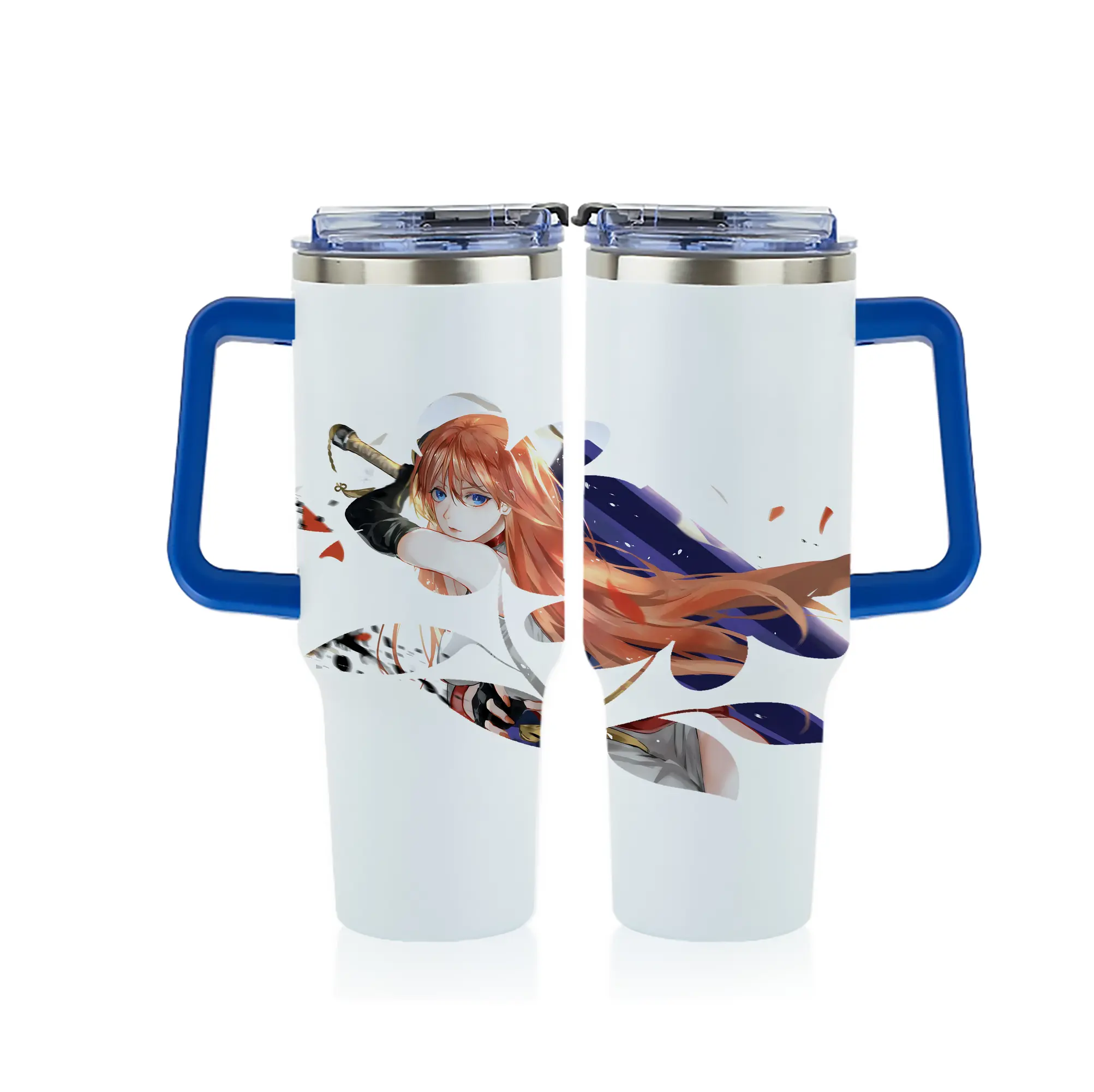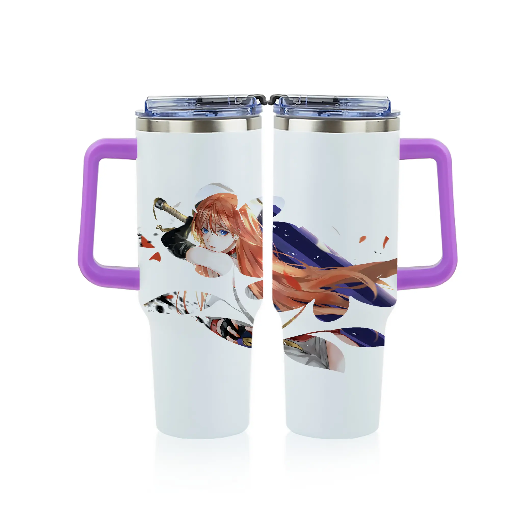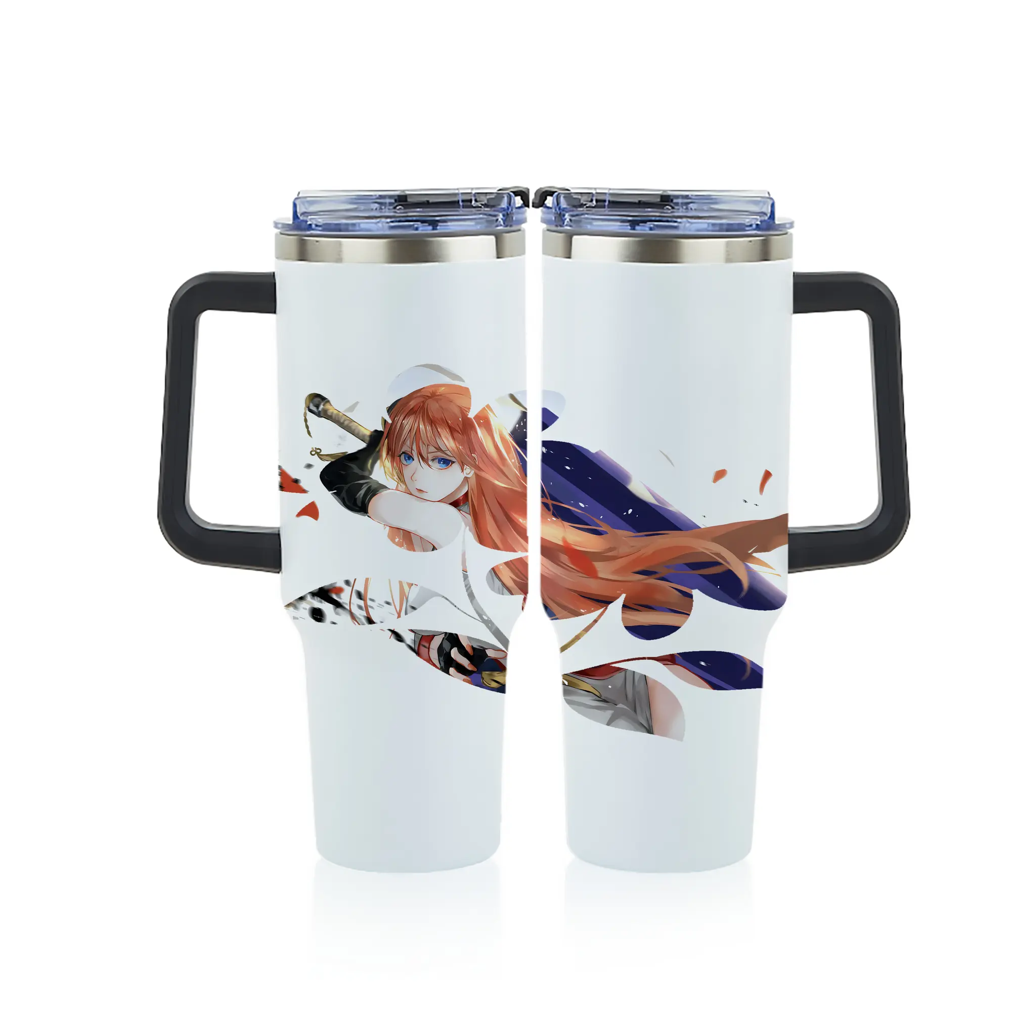銀魂 グッズ 神楽 - 1200mL フルプリント車用タンブラー ・ 304ステンレス 内側 ・ 201ステンレス 外側 ・ 保温 保冷 ・ 通勤 ドライブ アウトドア用