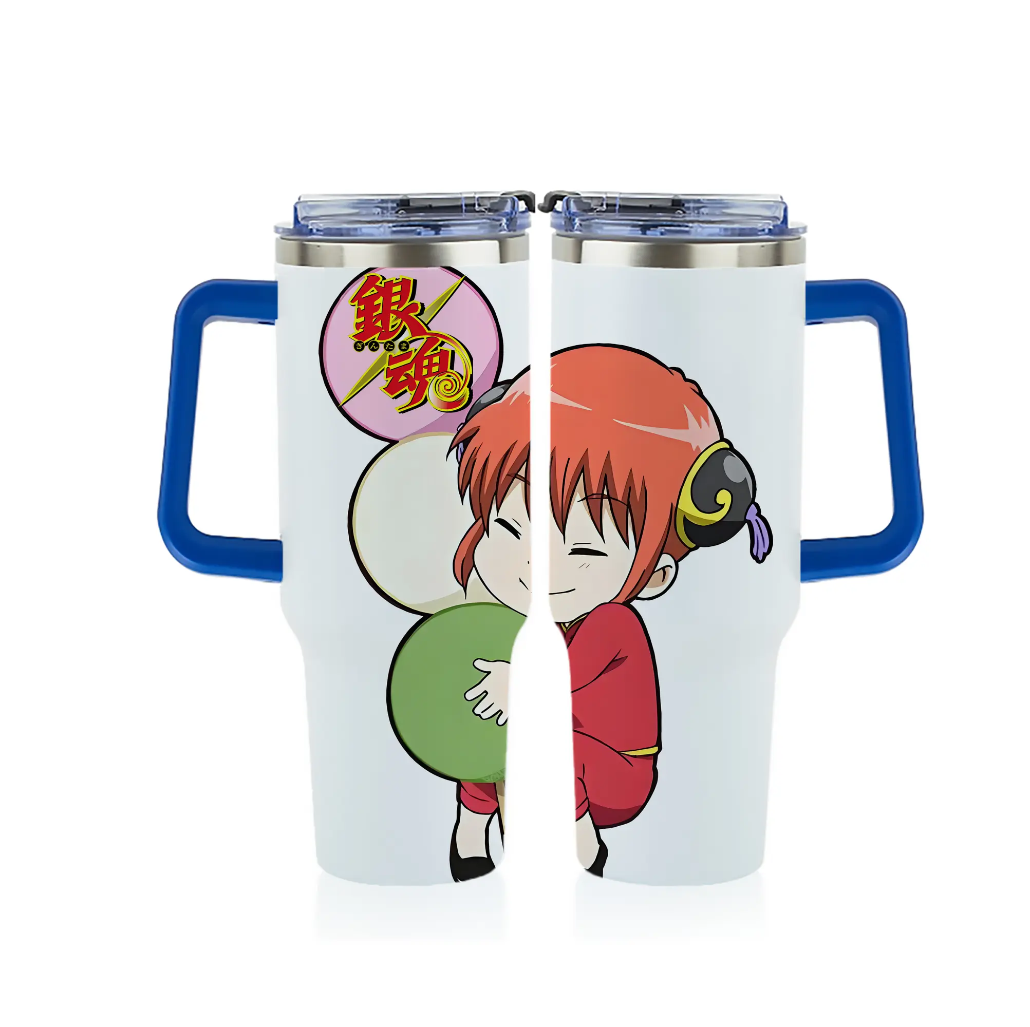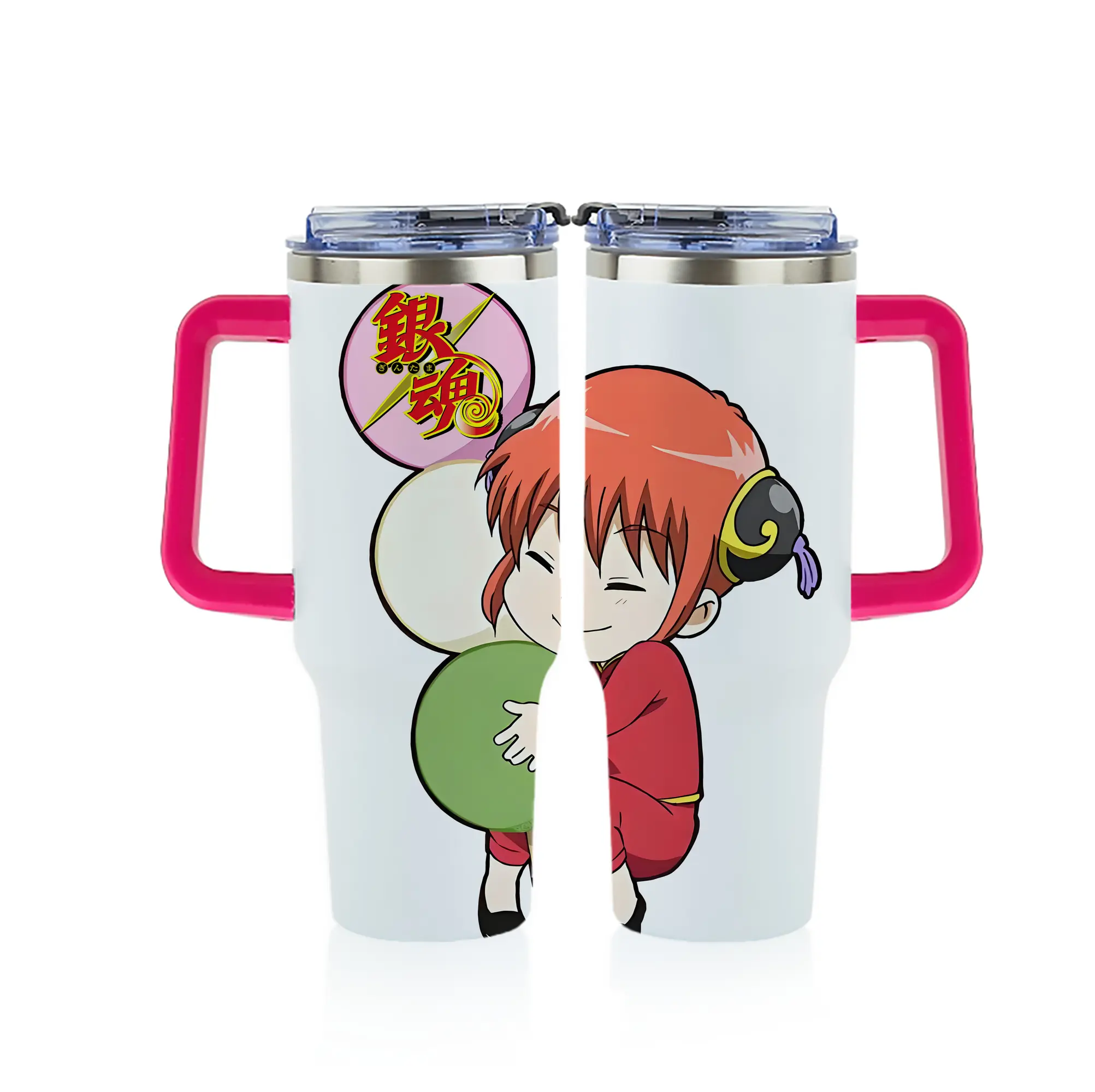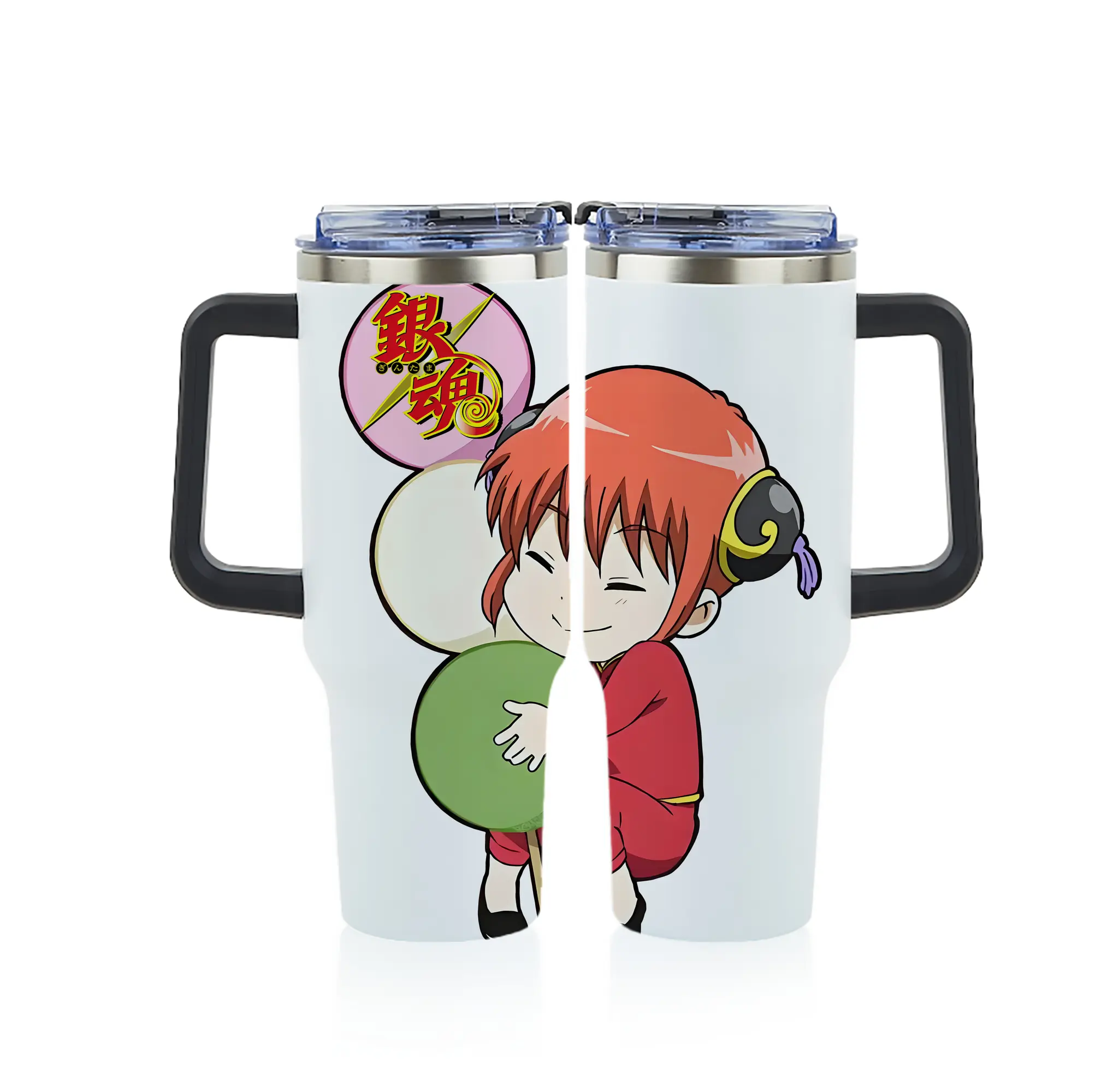 銀魂 グッズ 神楽 - 1200mL フルプリント車用タンブラー ・ 304ステンレス 内側 ・ 201ステンレス 外側 ・ 保温 保冷 ・ 通勤 ドライブ アウトドア用