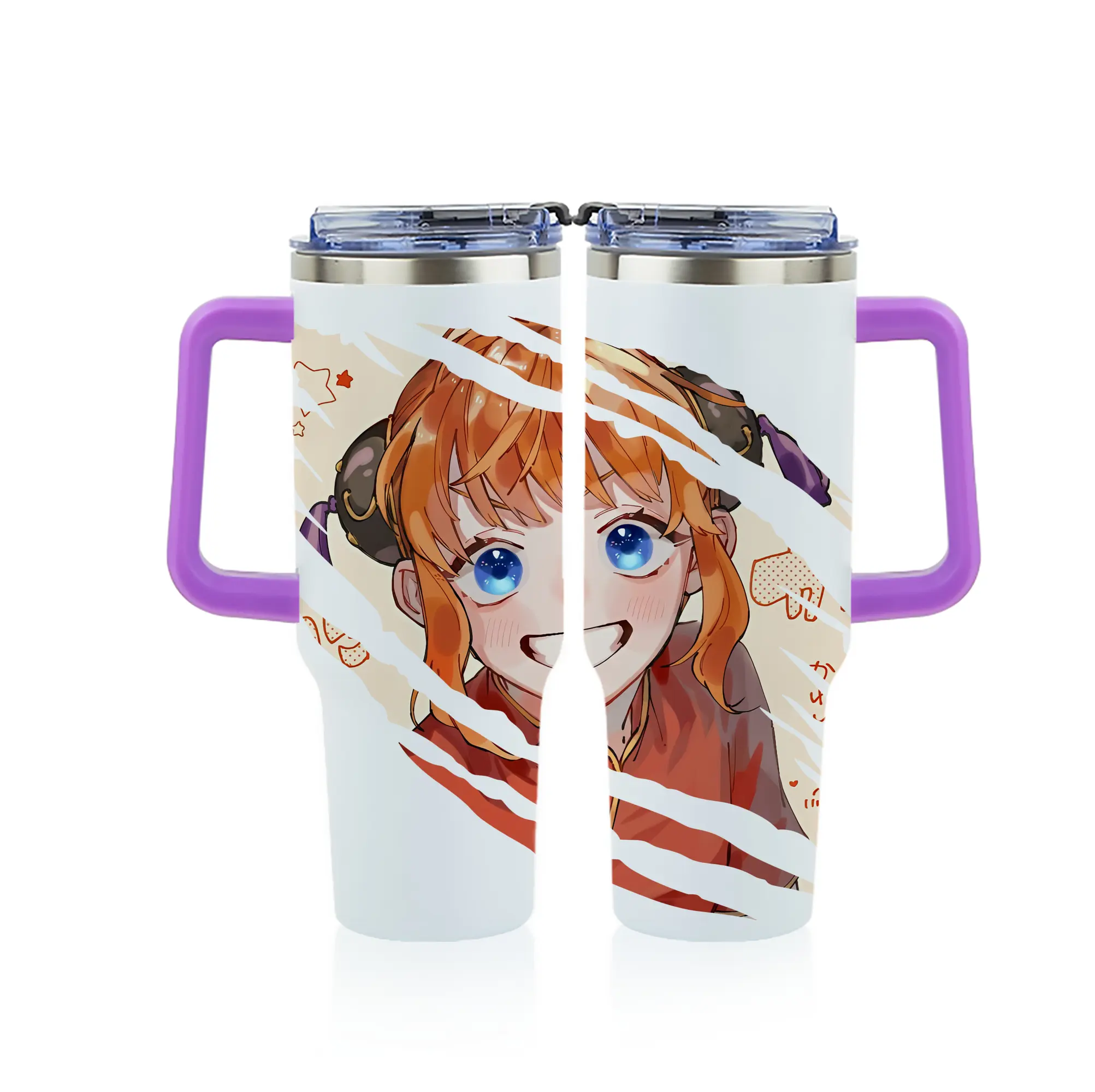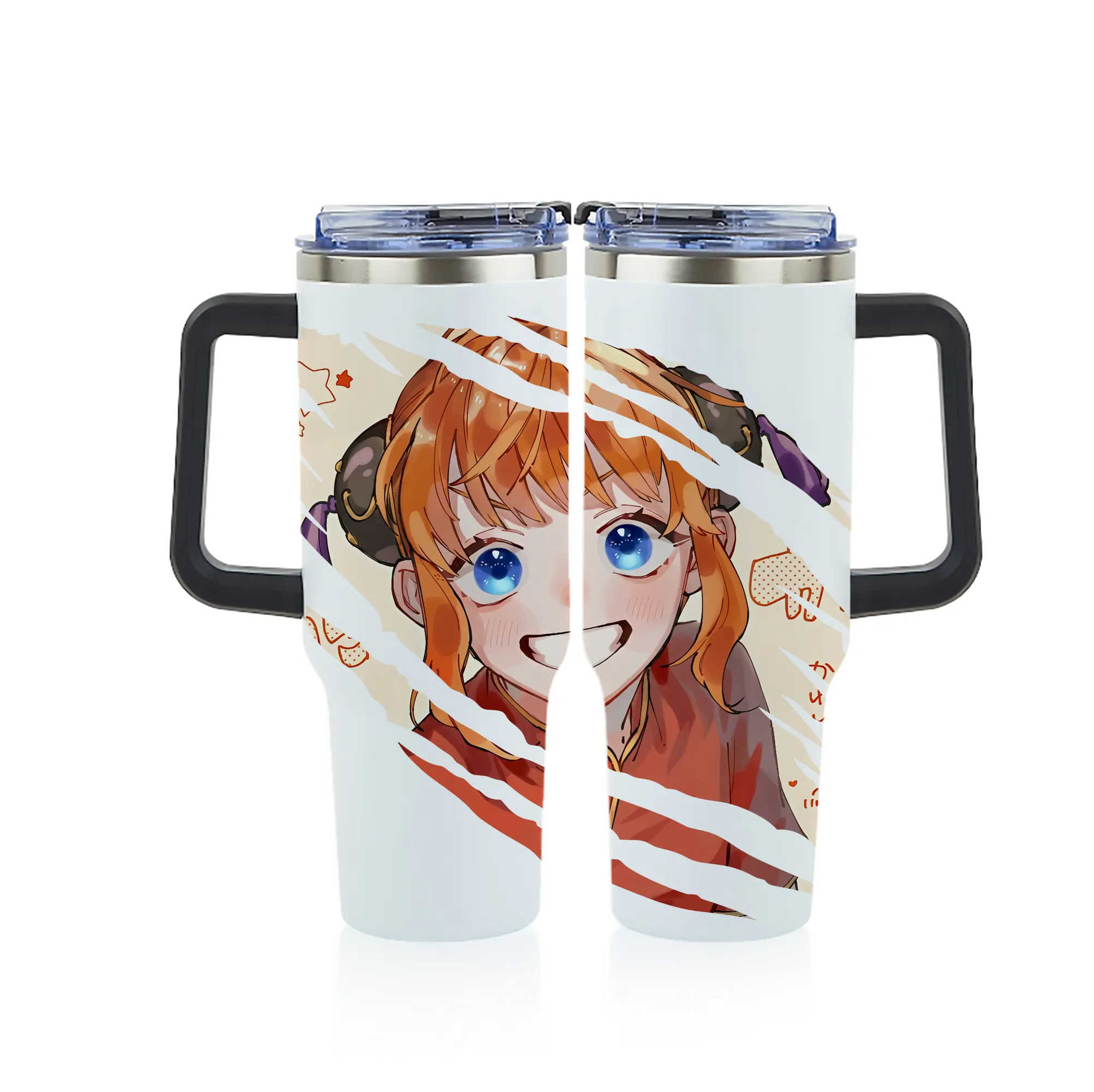 銀魂 グッズ 神楽 - 1200mL フルプリント車用タンブラー ・ 304ステンレス 内側 ・ 201ステンレス 外側 ・ 保温 保冷 ・ 通勤 ドライブ アウトドア用