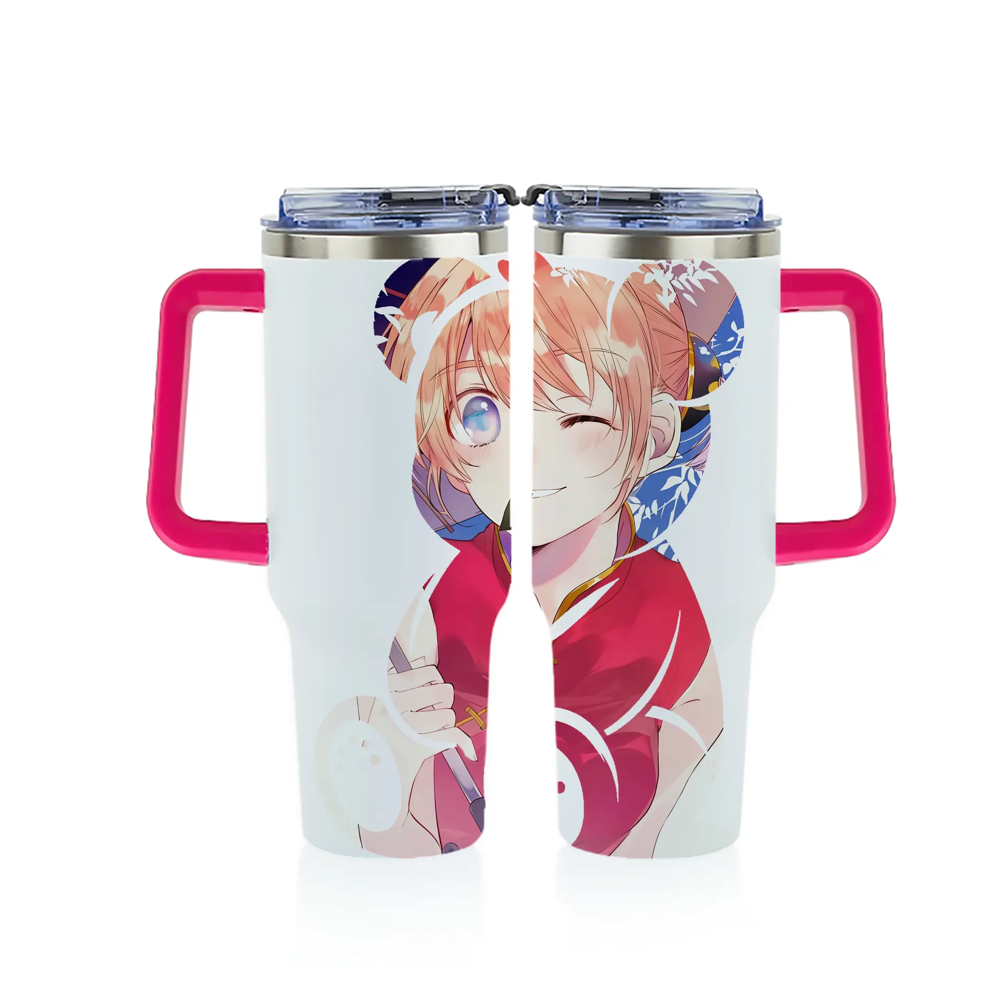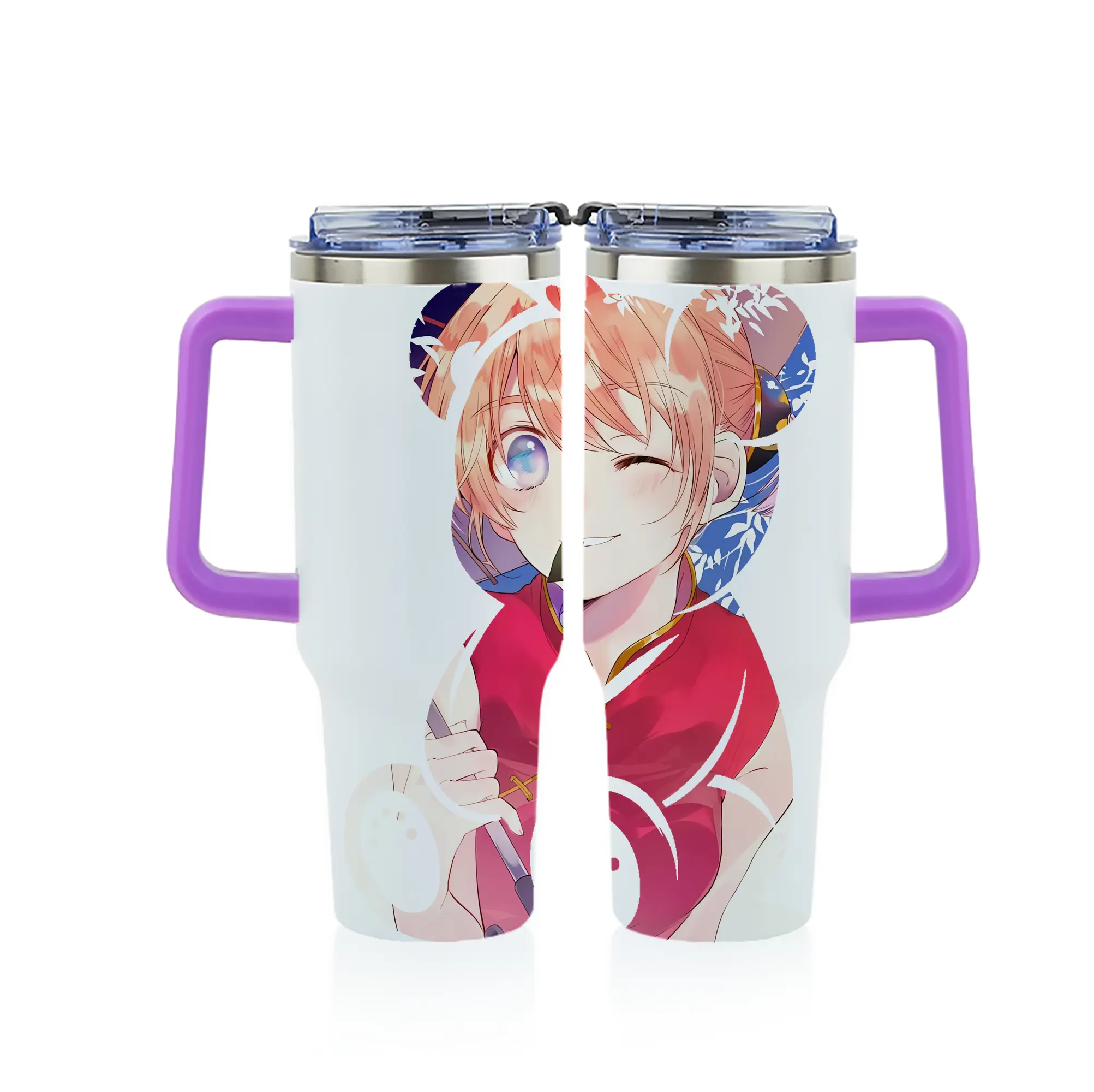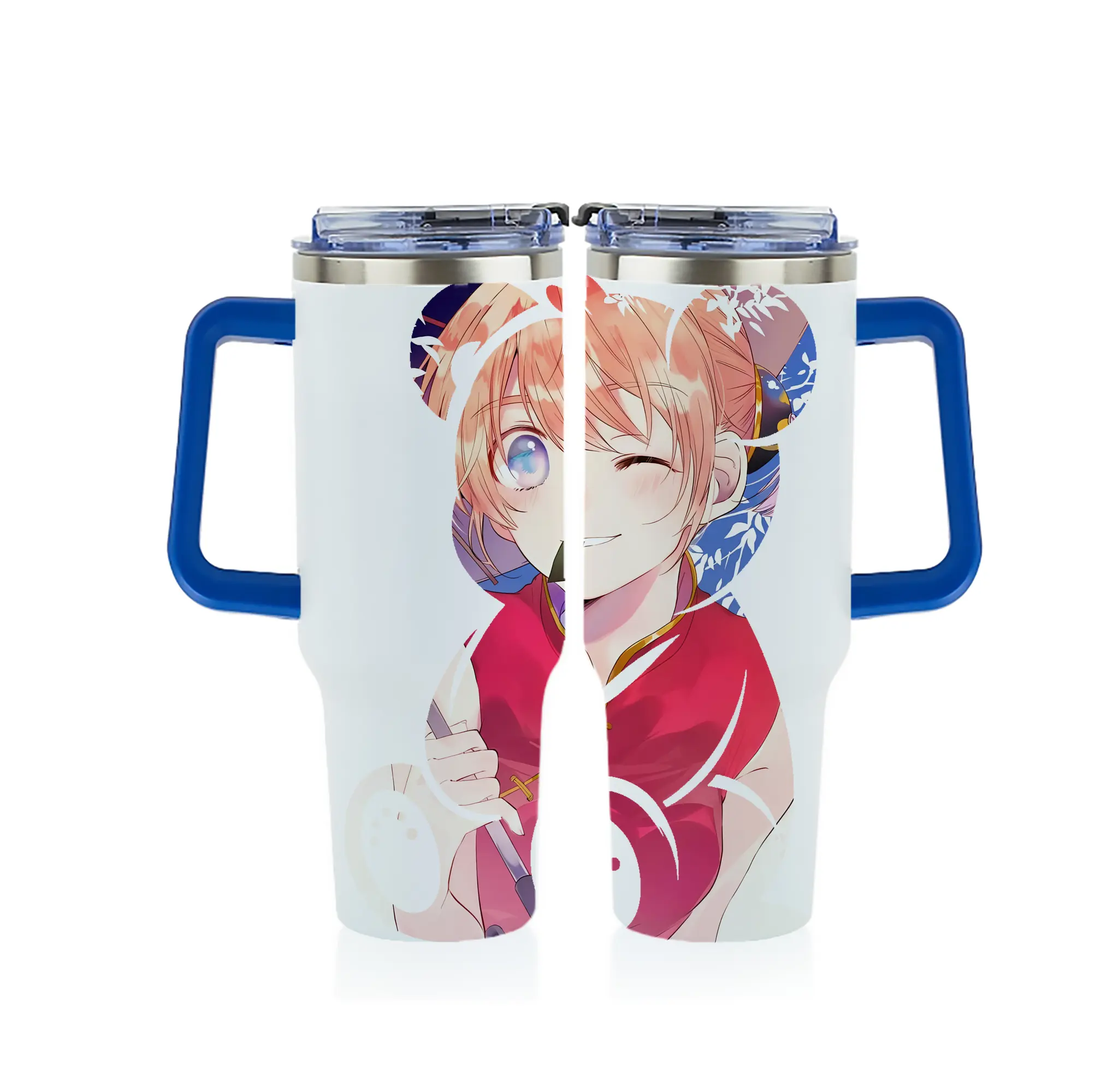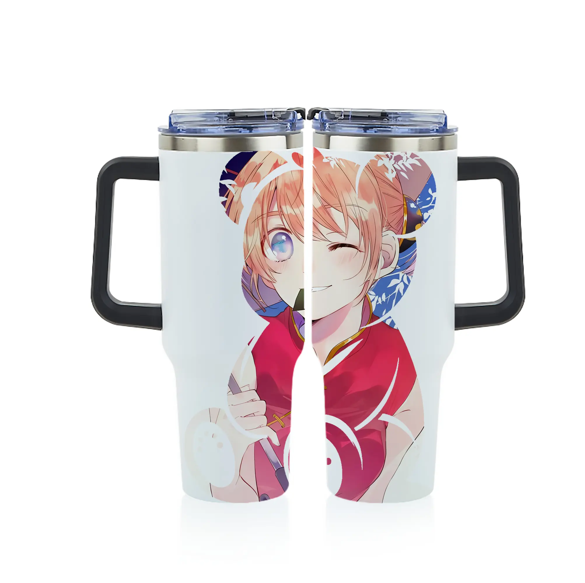 銀魂 グッズ 神楽 - 1200mL フルプリント車用タンブラー ・ 304ステンレス 内側 ・ 201ステンレス 外側 ・ 保温 保冷 ・ 通勤 ドライブ アウトドア用