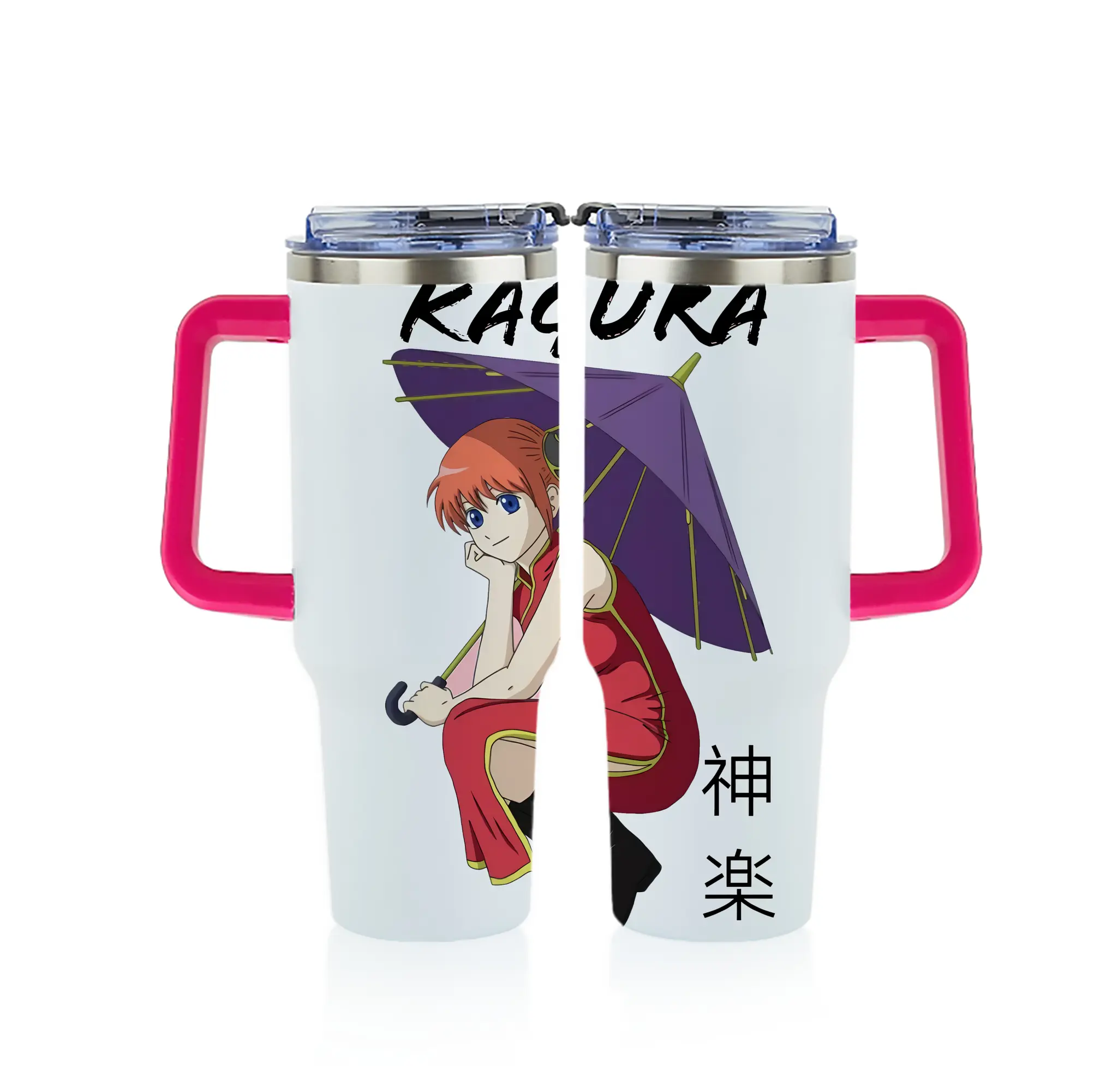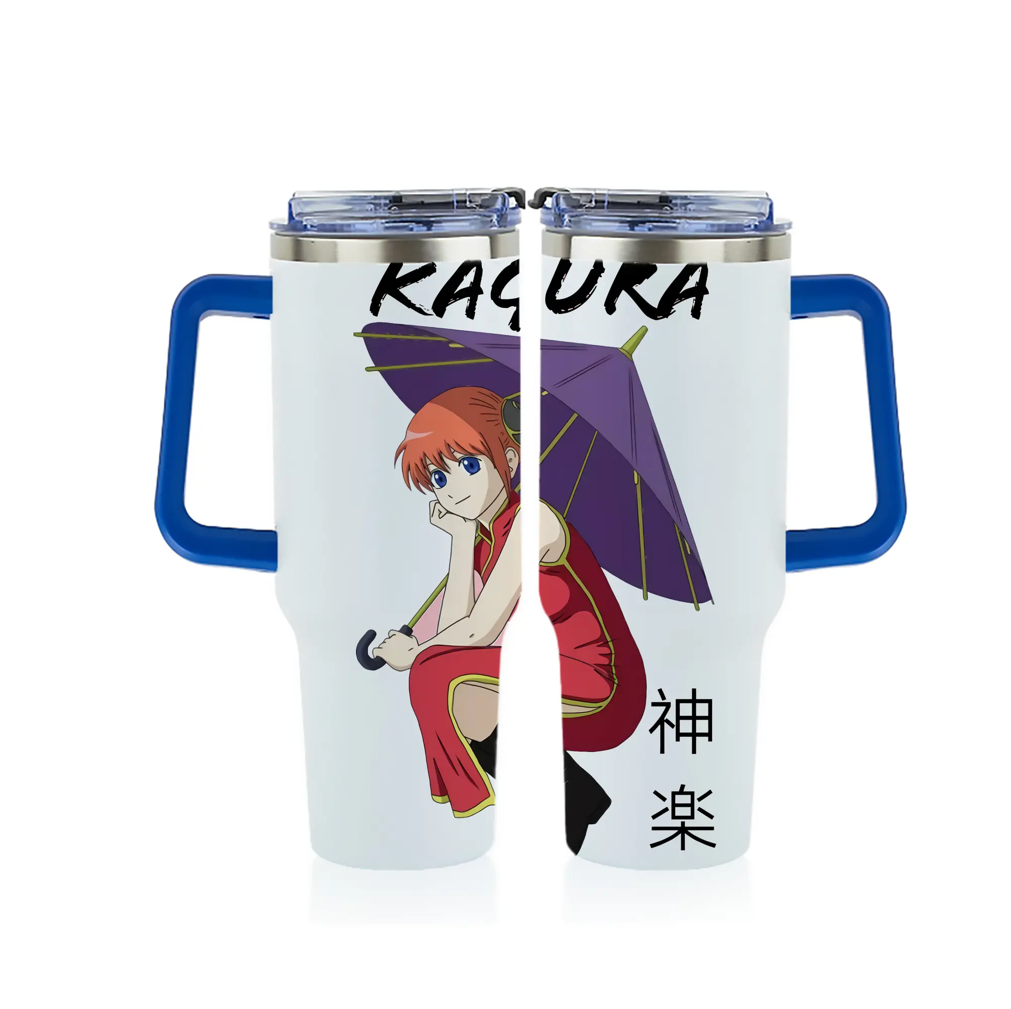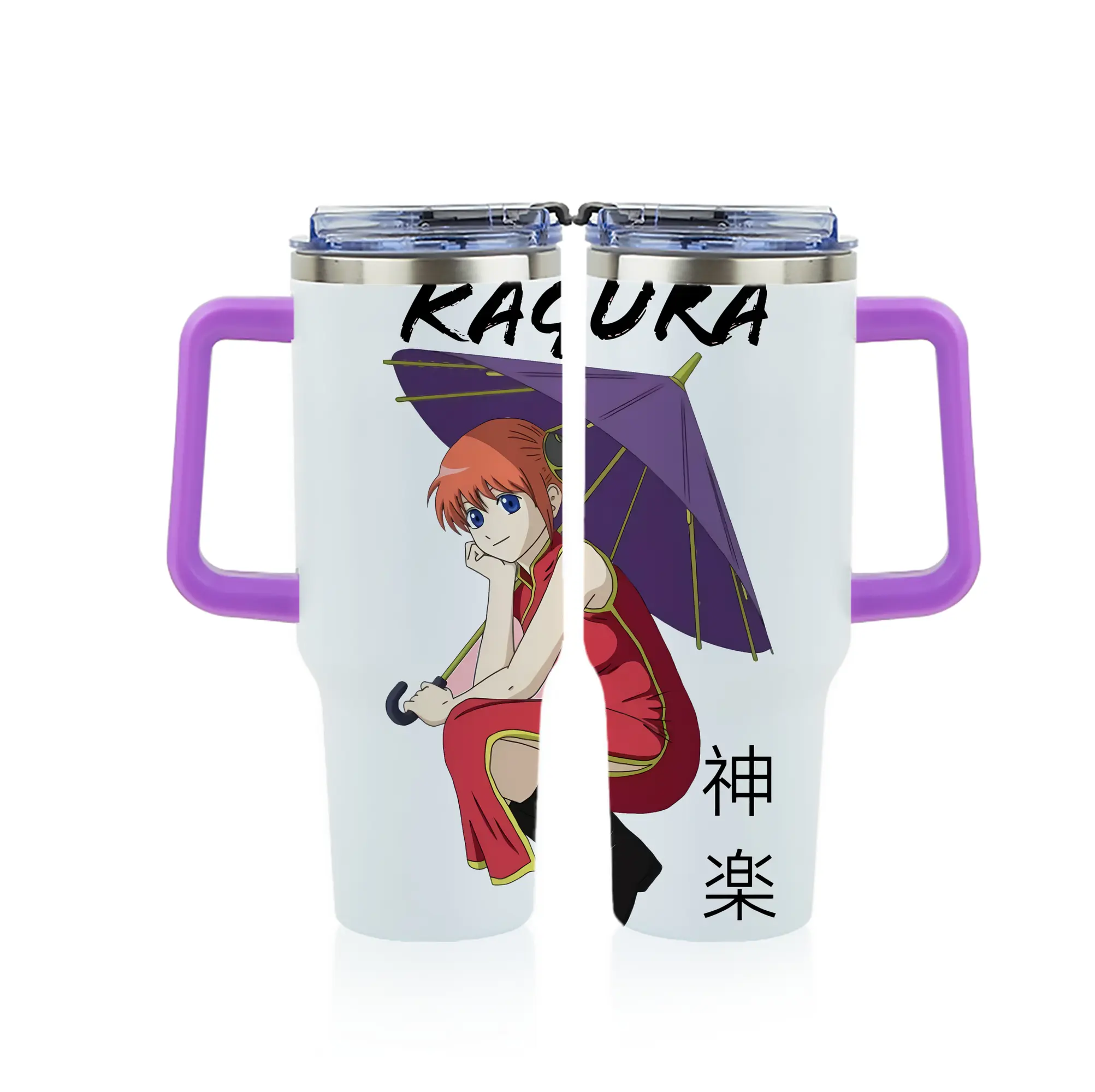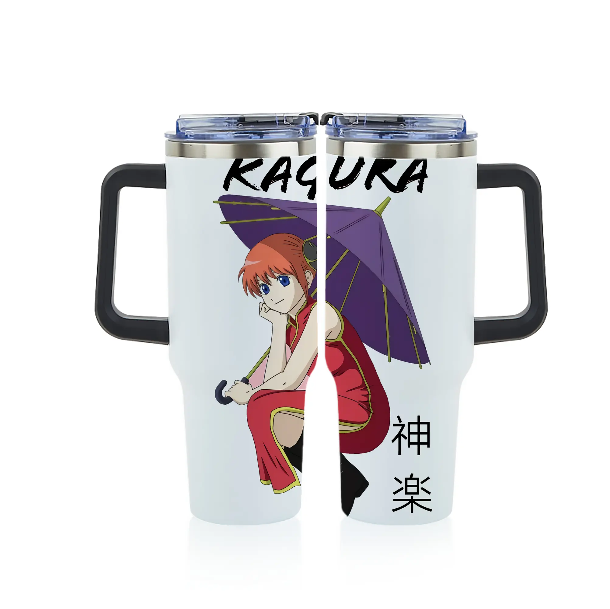 銀魂 グッズ 神楽 - 1200mL フルプリント車用タンブラー ・ 304ステンレス 内側 ・ 201ステンレス 外側 ・ 保温 保冷 ・ 通勤 ドライブ アウトドア用