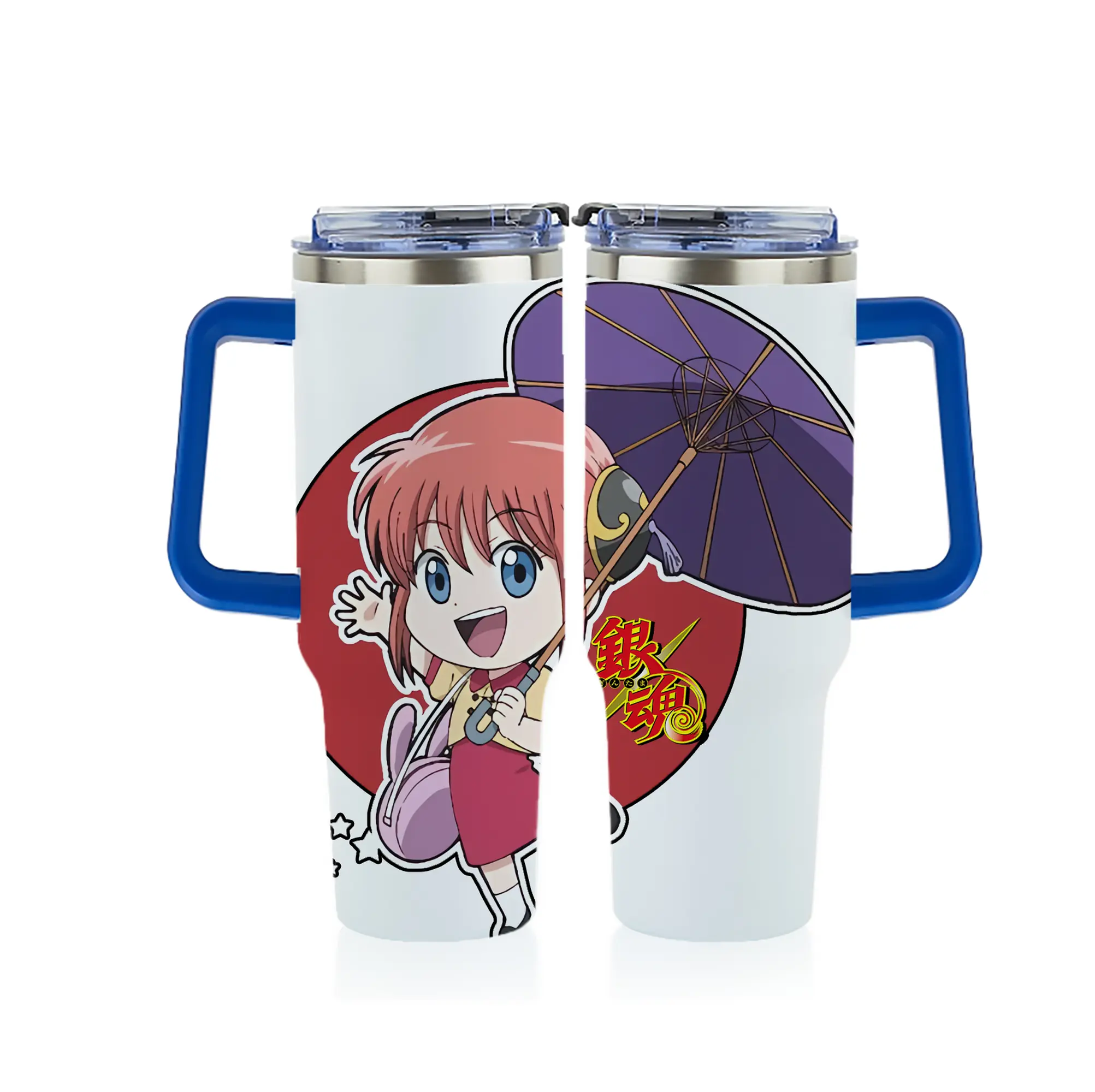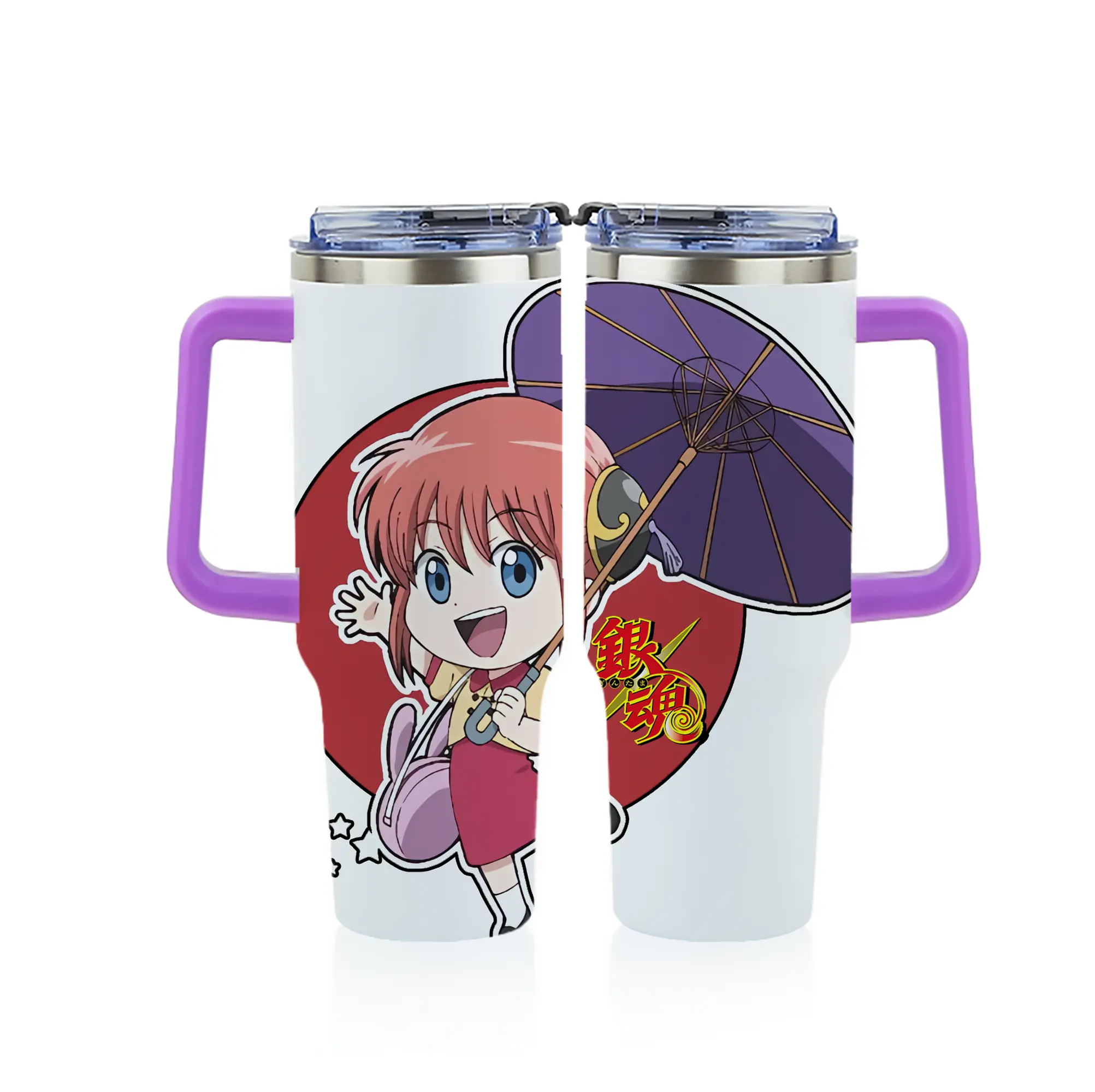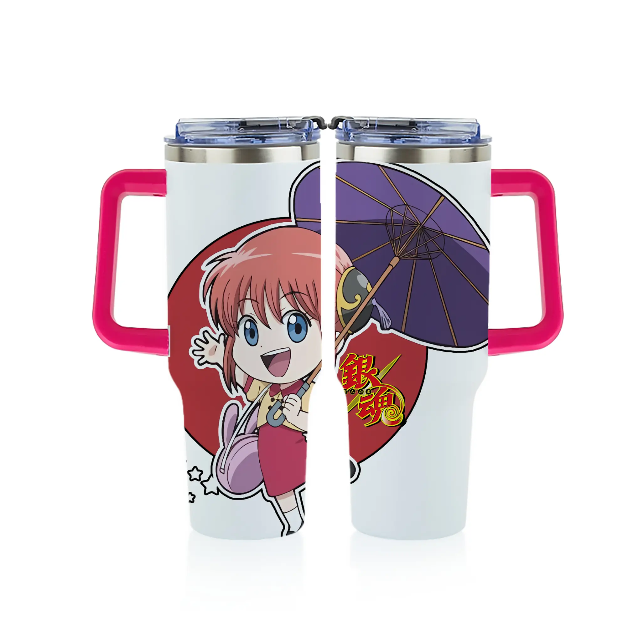 銀魂 グッズ 神楽 - 1200mL フルプリント車用タンブラー ・ 304ステンレス 内側 ・ 201ステンレス 外側 ・ 保温 保冷 ・ 通勤 ドライブ アウトドア用