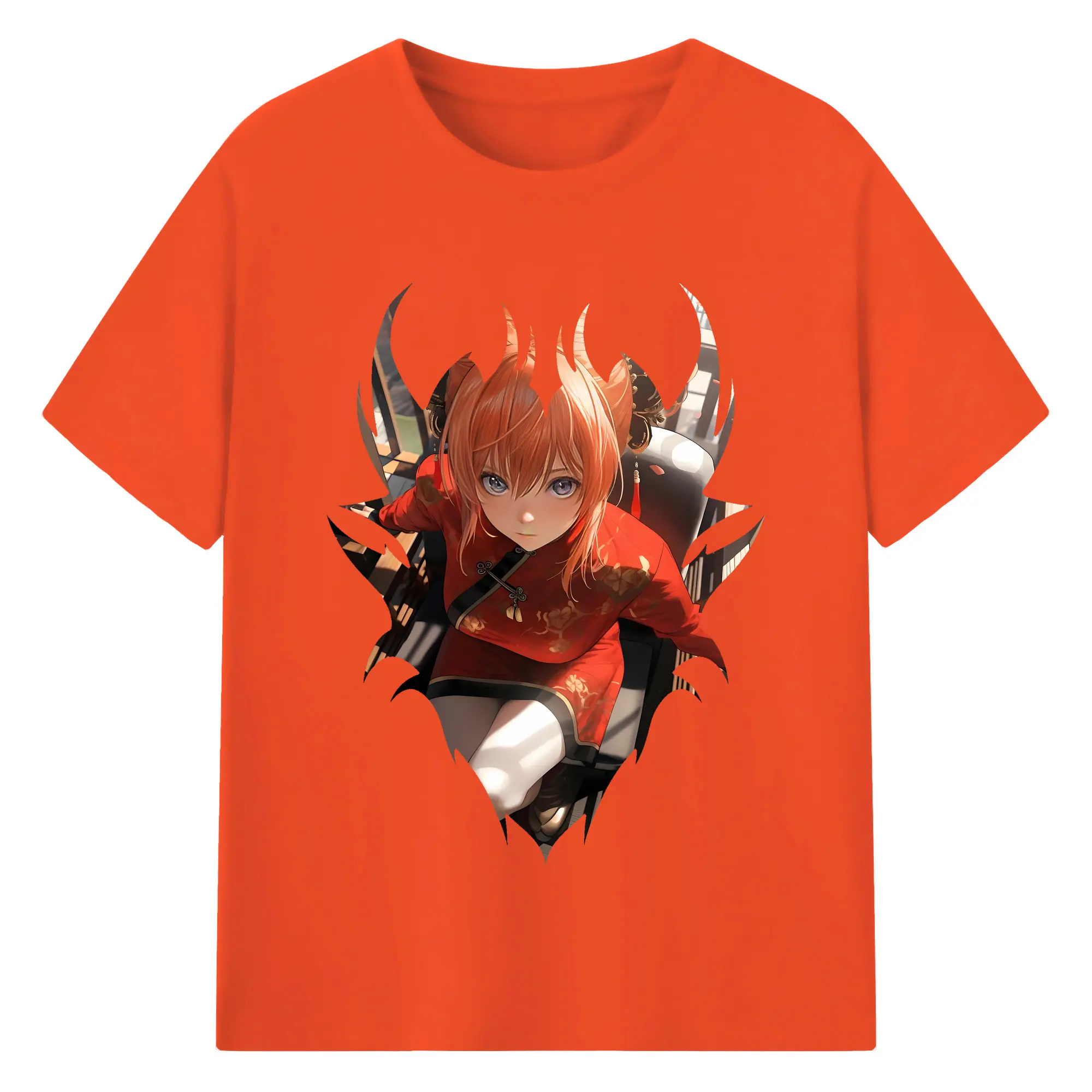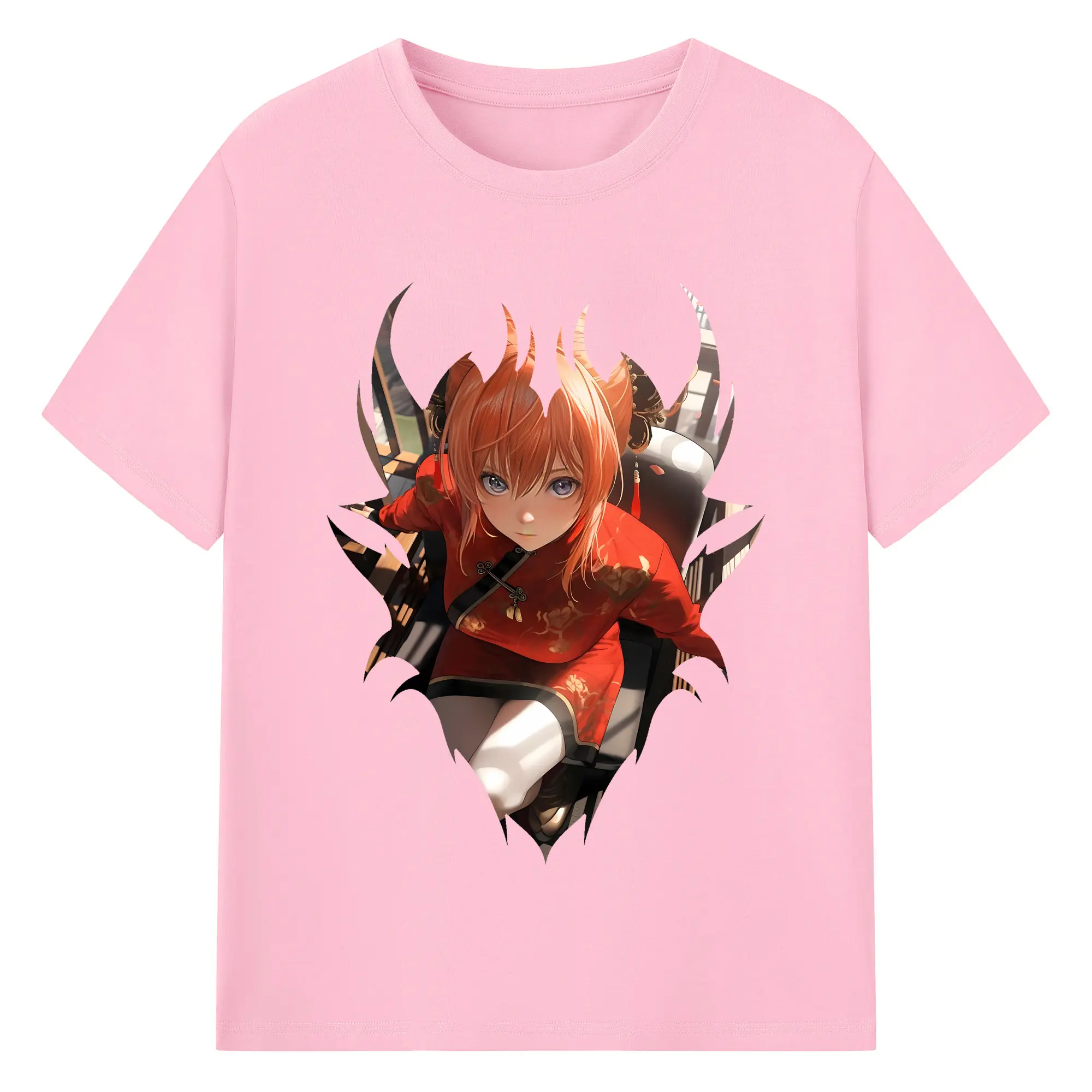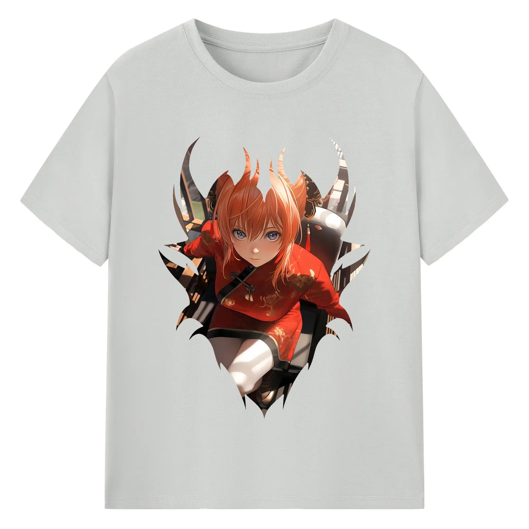 銀魂 グッズ 神楽 - 綿100% ヴィンテージ風 半袖Tシャツ ・ 背面プリント ・ 柔らか肌触り ・ 通気性 快適 ・ スポーツ カジュアル 外出用