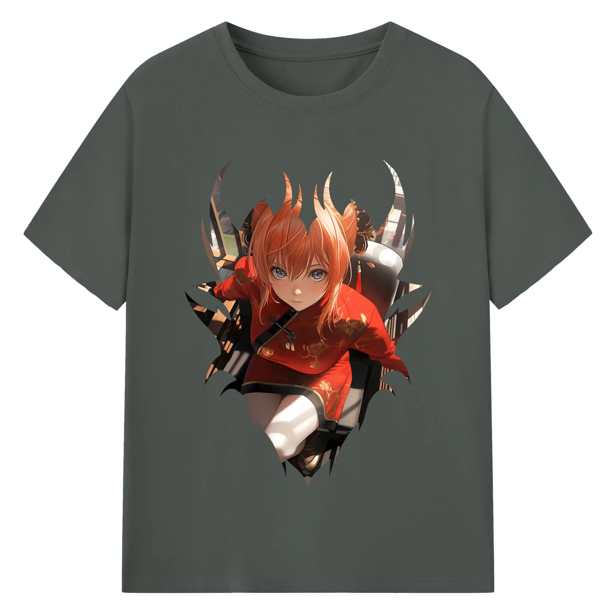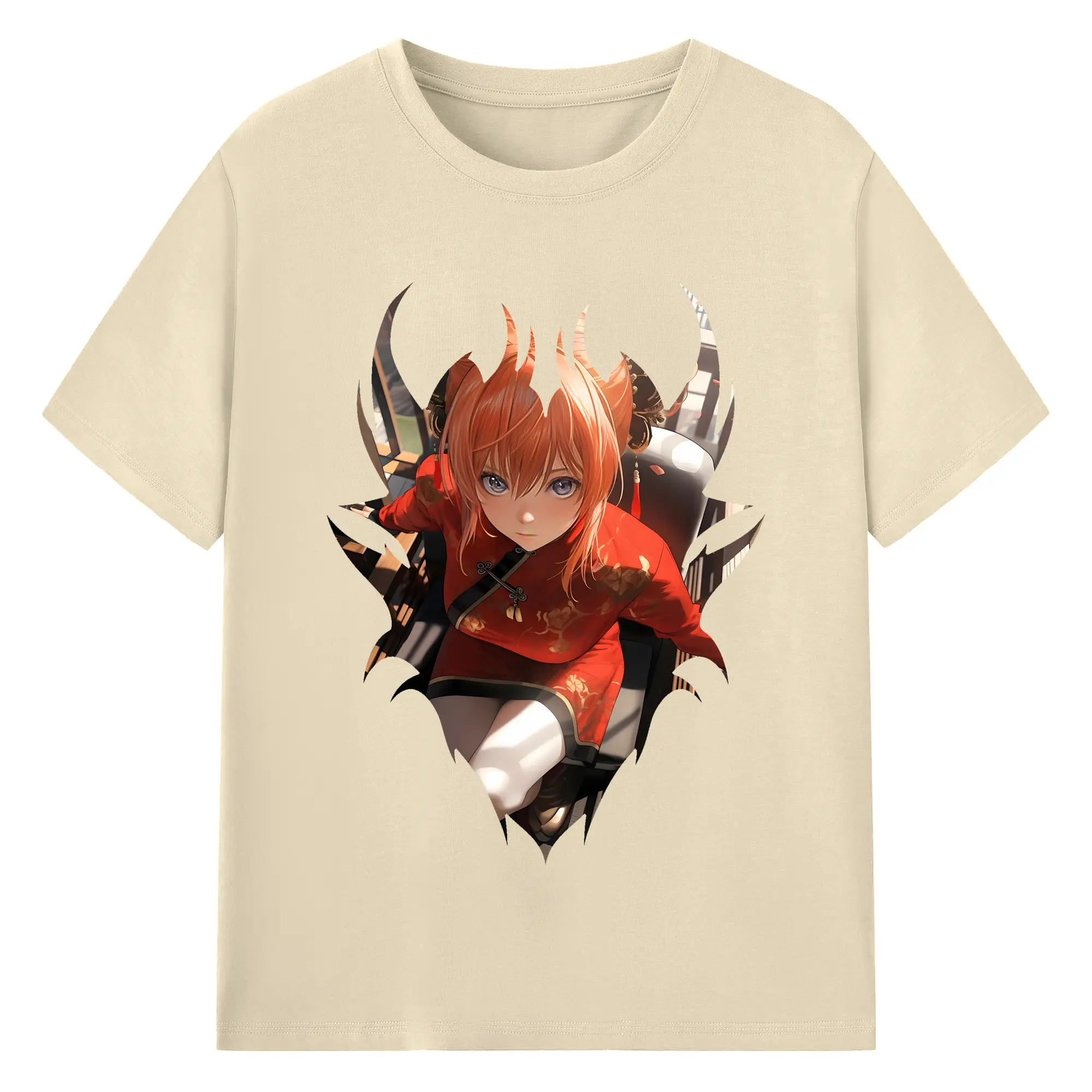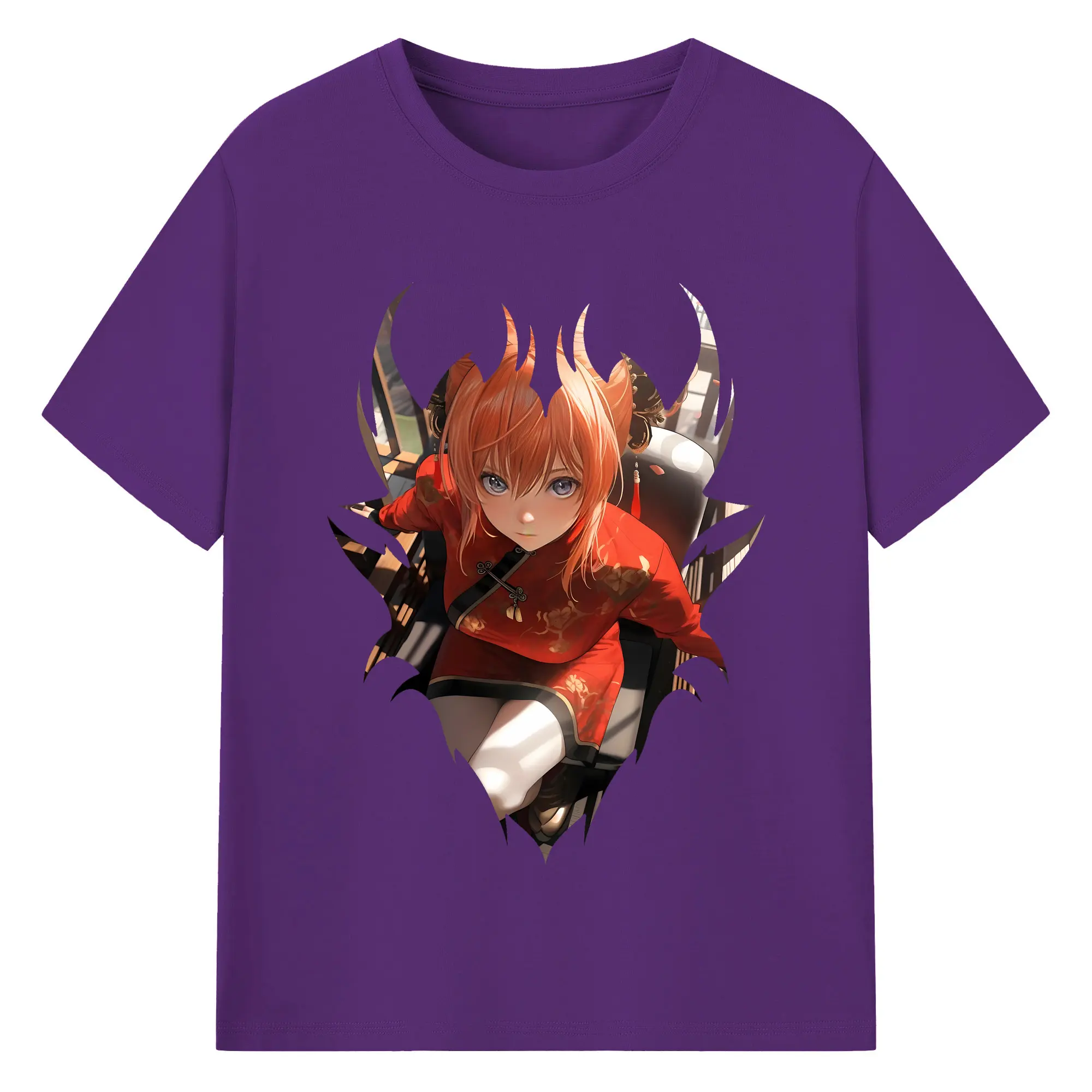 銀魂 グッズ 神楽 - 綿100% ヴィンテージ風 半袖Tシャツ ・ 背面プリント ・ 柔らか肌触り ・ 通気性 快適 ・ スポーツ カジュアル 外出用