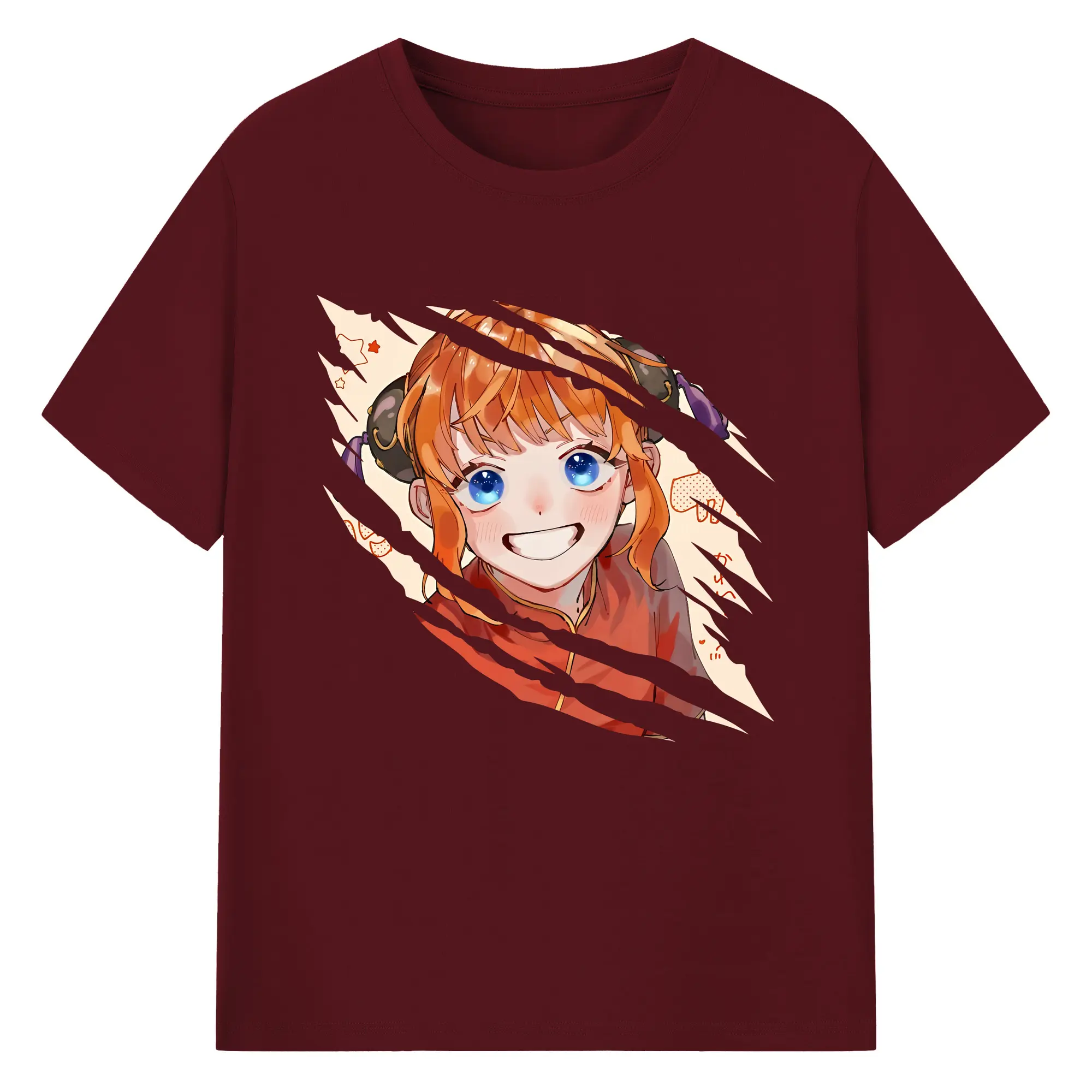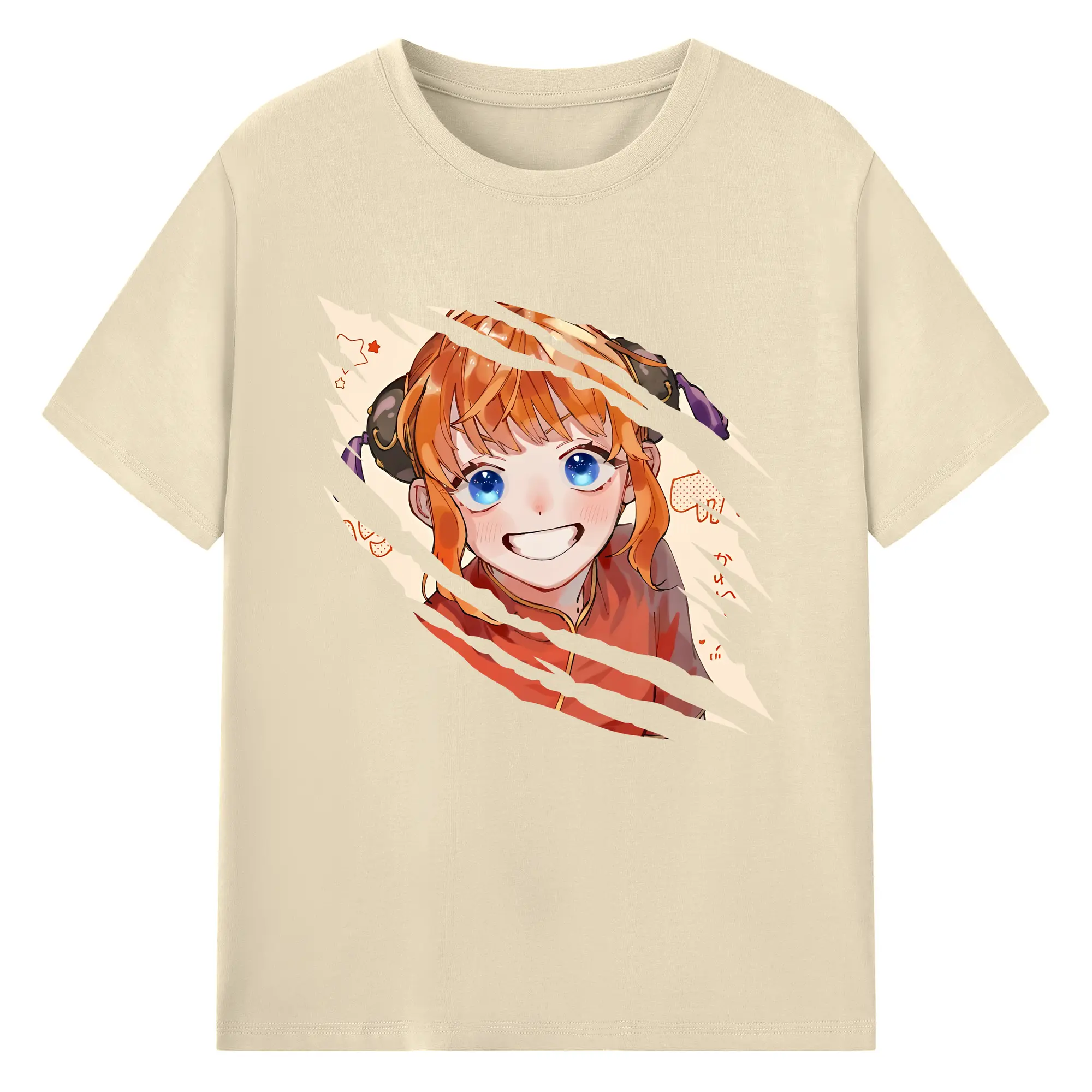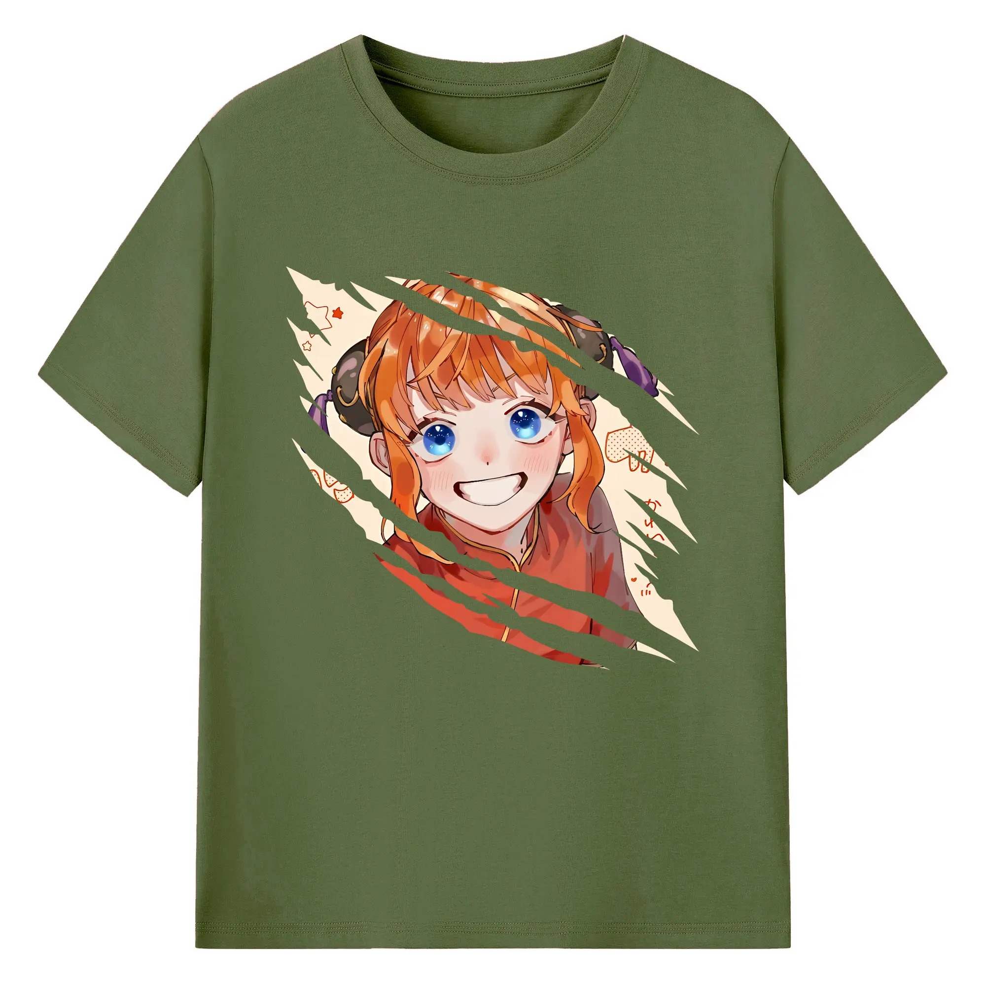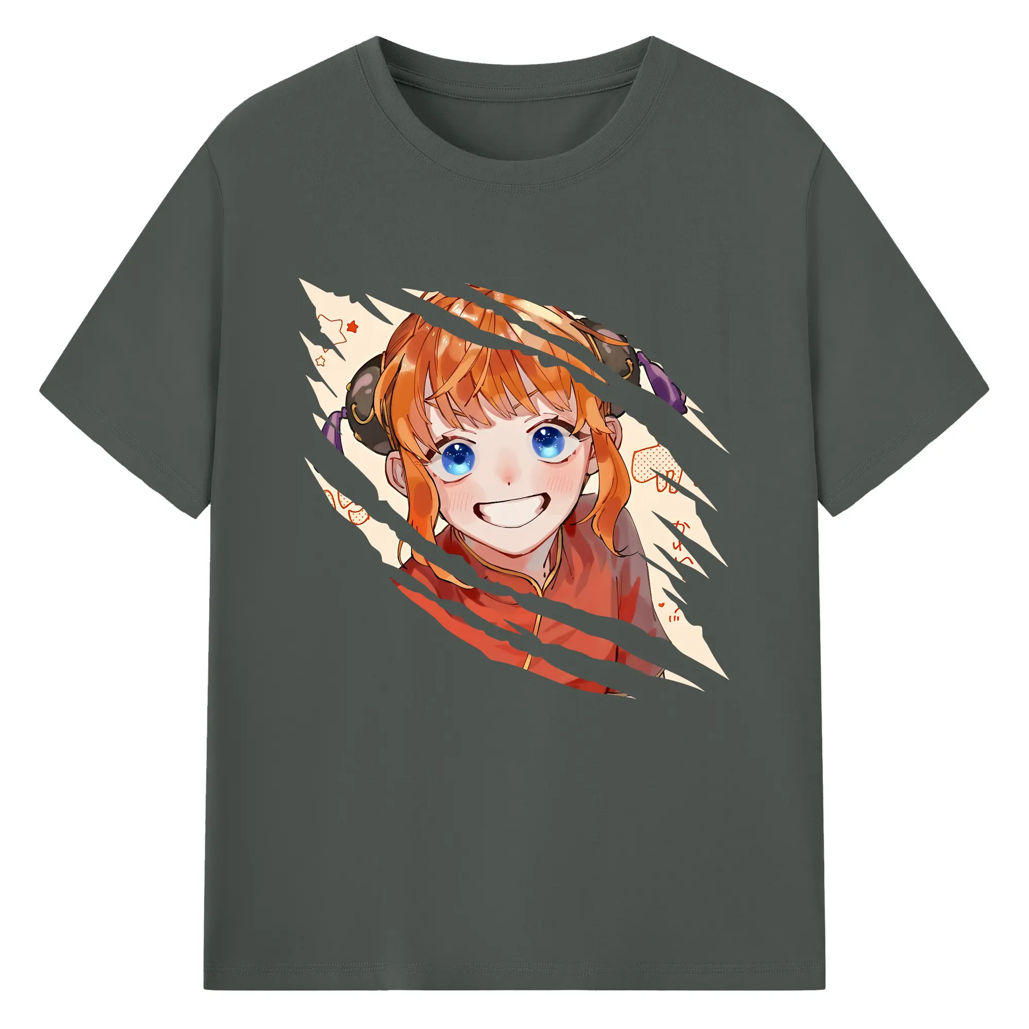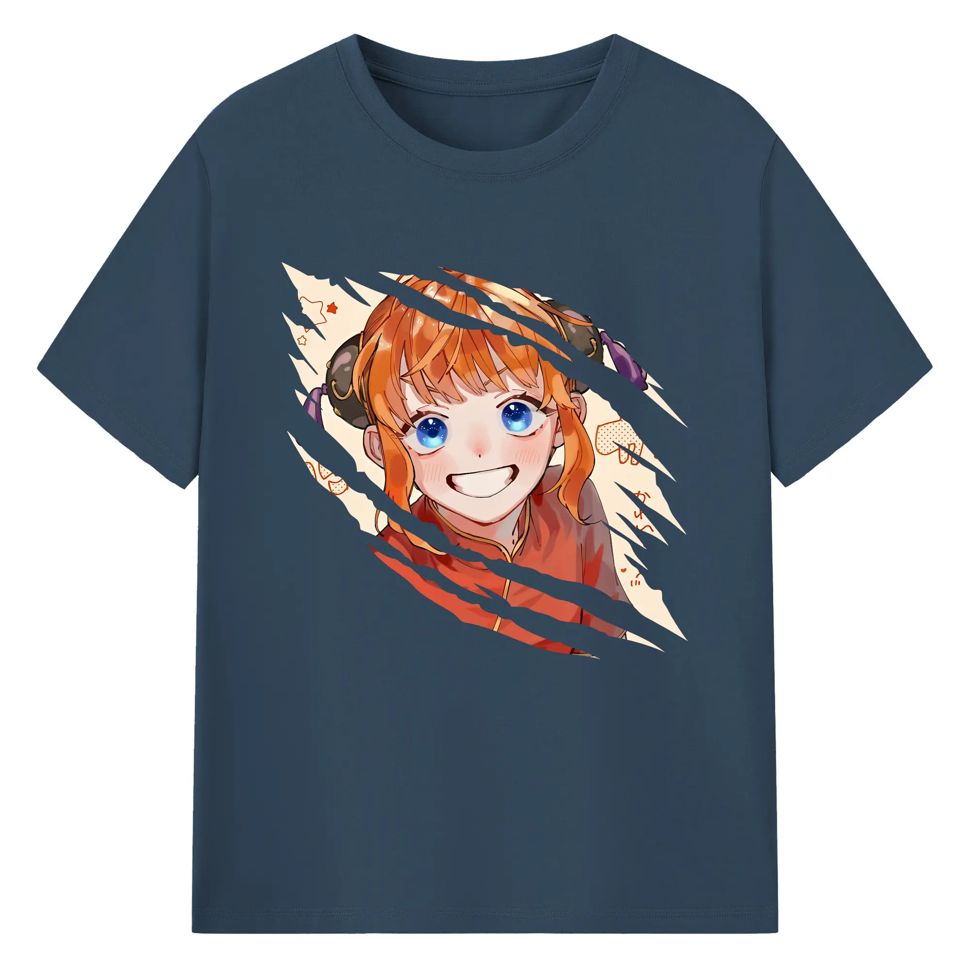 銀魂 グッズ 神楽 - 綿100% ヴィンテージ風 半袖Tシャツ ・ フロントプリント ・ 柔らか肌触り ・ 通気性 快適 ・ スポーツ カジュアル 外出用