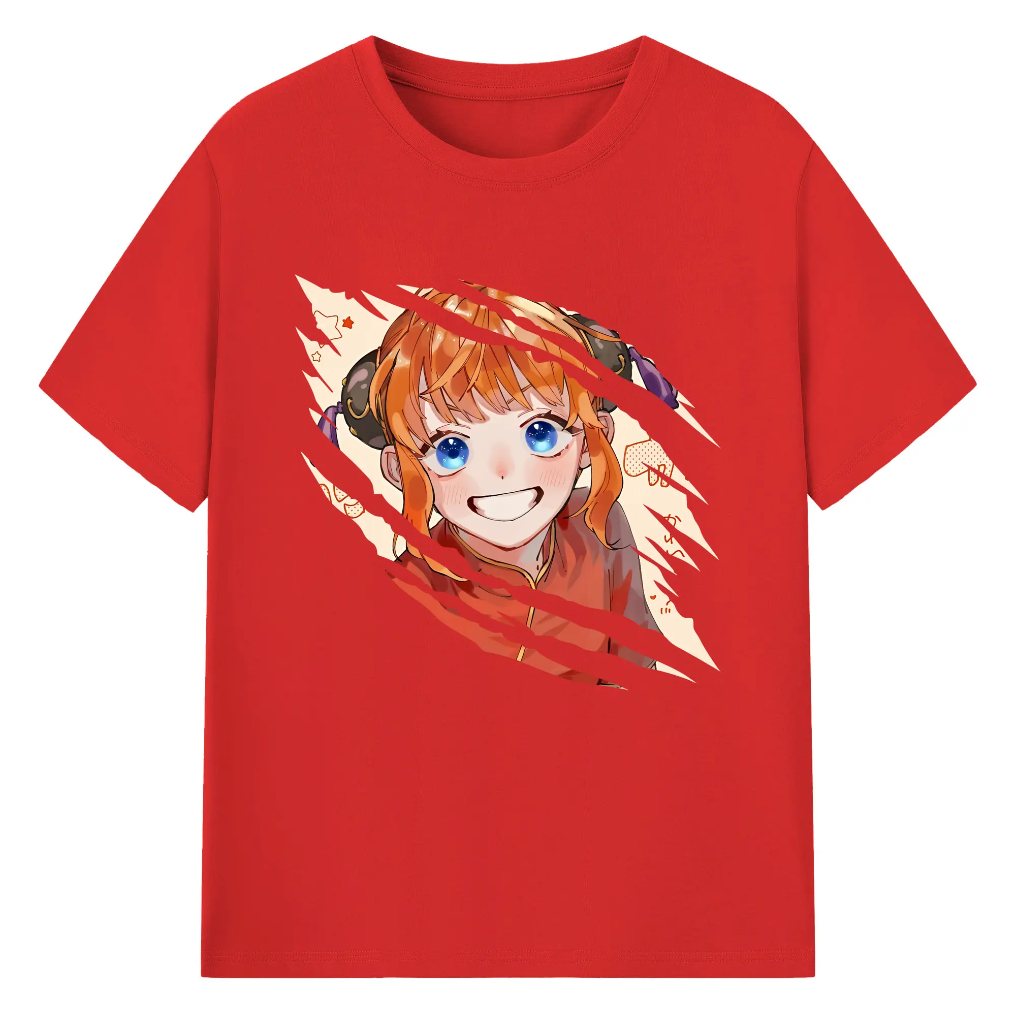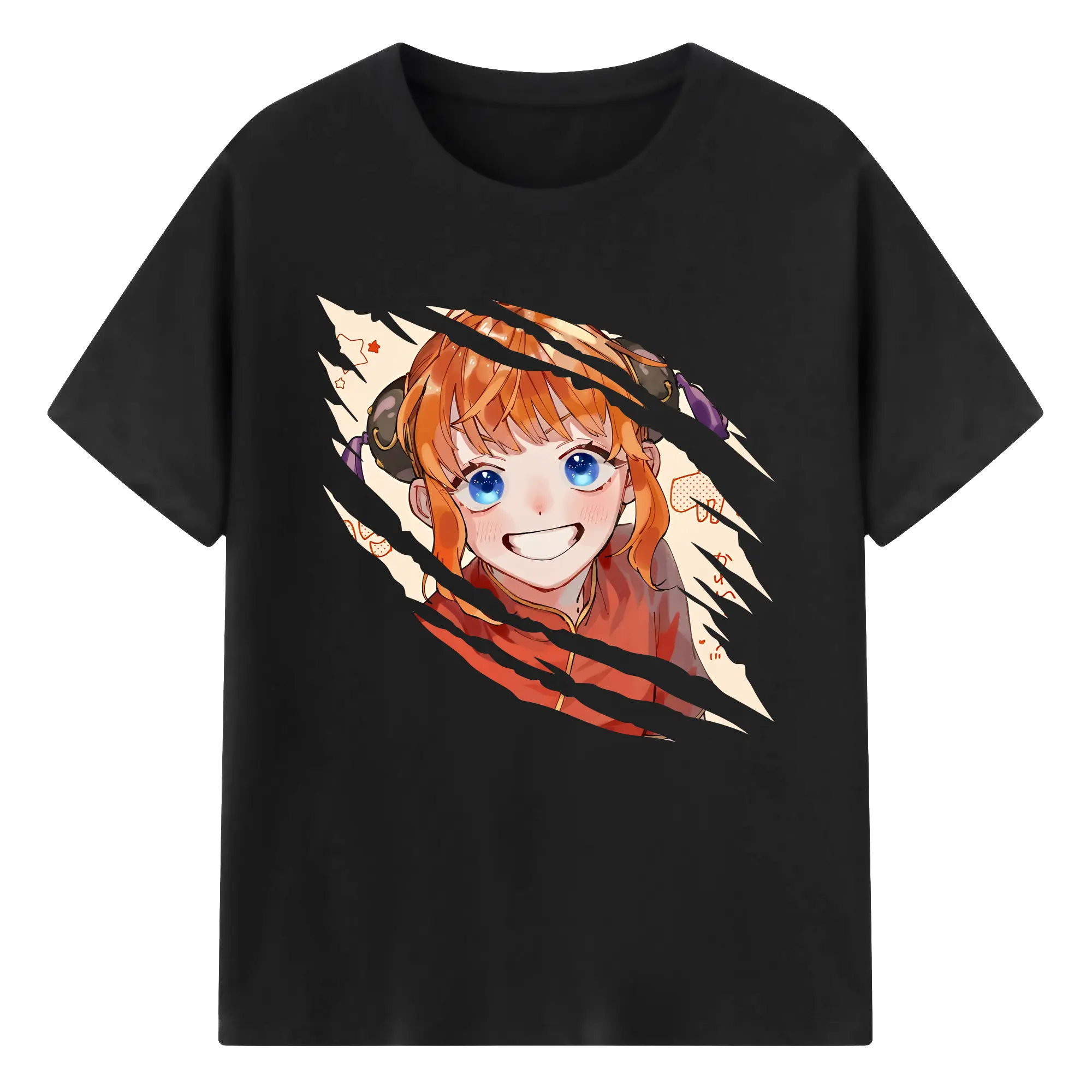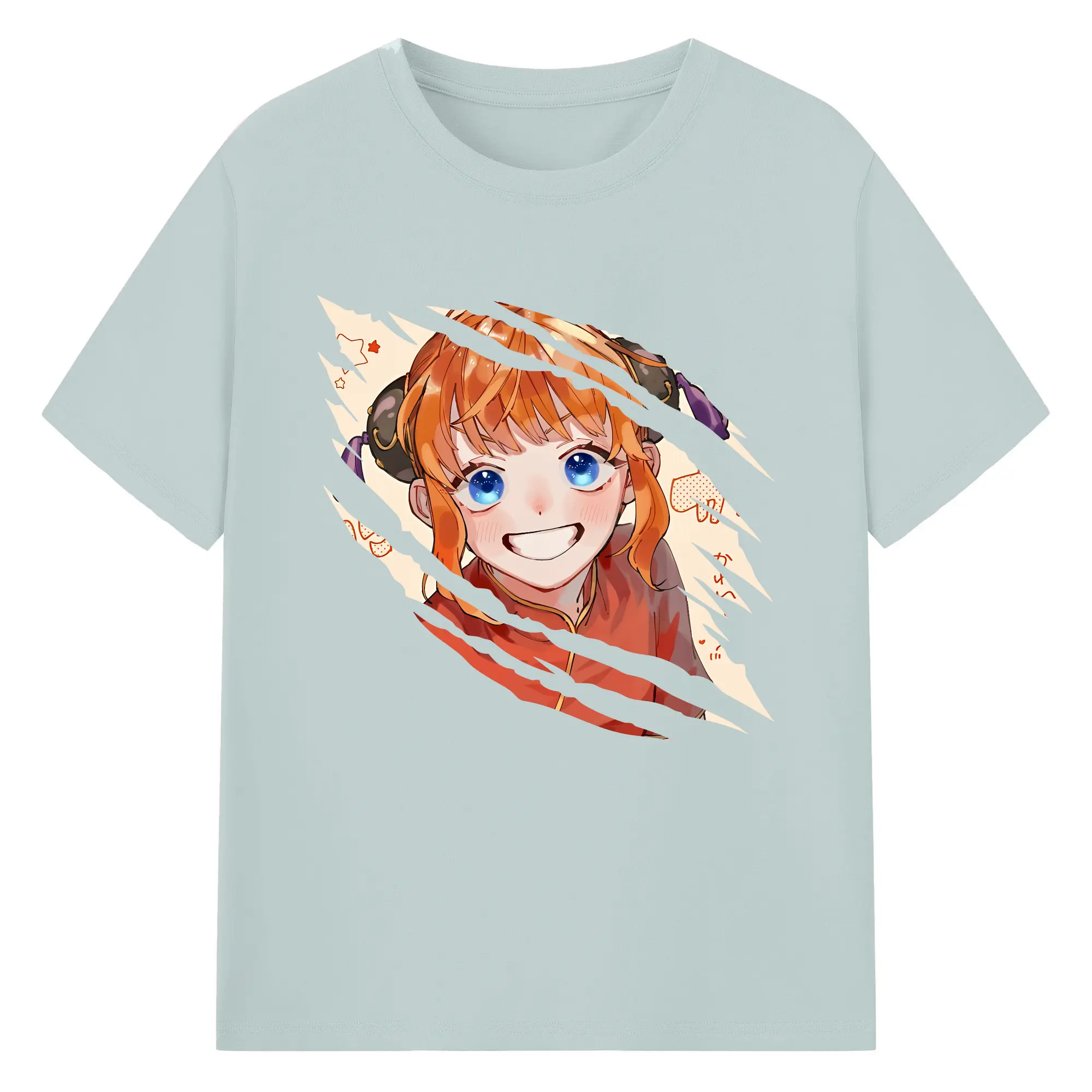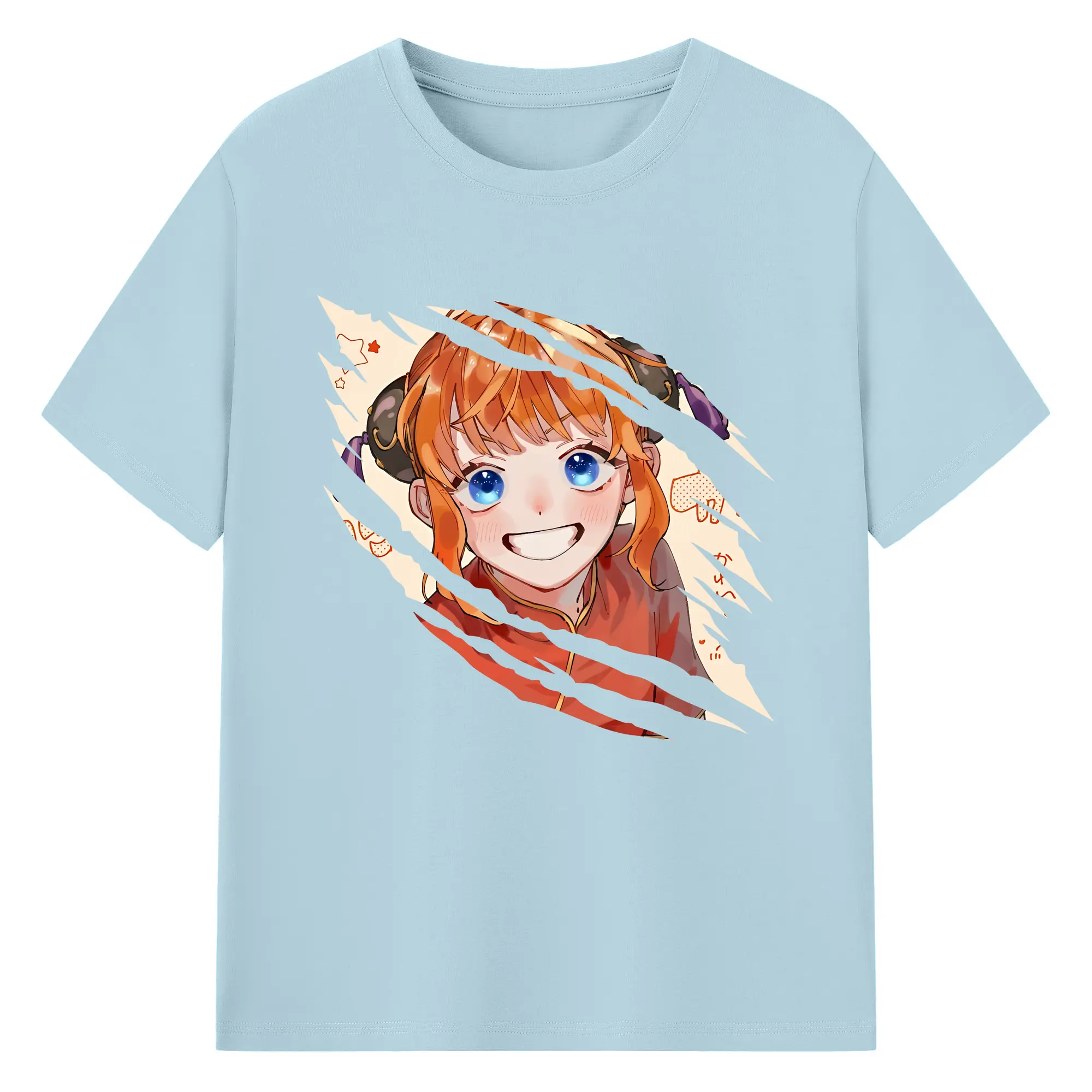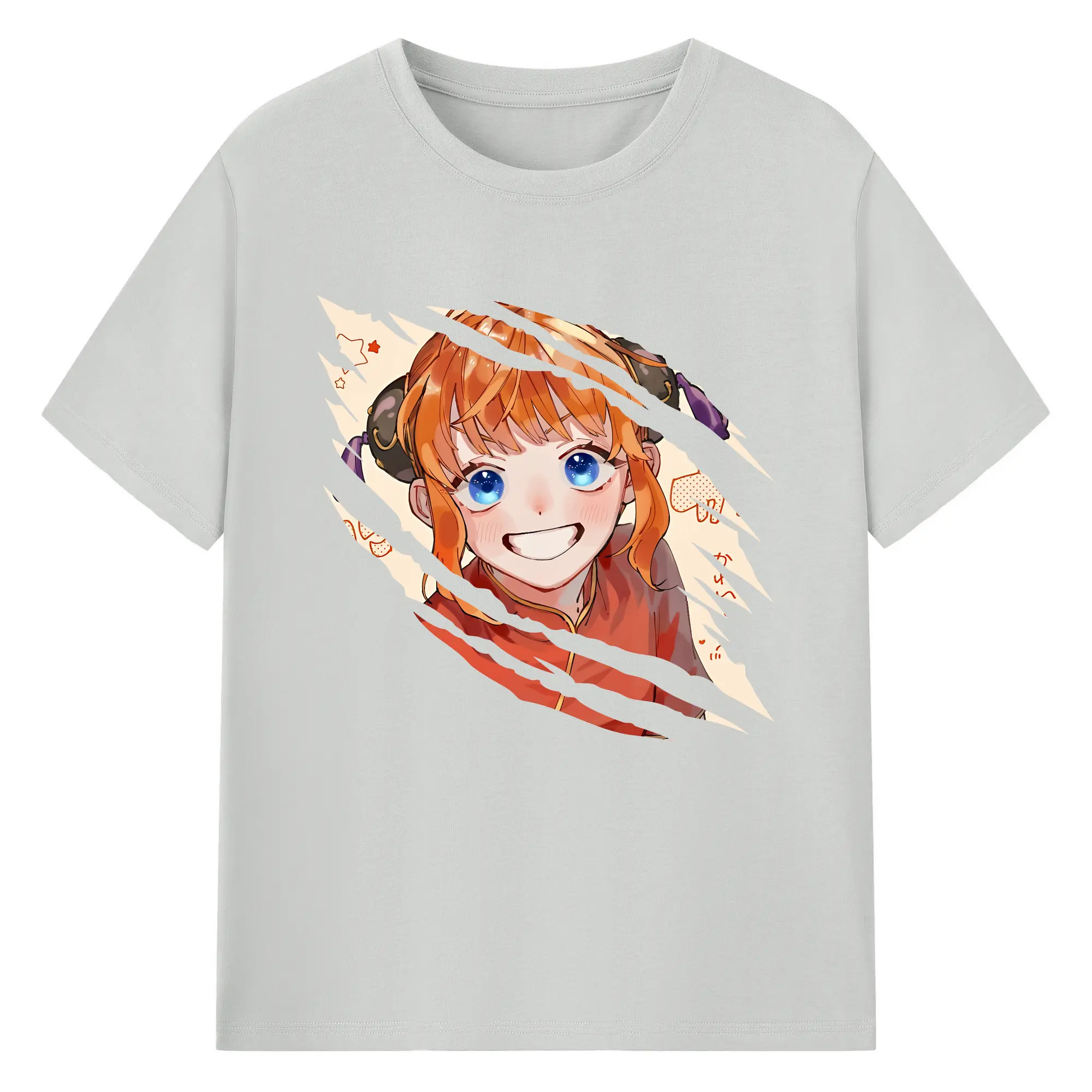 銀魂 グッズ 神楽 - 綿100% 半袖Tシャツ ・ バックプリント ・ 快適 通気性 ・ 日常使い 散歩 スポーツ用