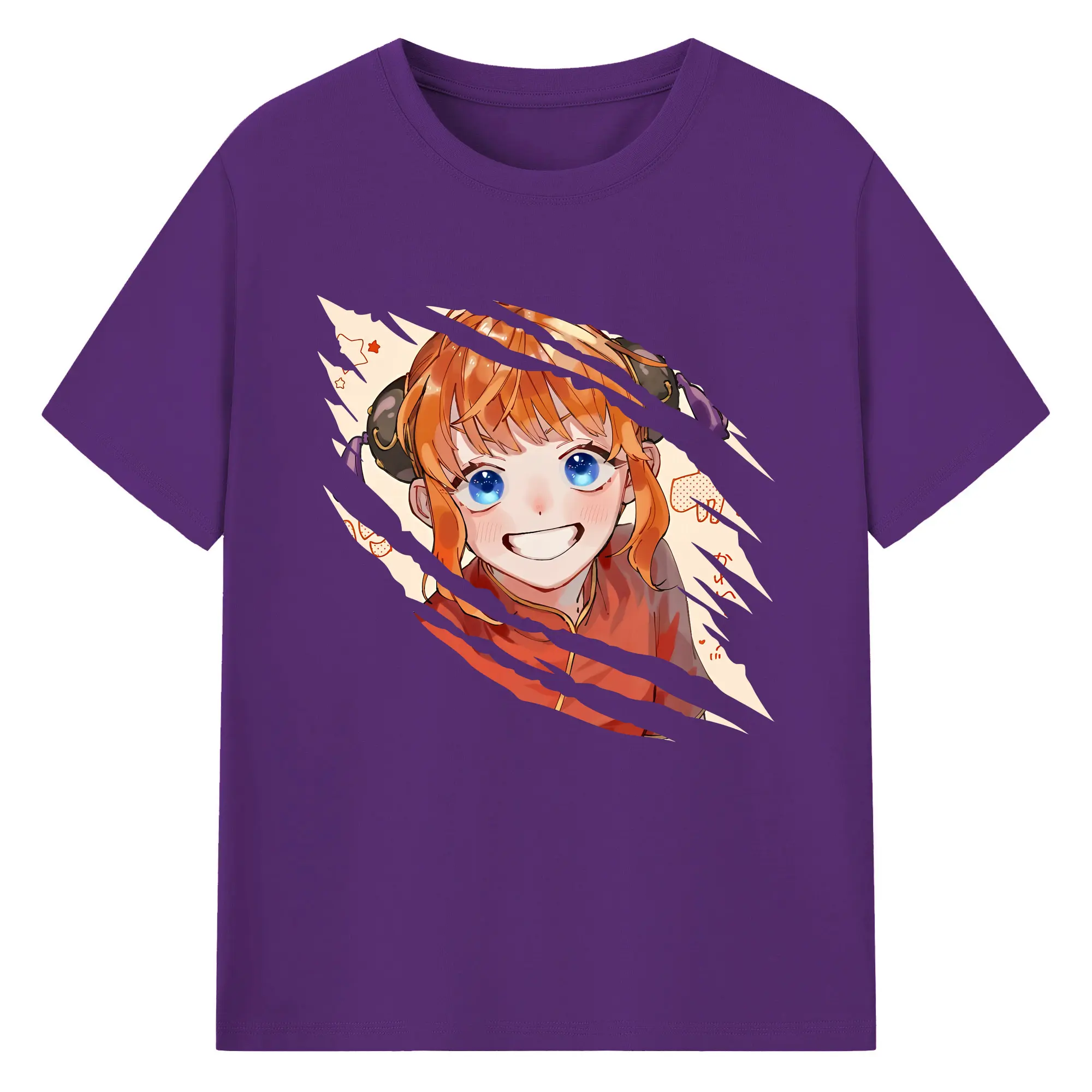 銀魂 グッズ 神楽 - 綿100% キッズTシャツ ・ フロントプリント ・ 快適 通気性 ・ スポーツ カジュアル 散歩用