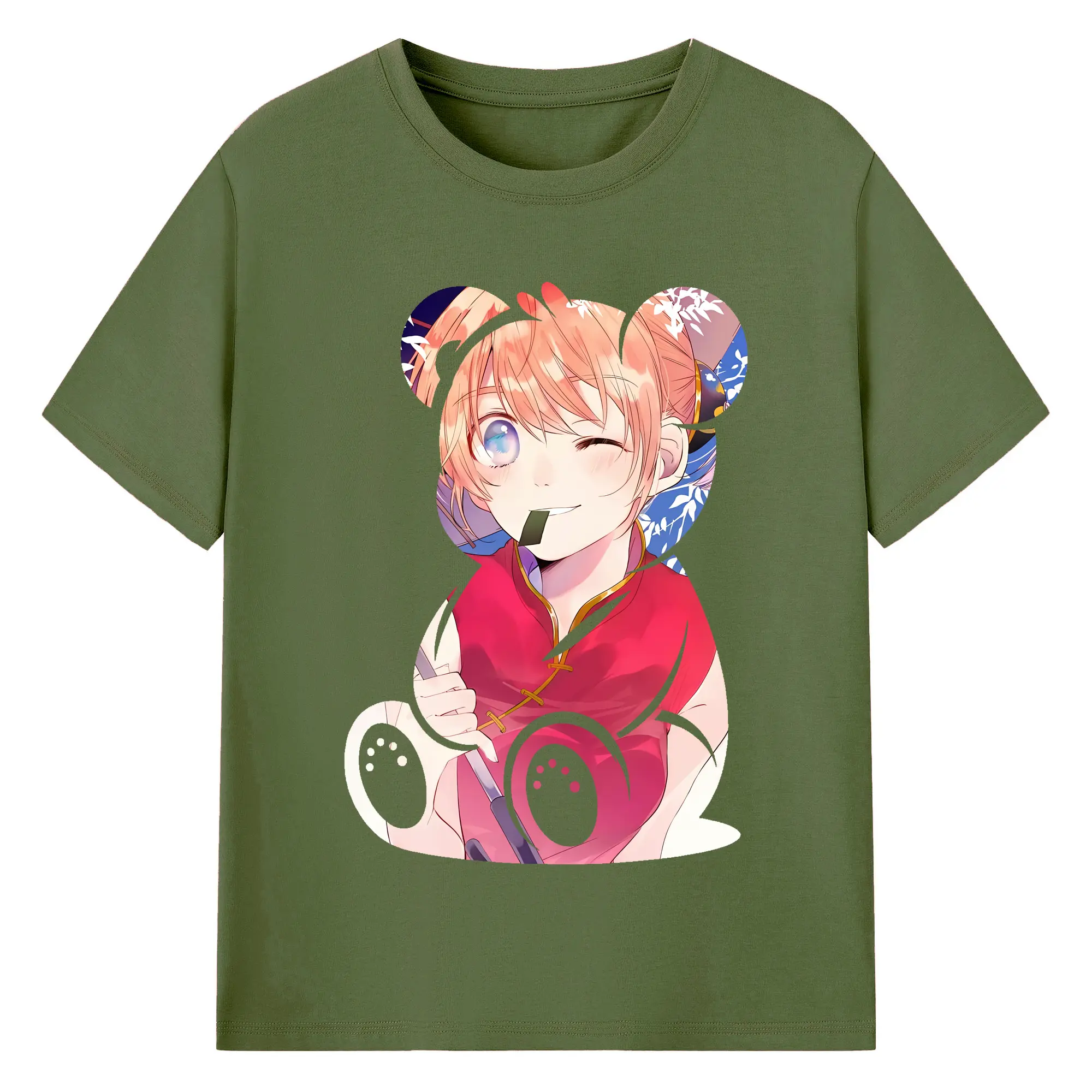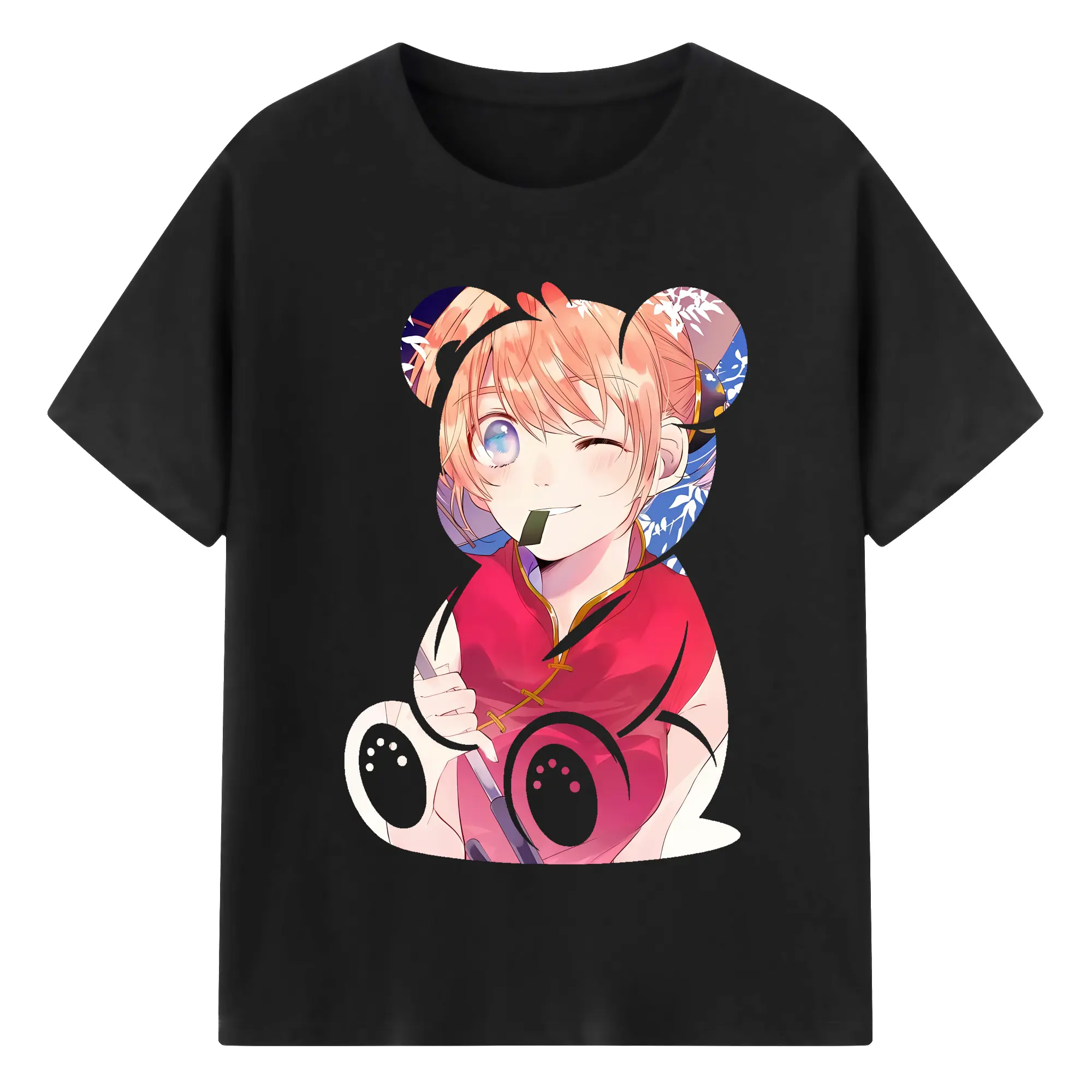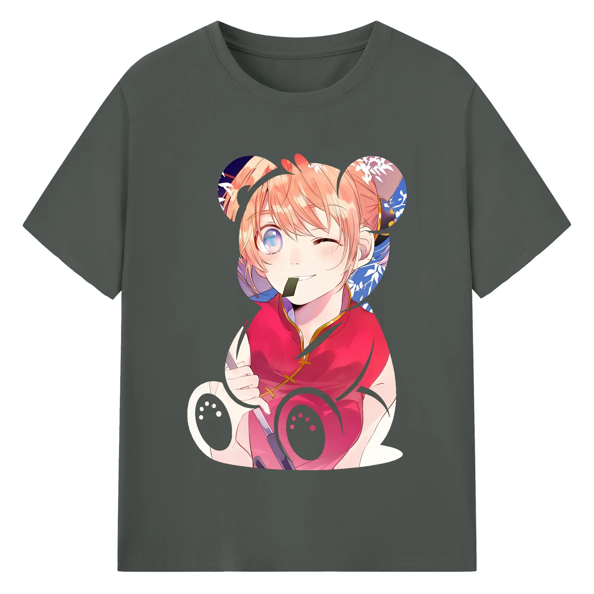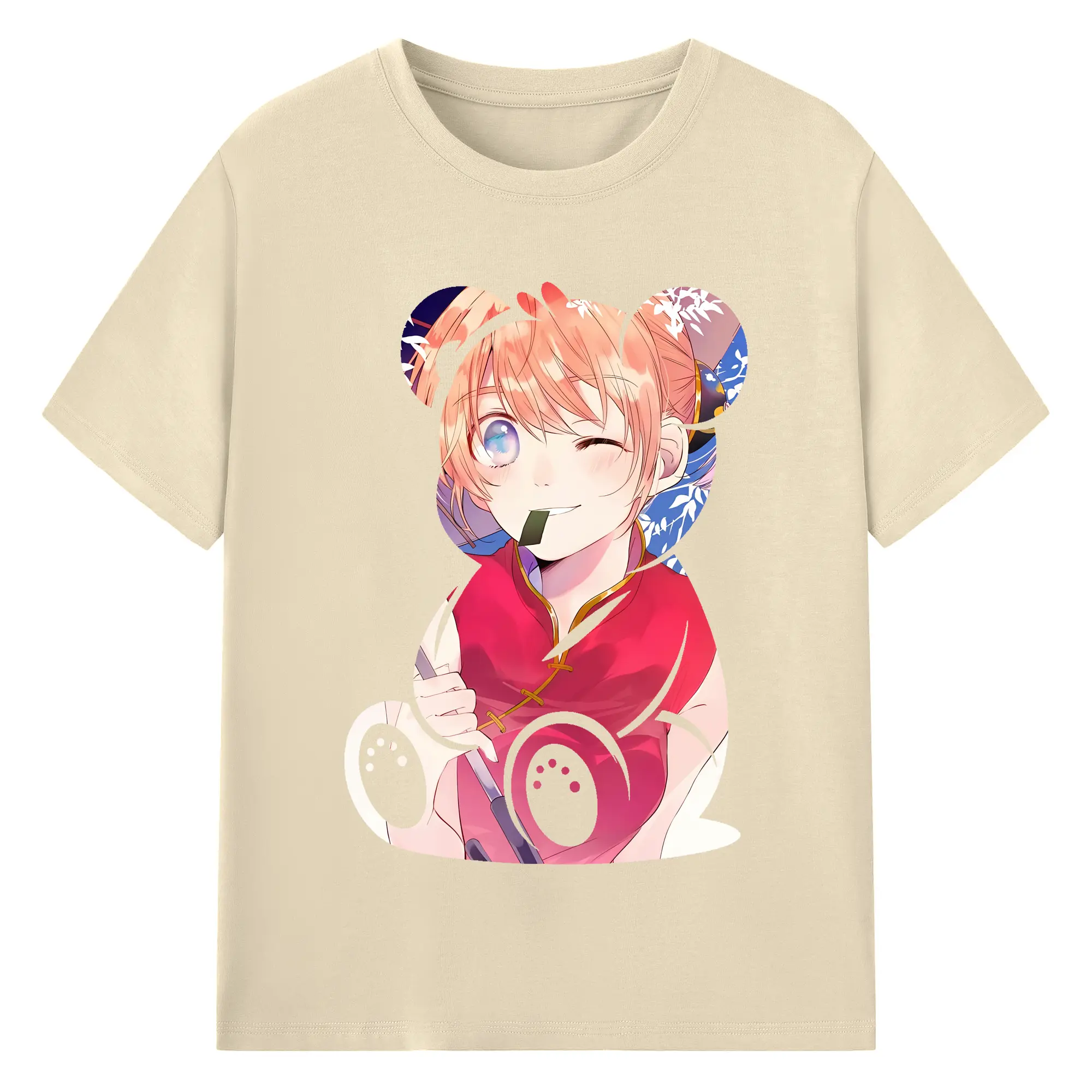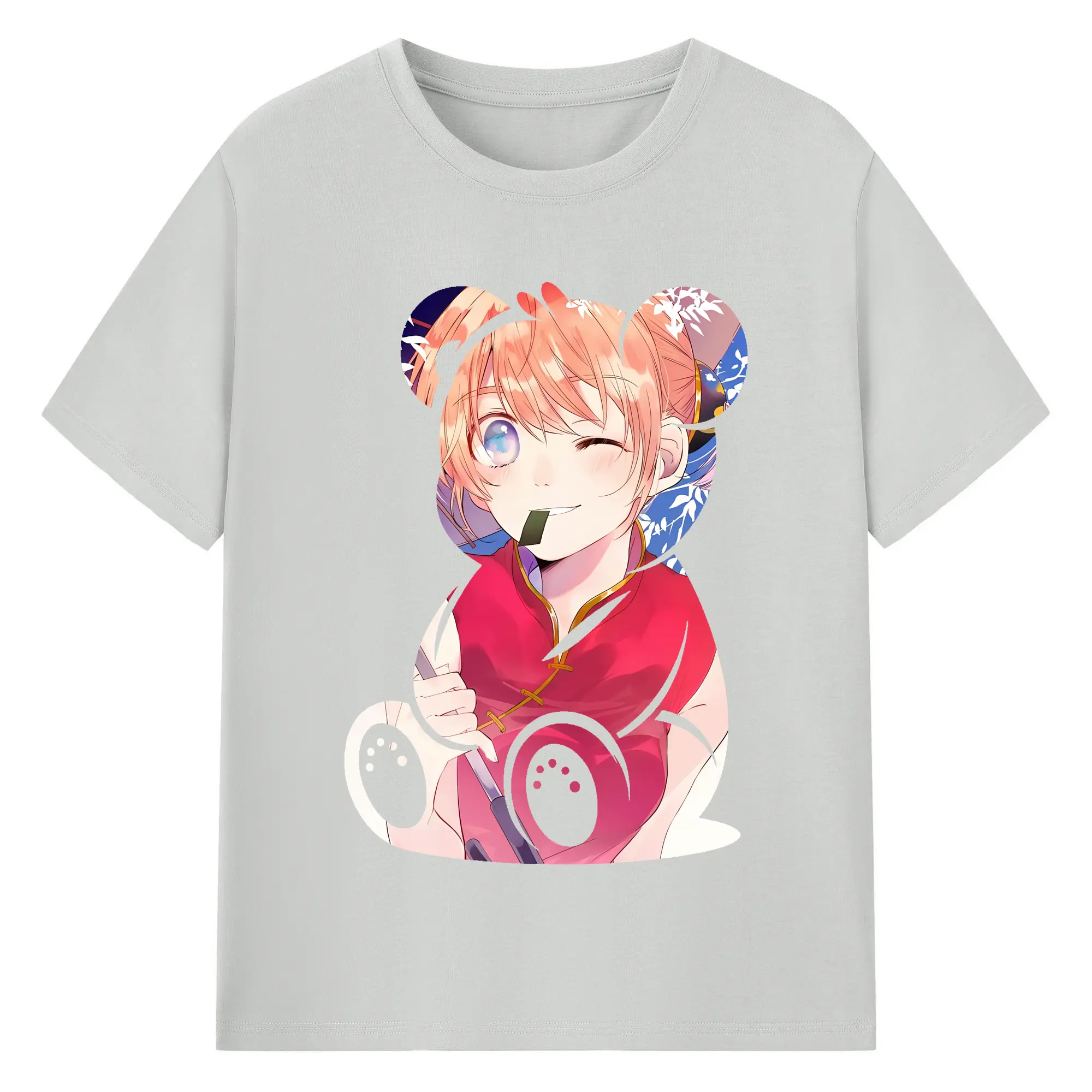 銀魂 グッズ 神楽 - 綿100% 半袖Tシャツ ・ バックプリント ・ 快適 通気性 ・ 日常使い 散歩 スポーツ用