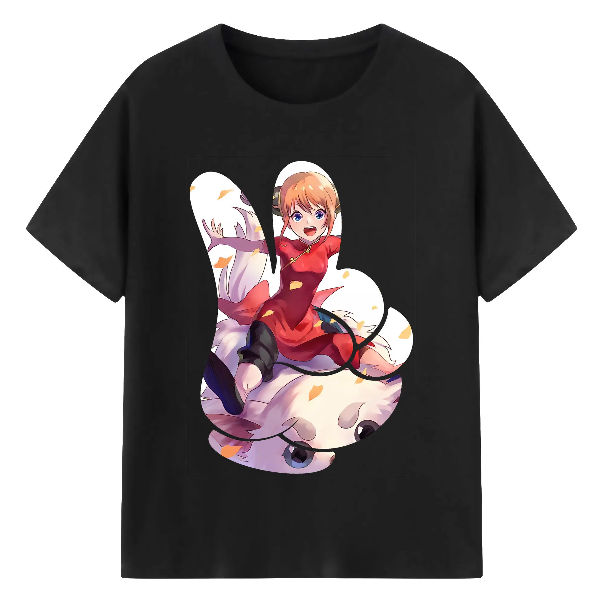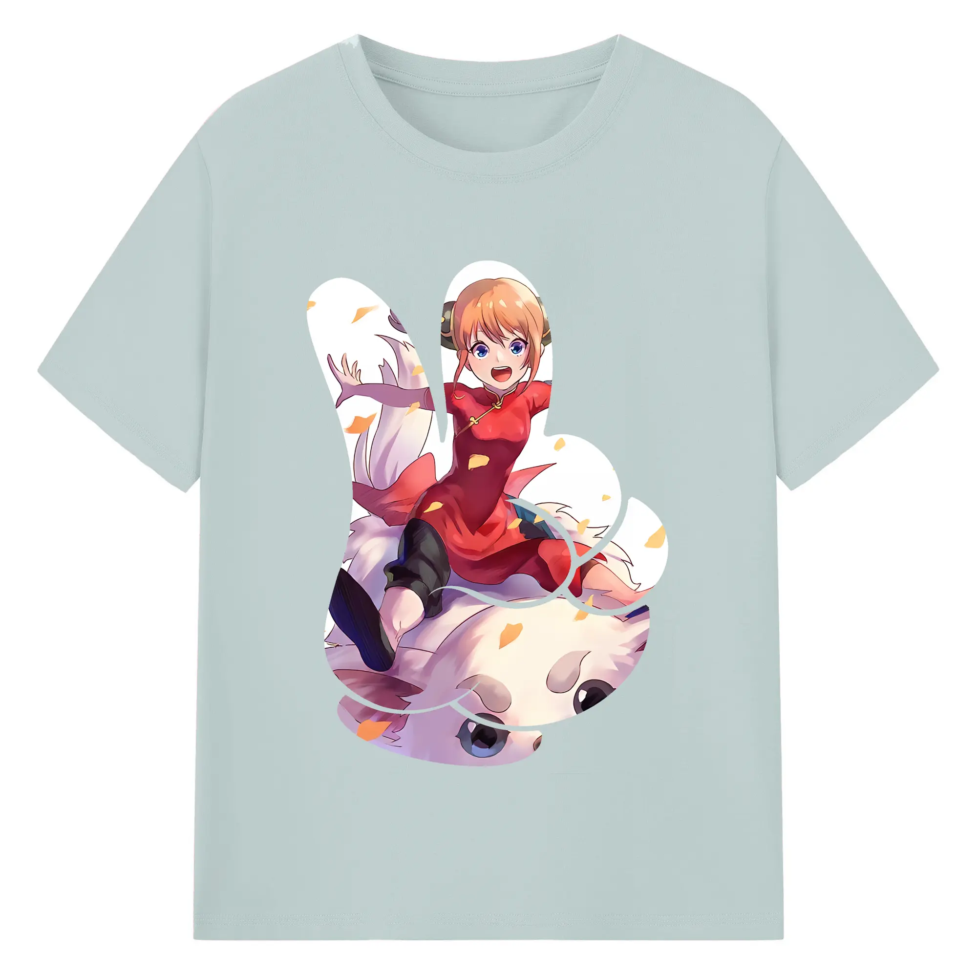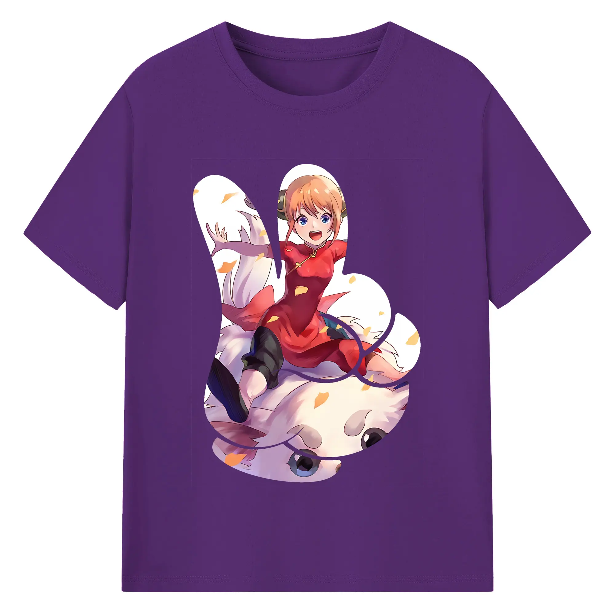 銀魂 グッズ 神楽 - 綿100% 半袖Tシャツ ・ バックプリント ・ 快適 通気性 ・ 日常使い 散歩 スポーツ用
