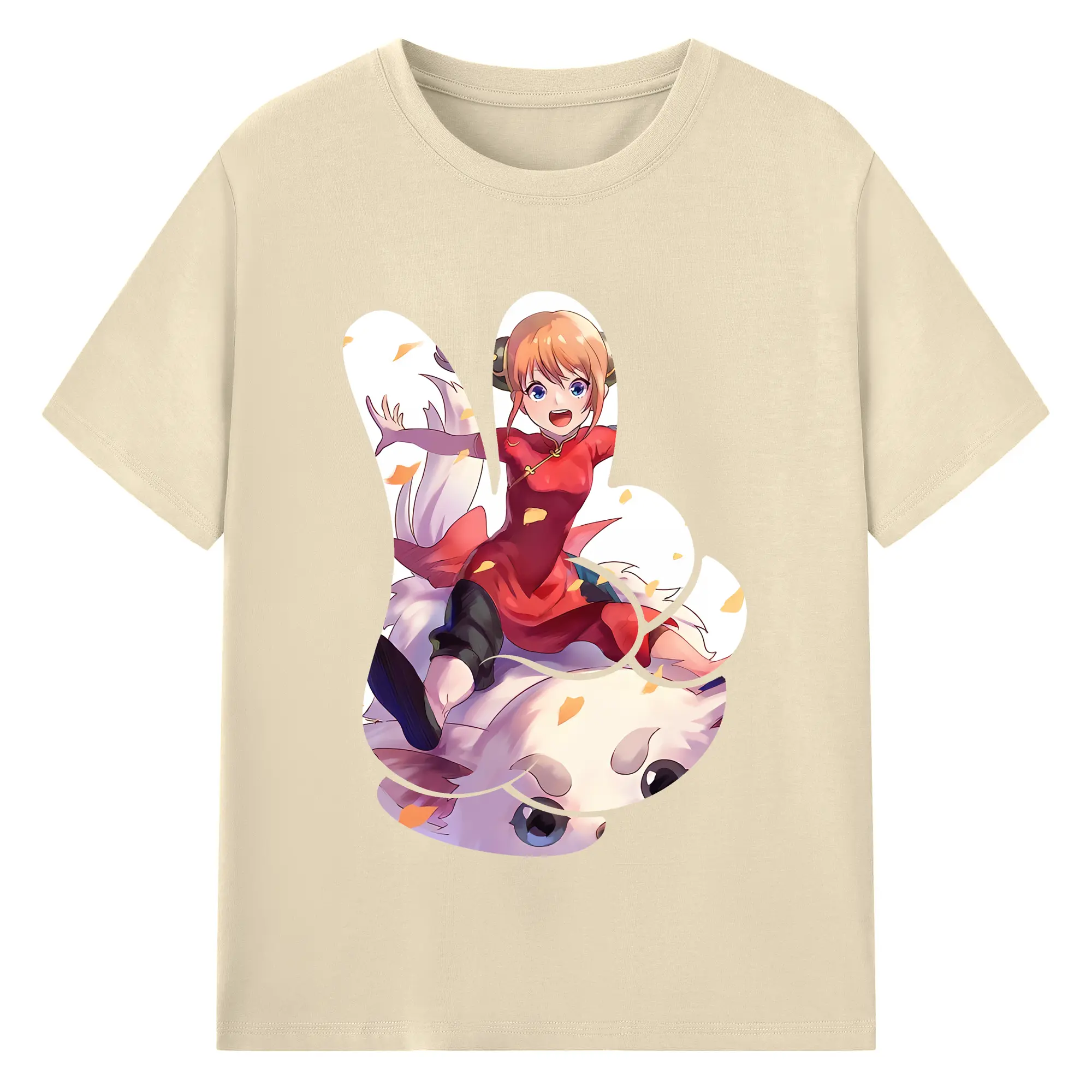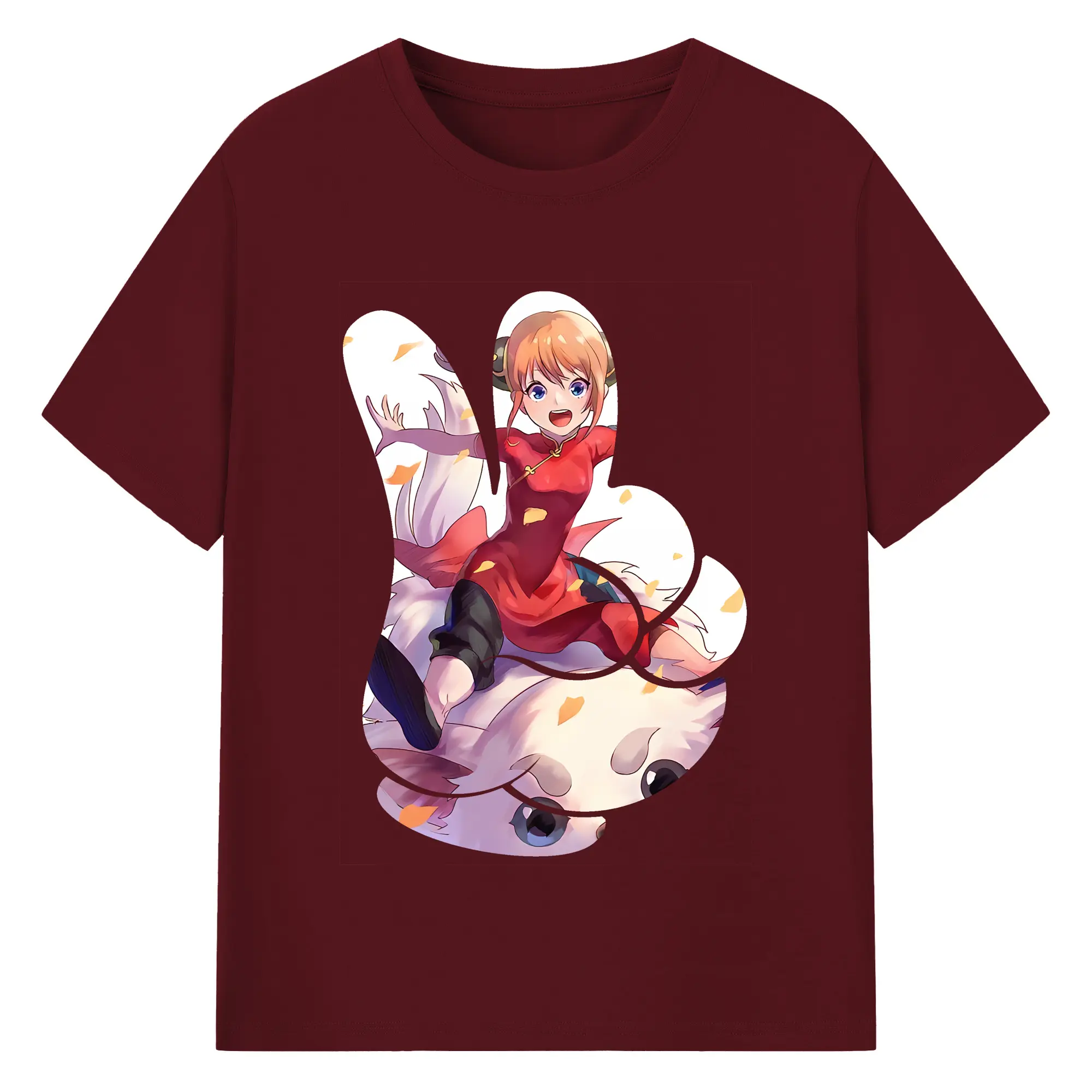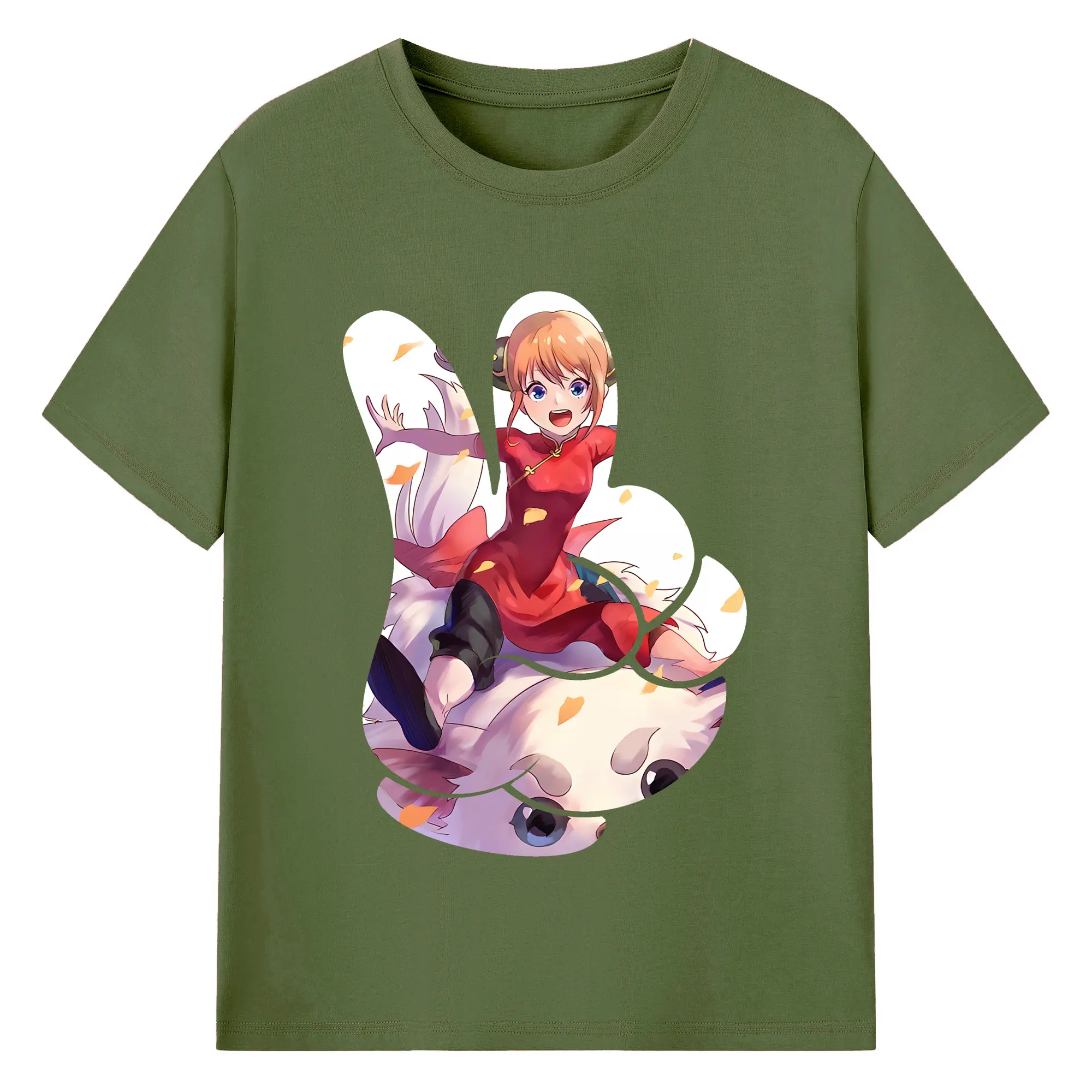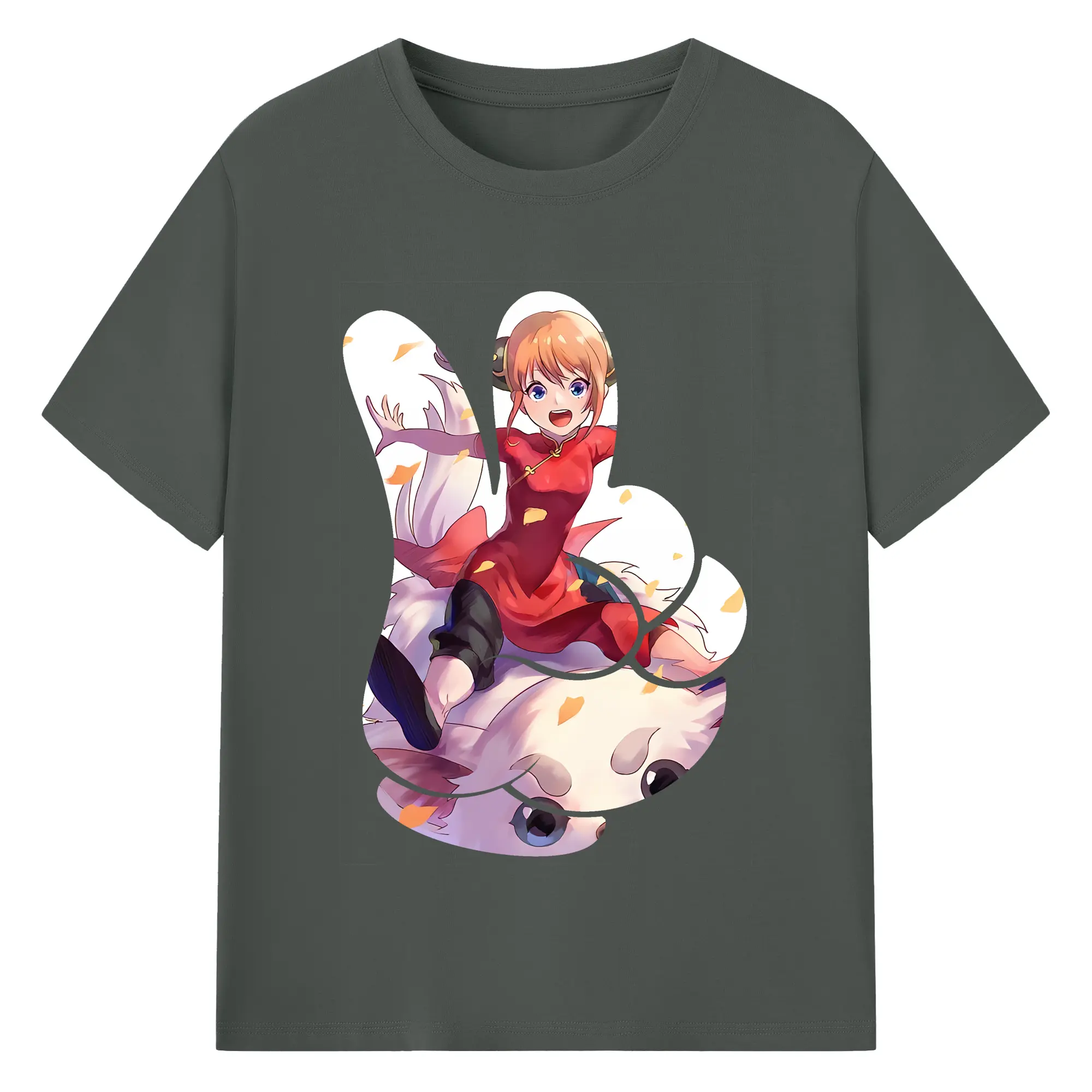 銀魂 グッズ 神楽 - 綿100% 半袖Tシャツ ・ バックプリント ・ 快適 通気性 ・ 日常使い 散歩 スポーツ用