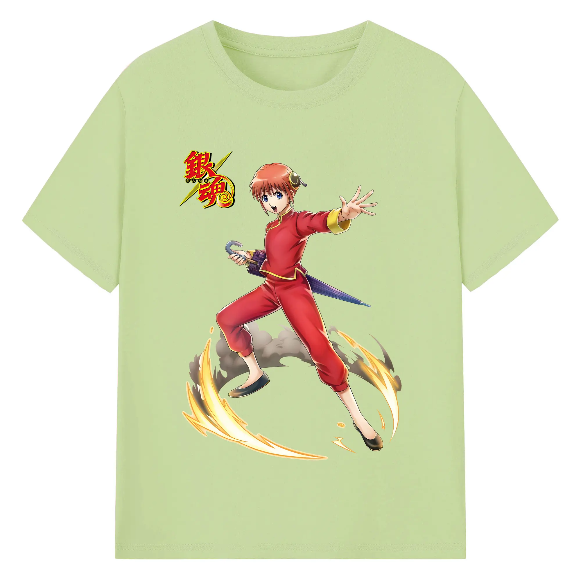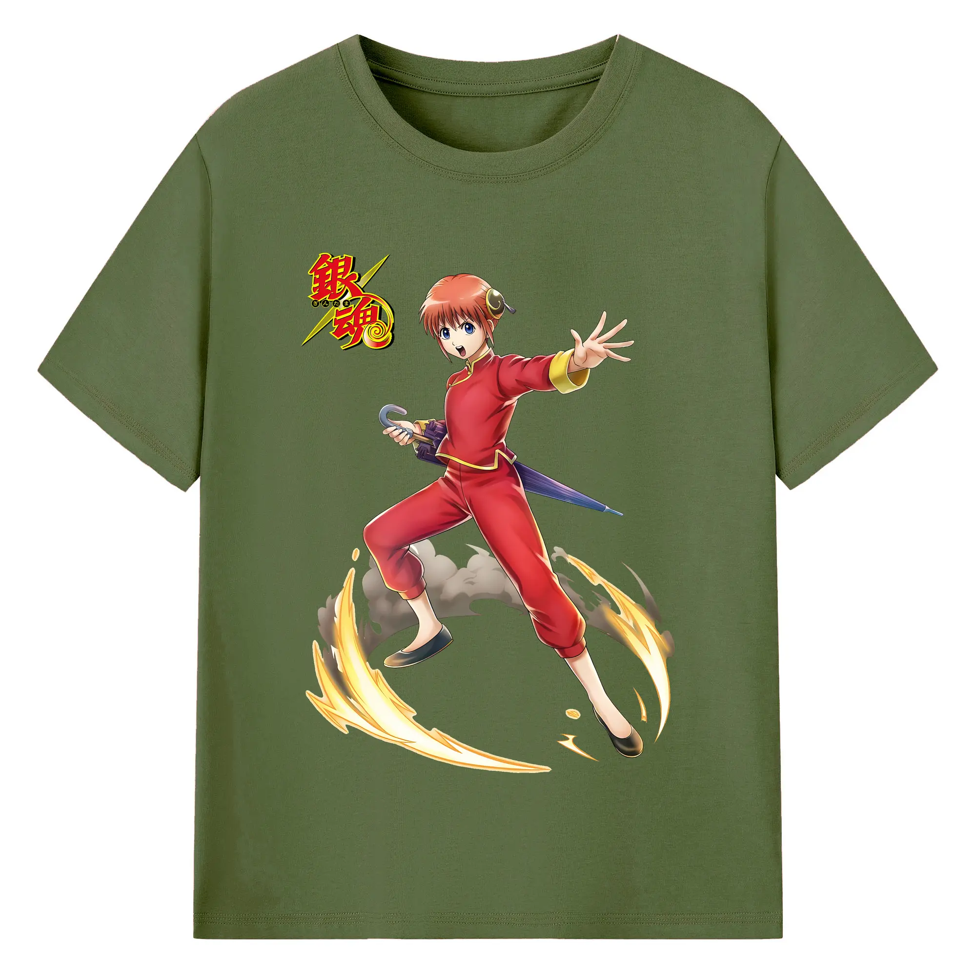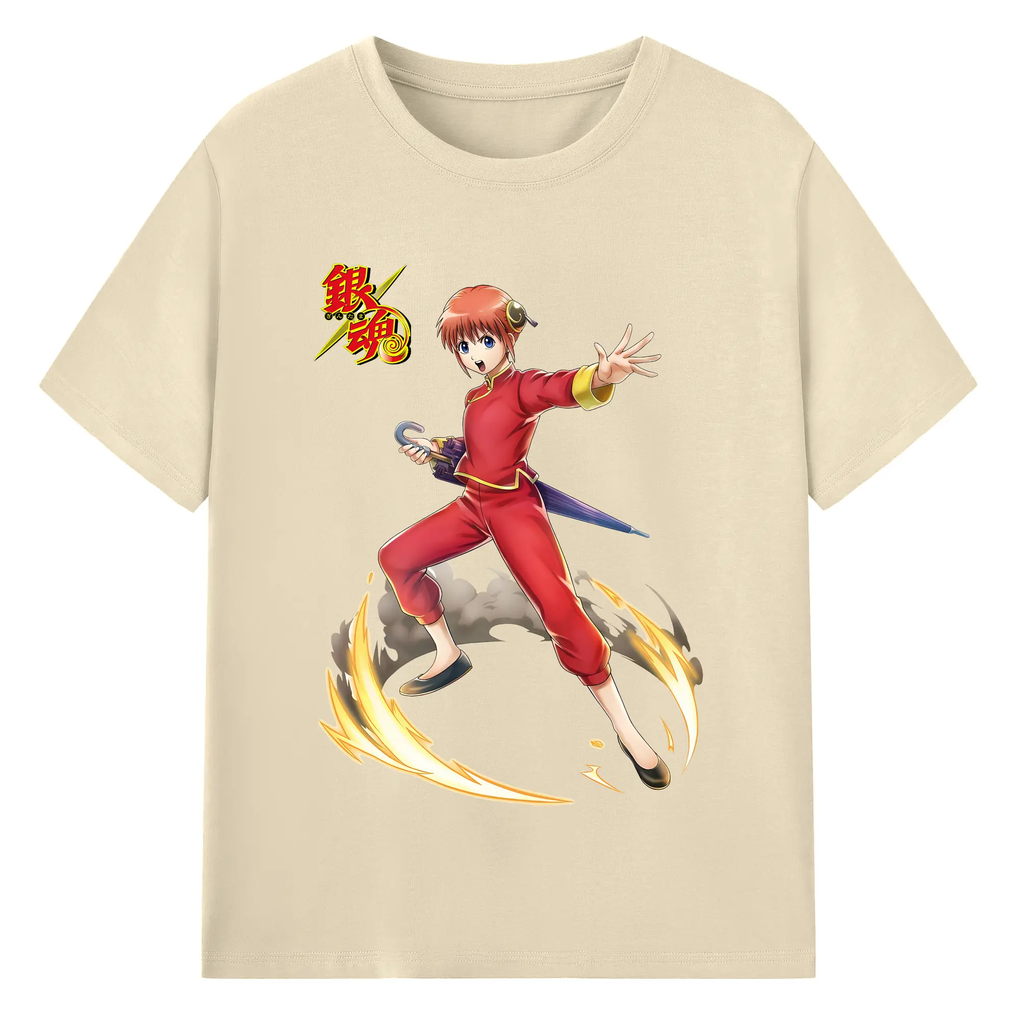 銀魂 グッズ 神楽 - 綿100% ヴィンテージ風 半袖Tシャツ ・ フロントプリント ・ 柔らか肌触り ・ 通気性 快適 ・ スポーツ カジュアル 外出用