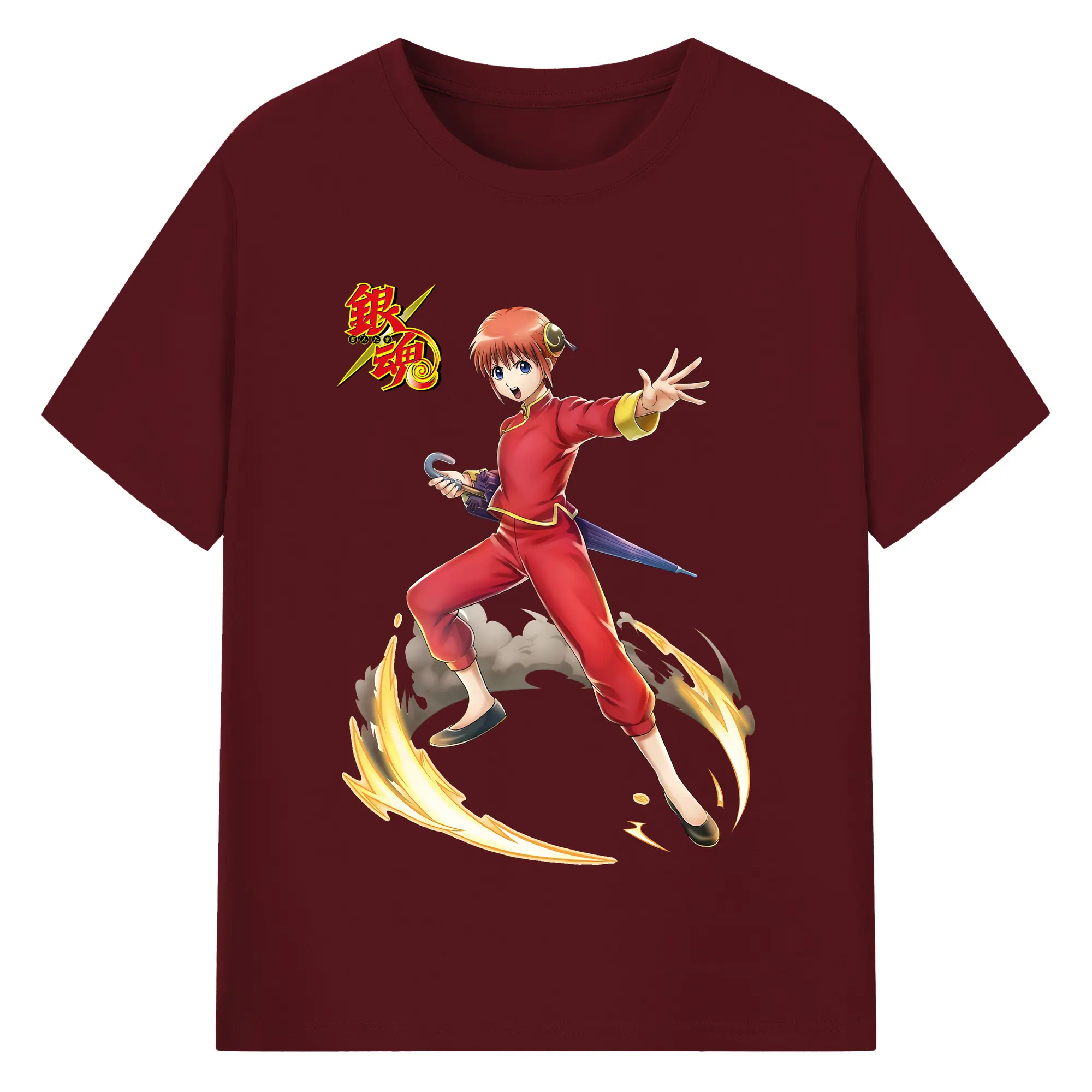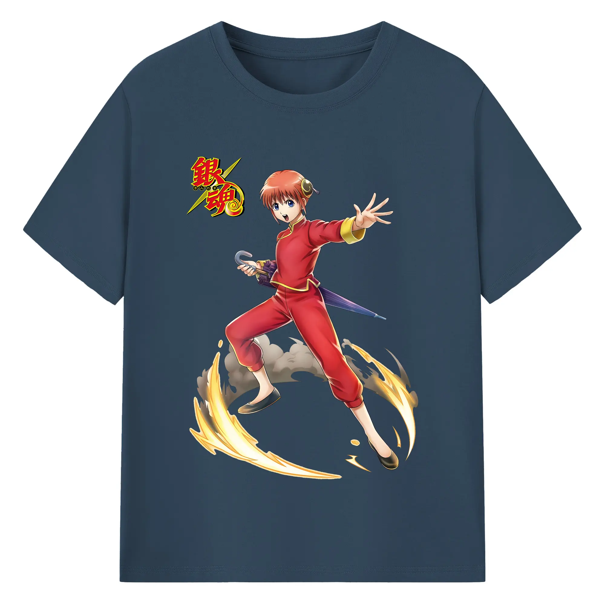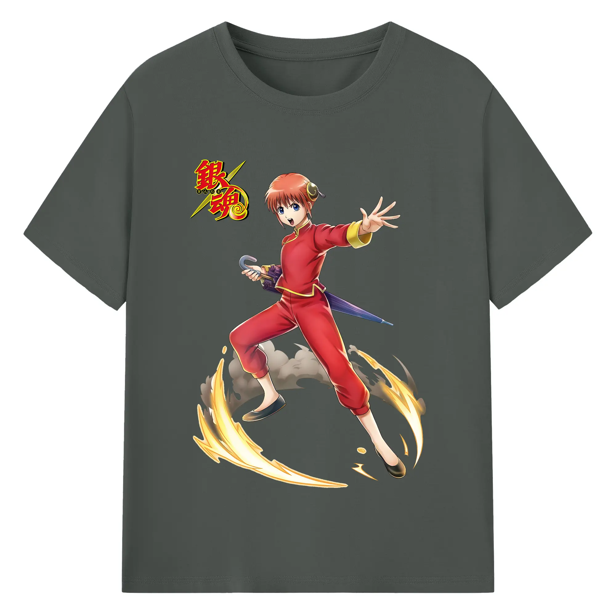 銀魂 グッズ 神楽 - 綿100% ヴィンテージ風 半袖Tシャツ ・ フロントプリント ・ 柔らか肌触り ・ 通気性 快適 ・ スポーツ カジュアル 外出用