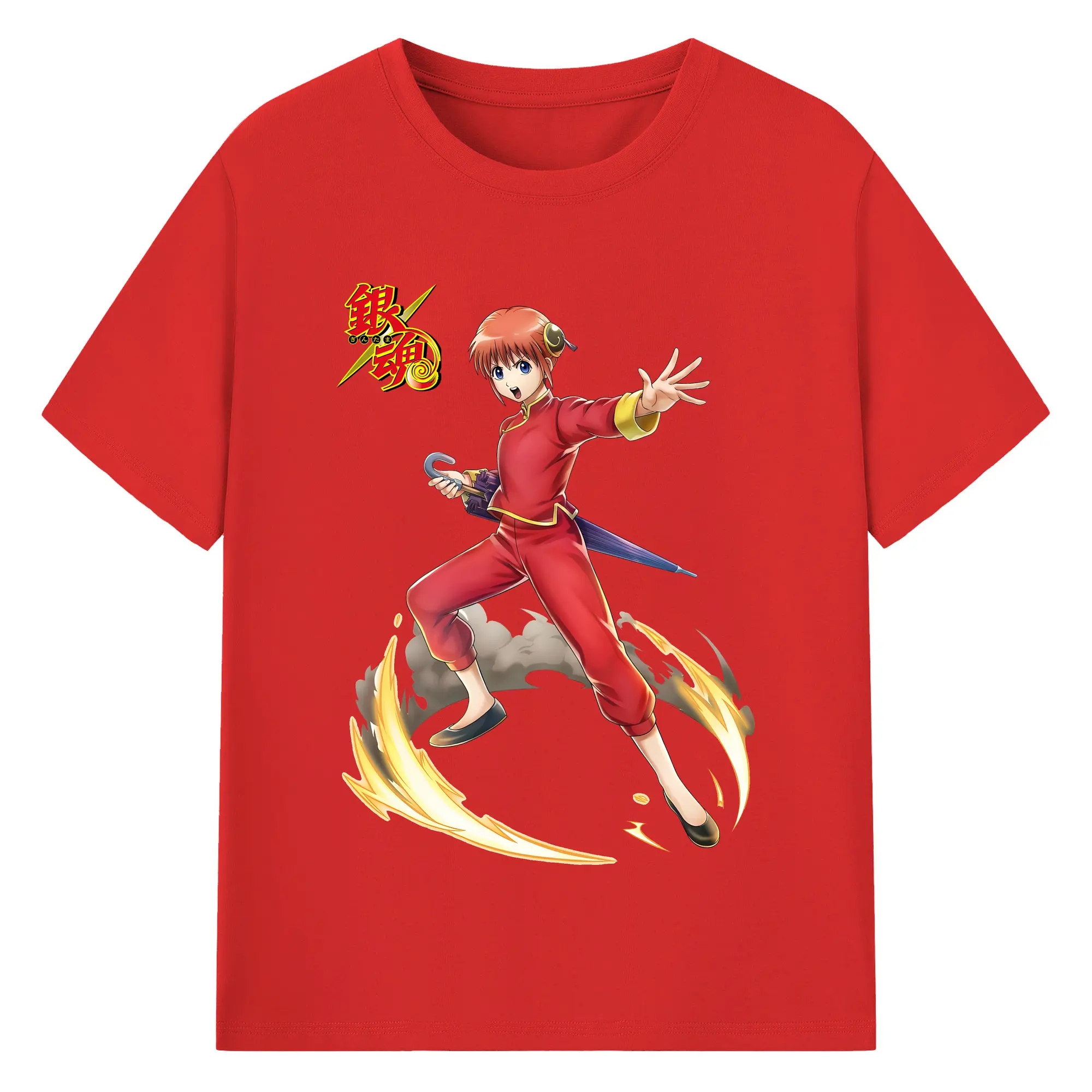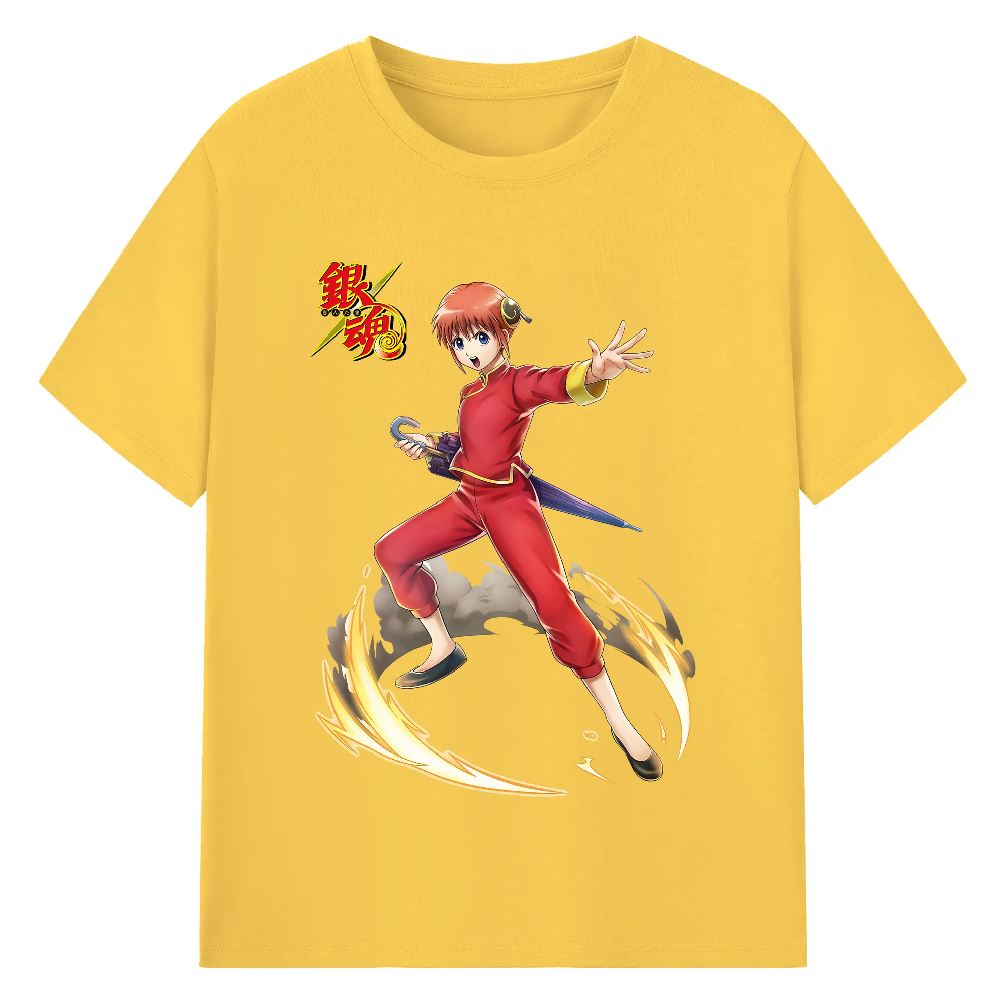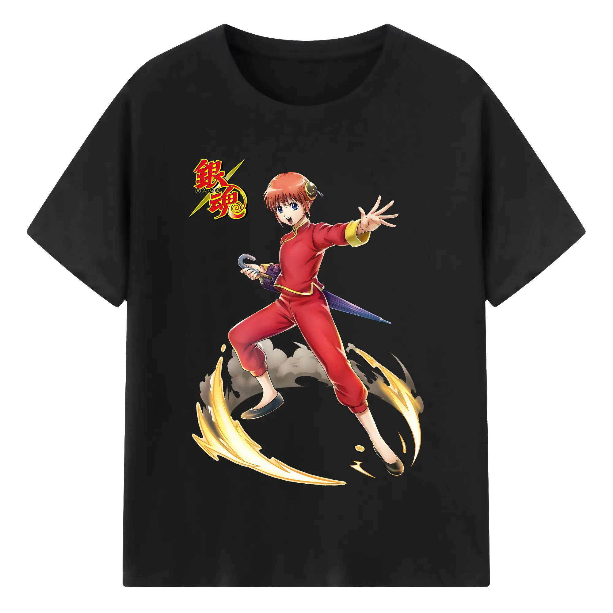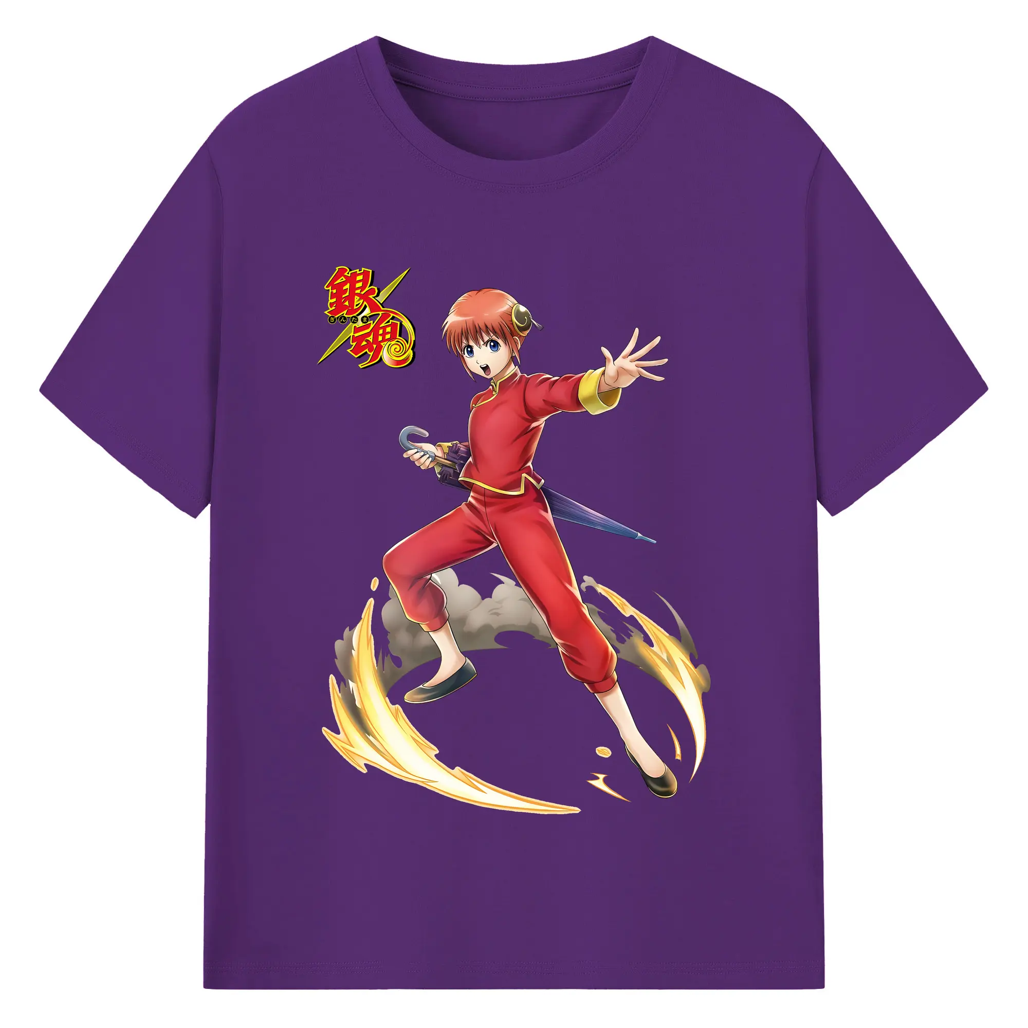 銀魂 グッズ 神楽 - 綿100% 半袖Tシャツ ・ バックプリント ・ 快適 通気性 ・ 日常使い 散歩 スポーツ用