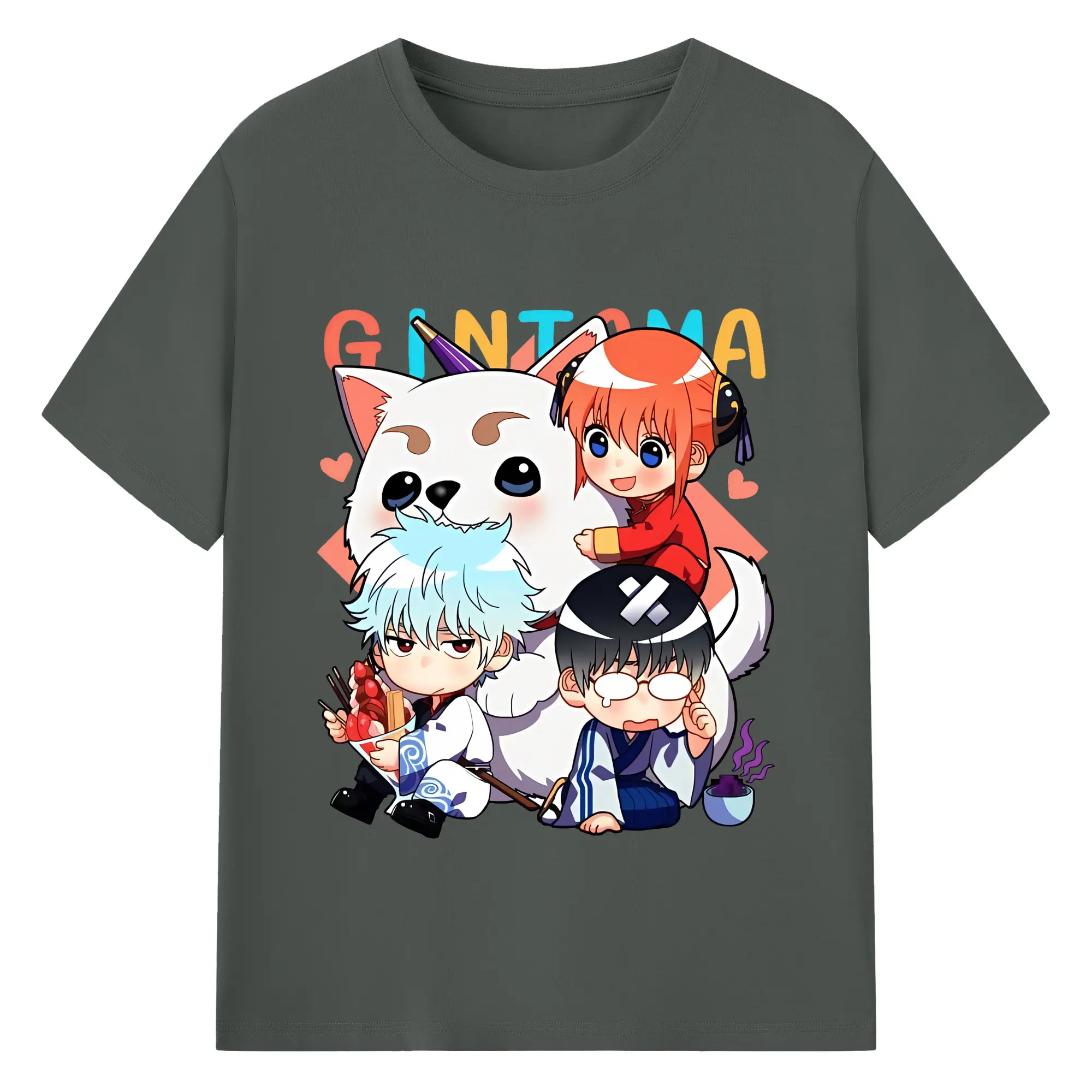 銀魂 グッズ 神楽 - 綿100% 半袖Tシャツ ・ バックプリント ・ 快適 通気性 ・ 日常使い 散歩 スポーツ用