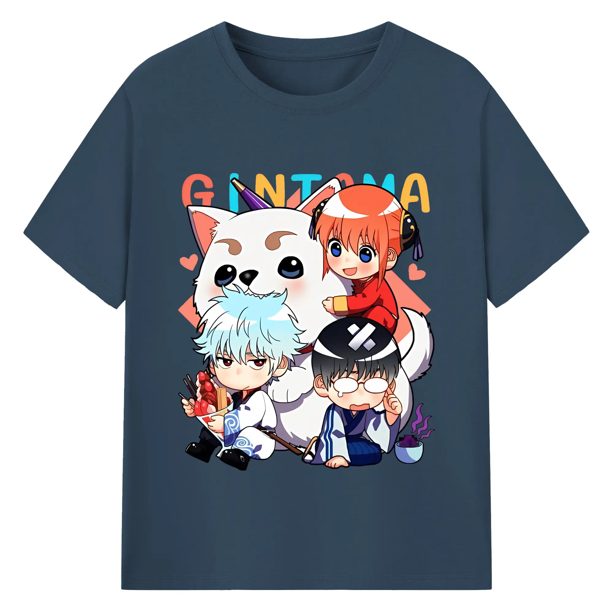 銀魂 グッズ 神楽 - 綿100% ヴィンテージ風 半袖Tシャツ ・ フロントプリント ・ 柔らか肌触り ・ 通気性 快適 ・ スポーツ カジュアル 外出用