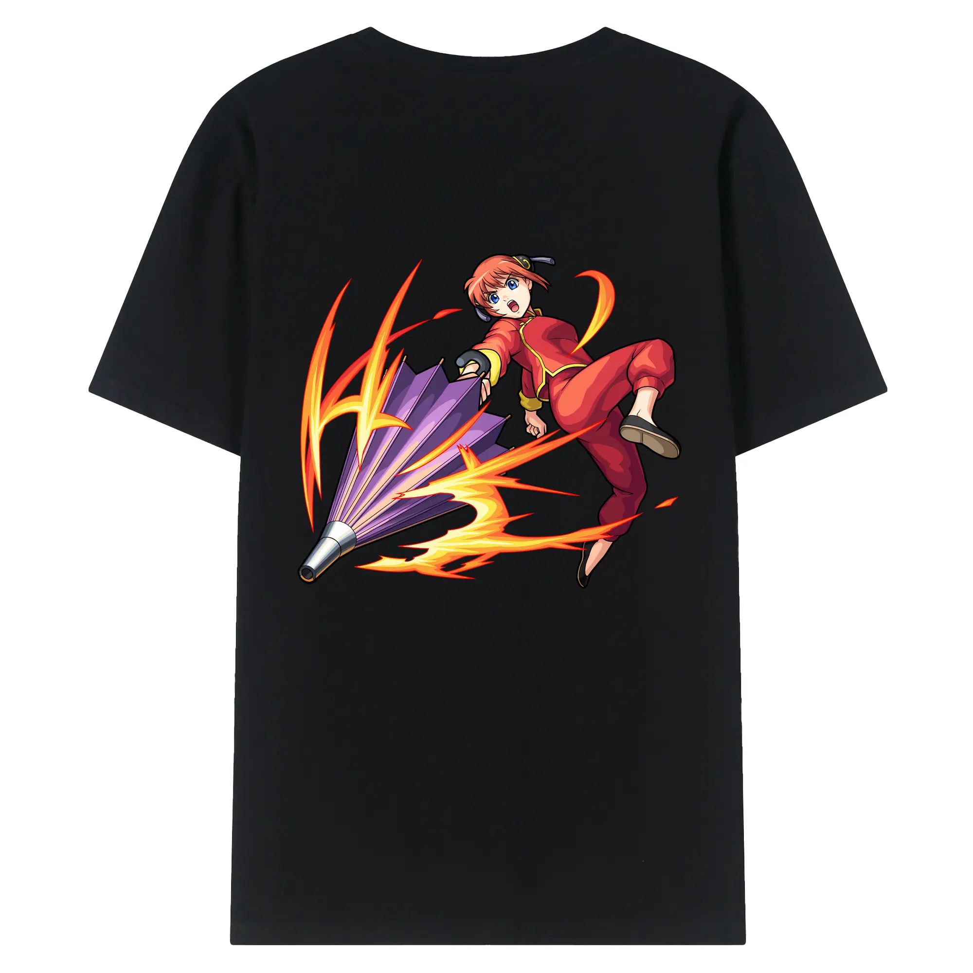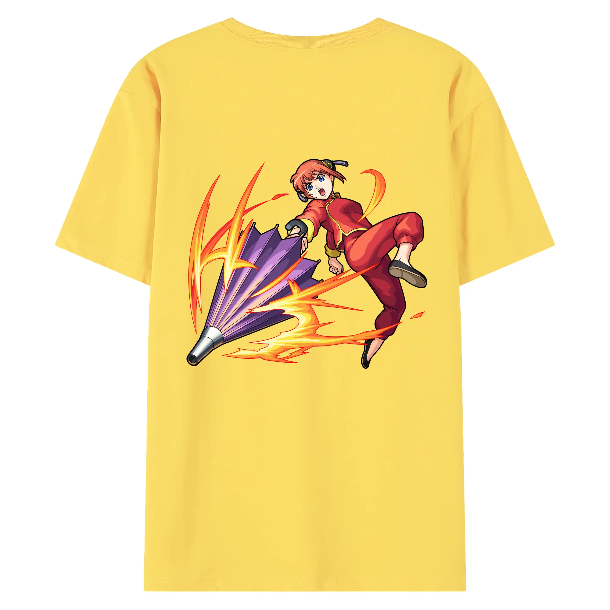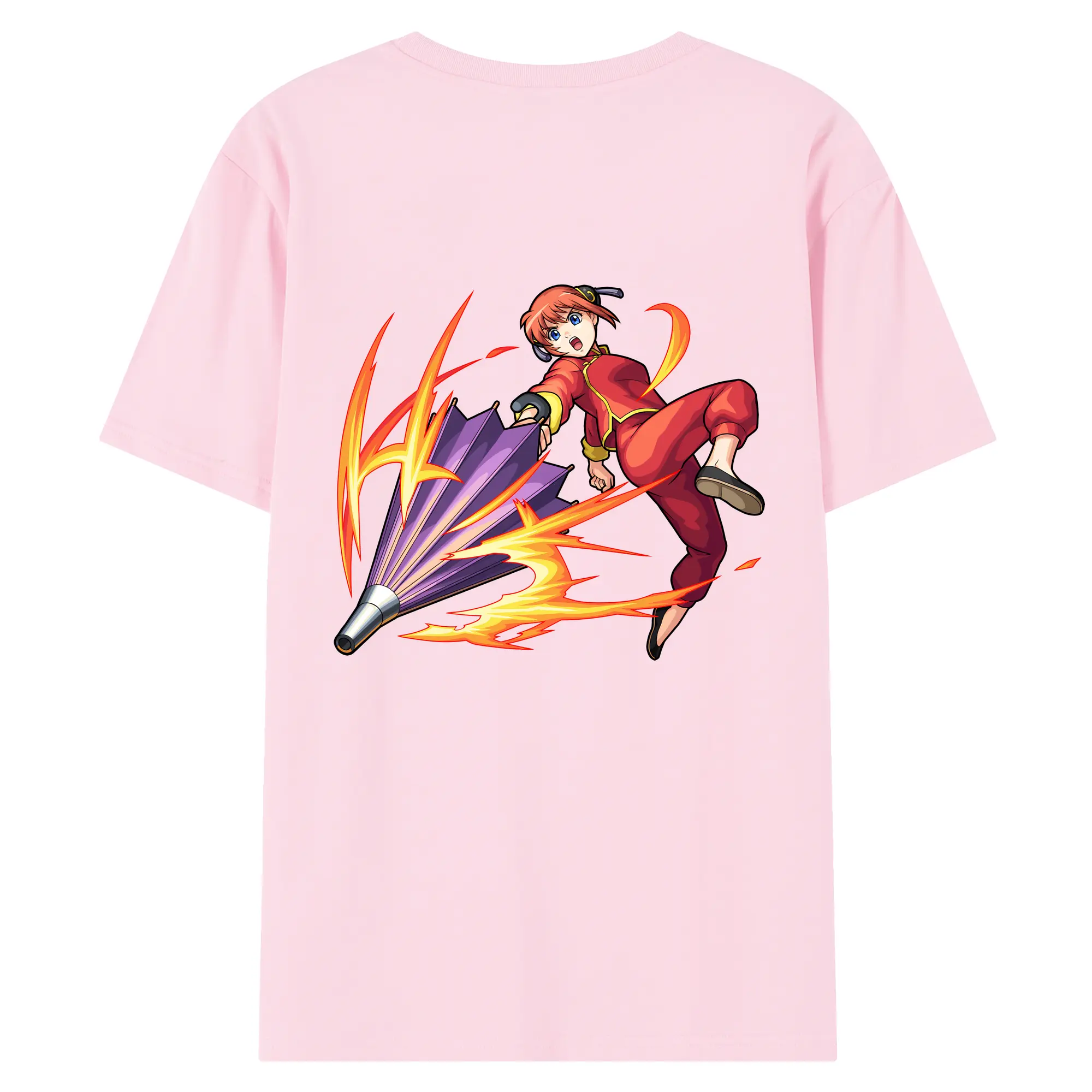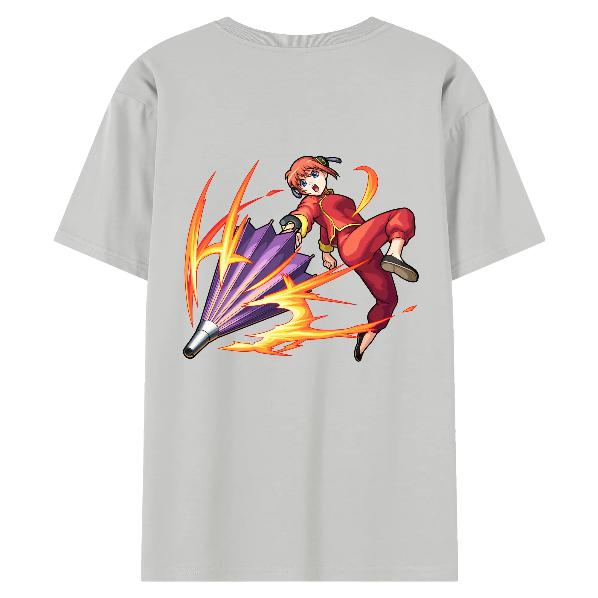 銀魂 グッズ 神楽 - 綿100% ヴィンテージ風 半袖Tシャツ ・ 背面プリント ・ 柔らか肌触り ・ 通気性 快適 ・ スポーツ カジュアル 外出用