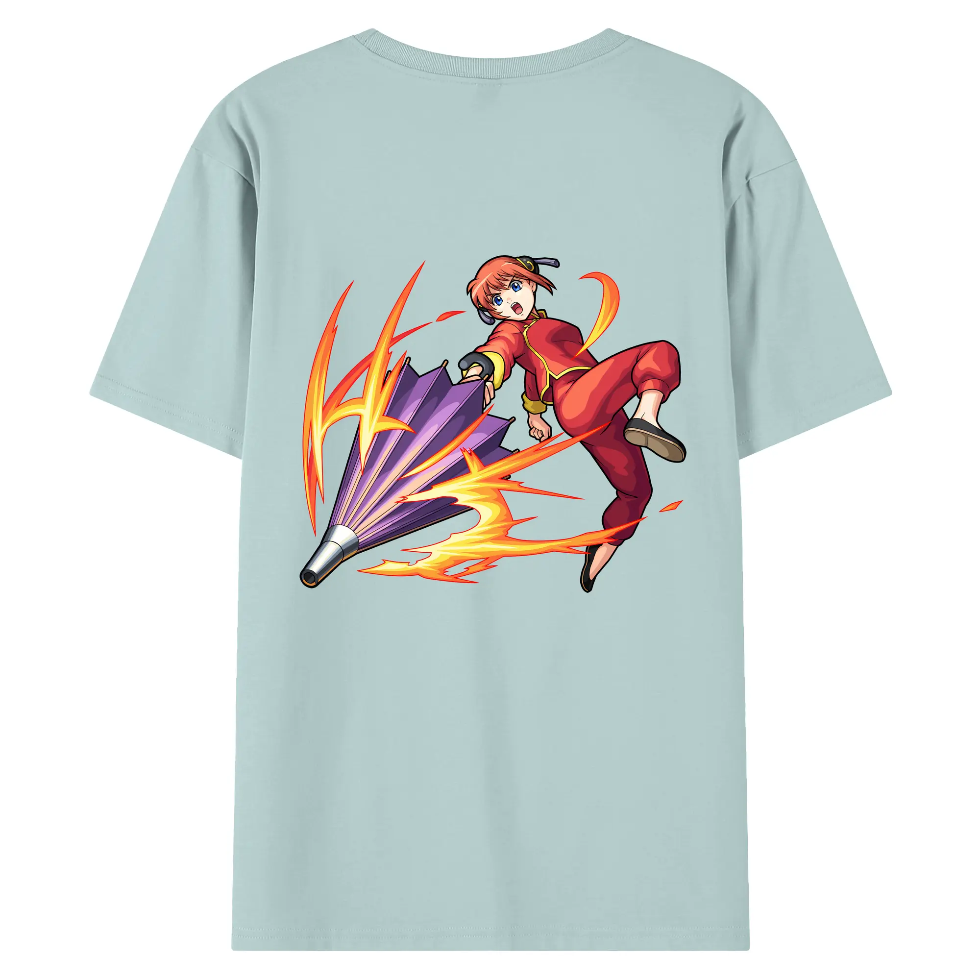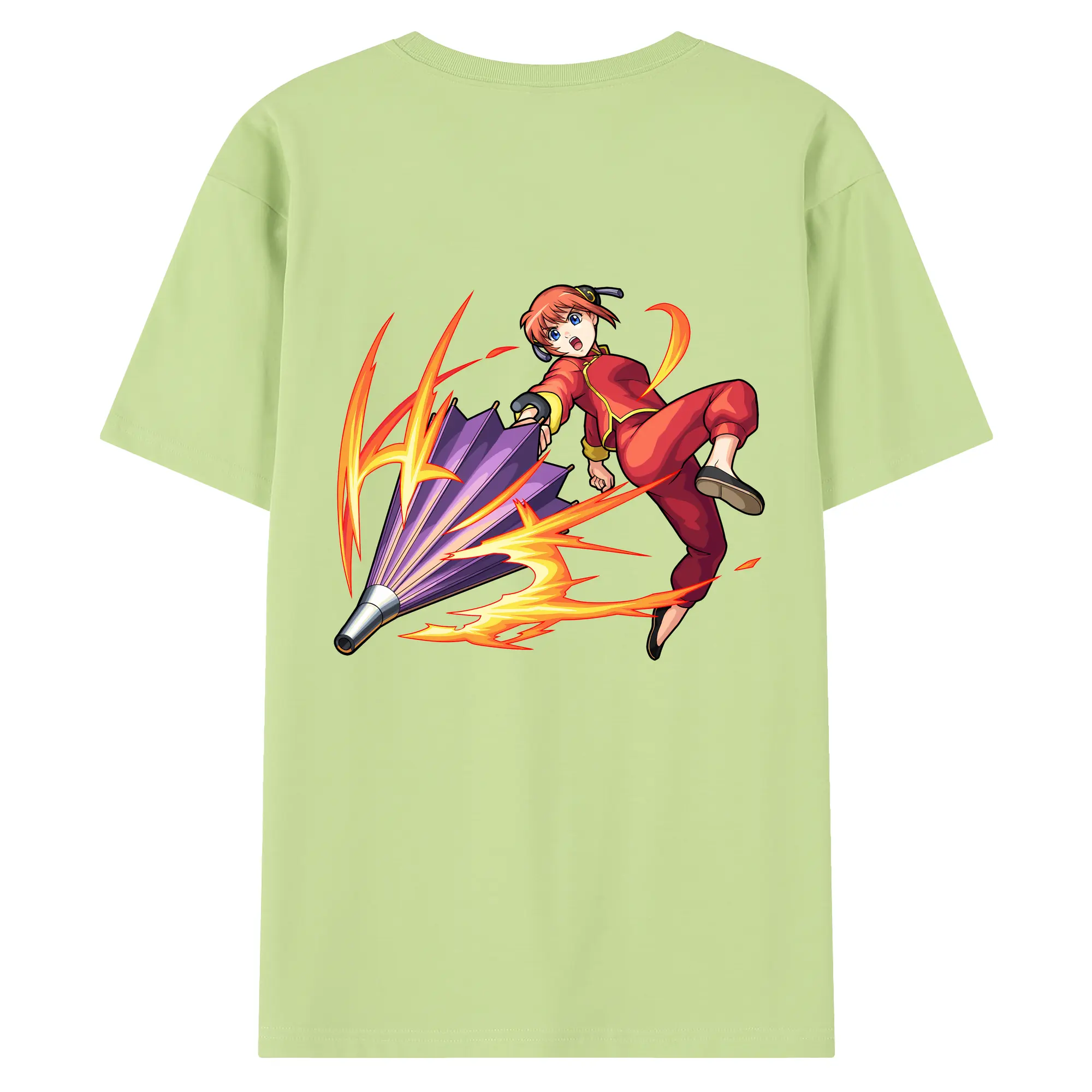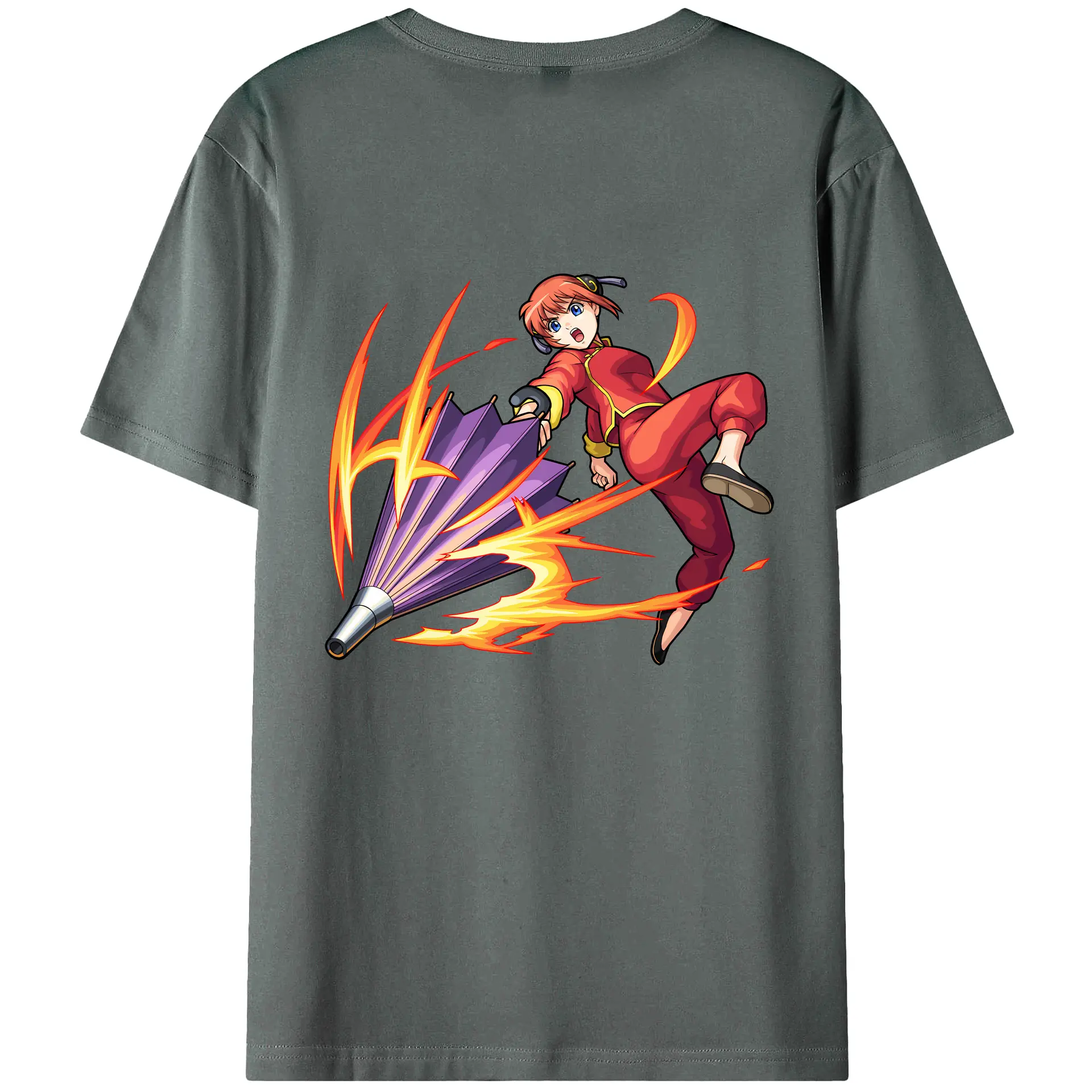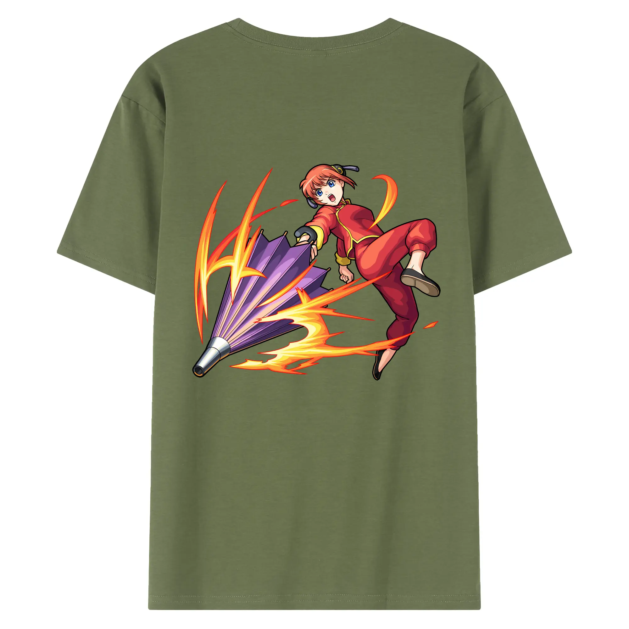 銀魂 グッズ 神楽 - 綿100% ヴィンテージ風 半袖Tシャツ ・ 背面プリント ・ 柔らか肌触り ・ 通気性 快適 ・ スポーツ カジュアル 外出用