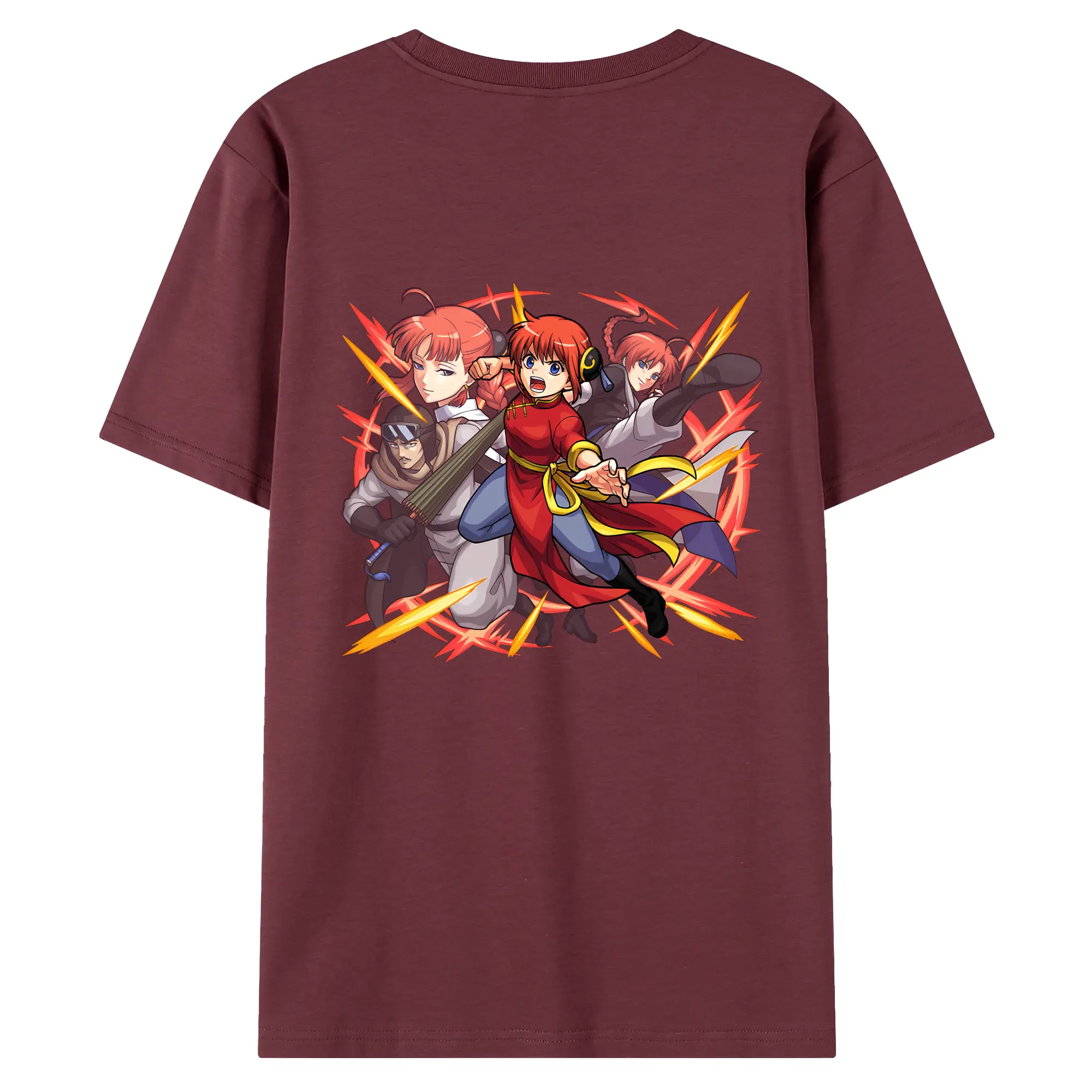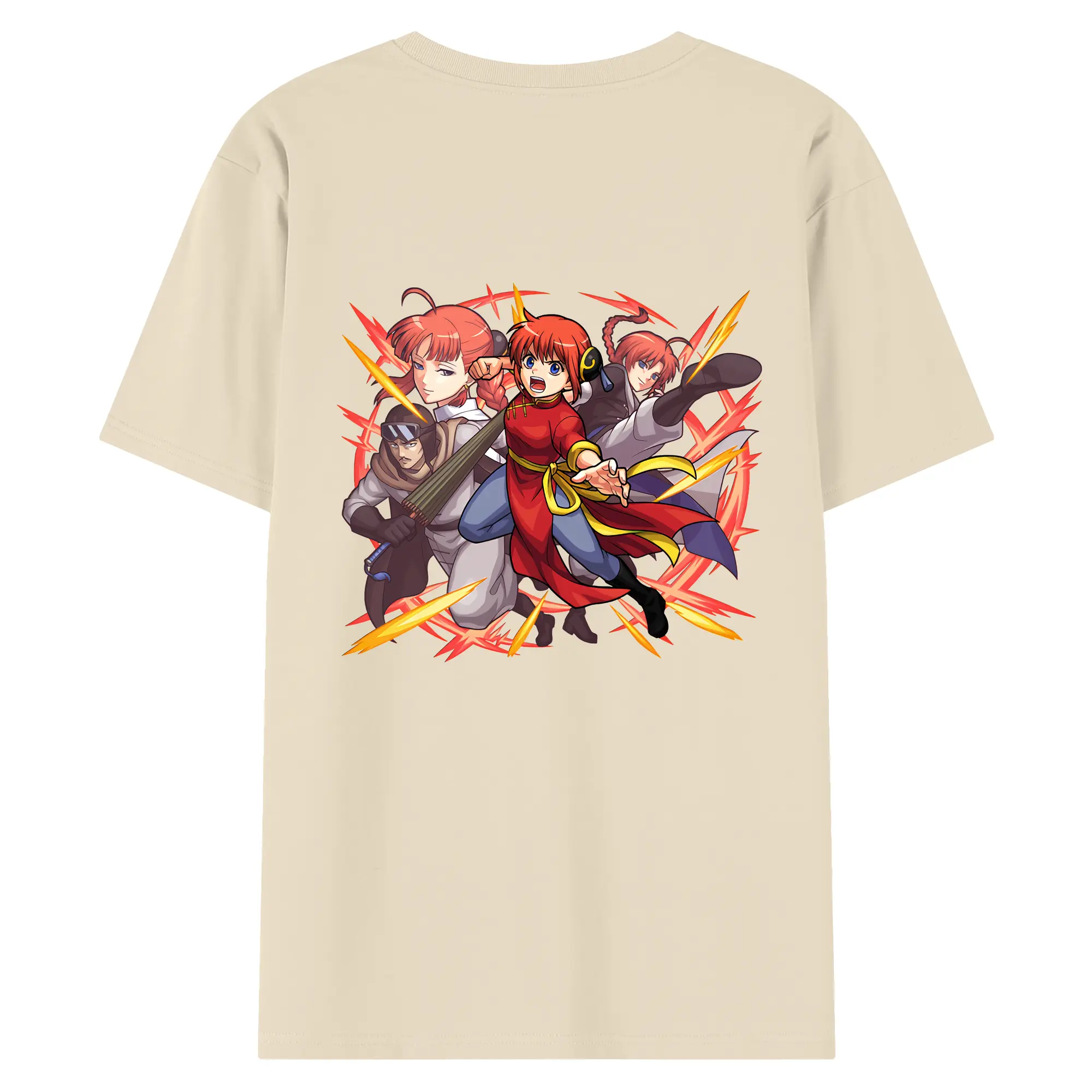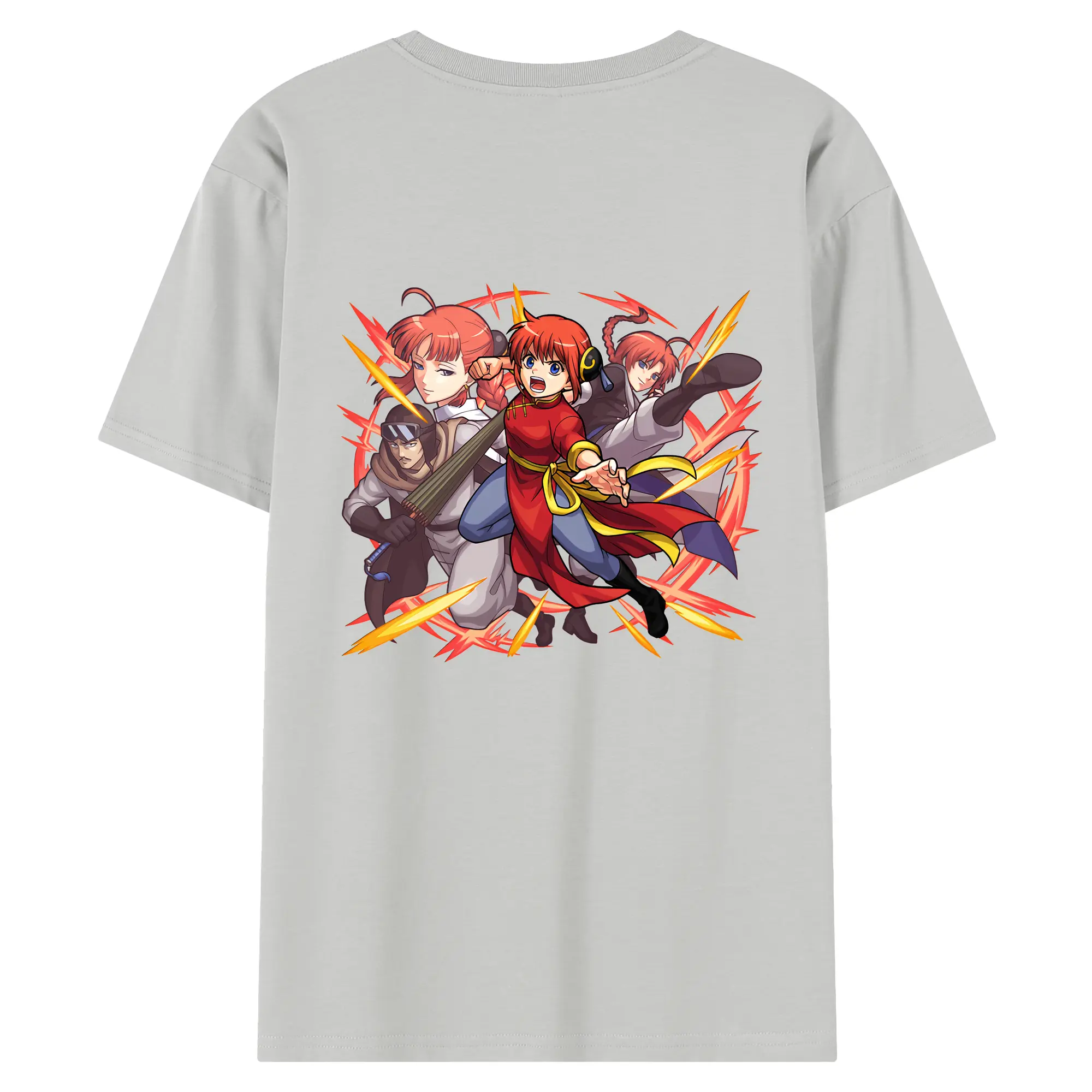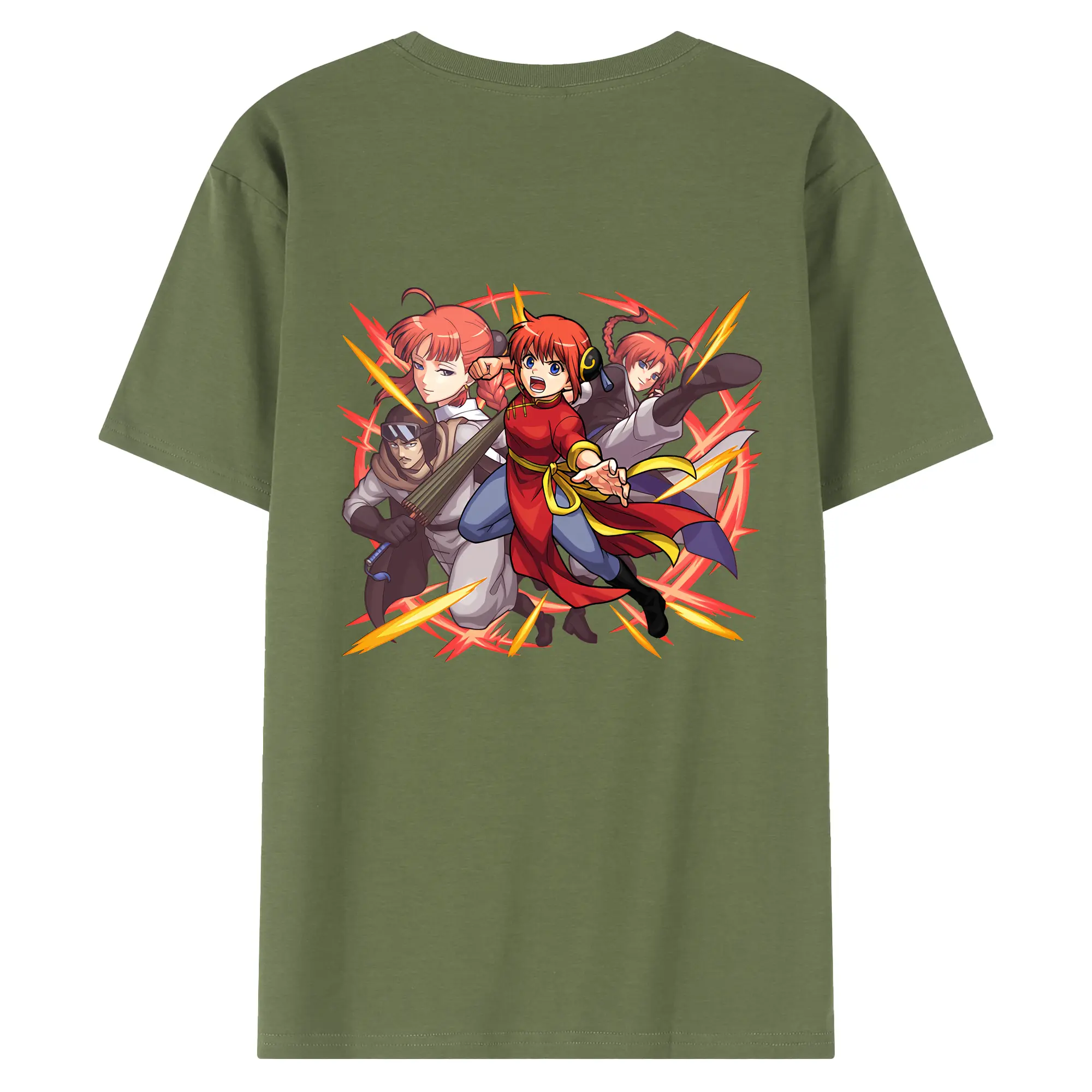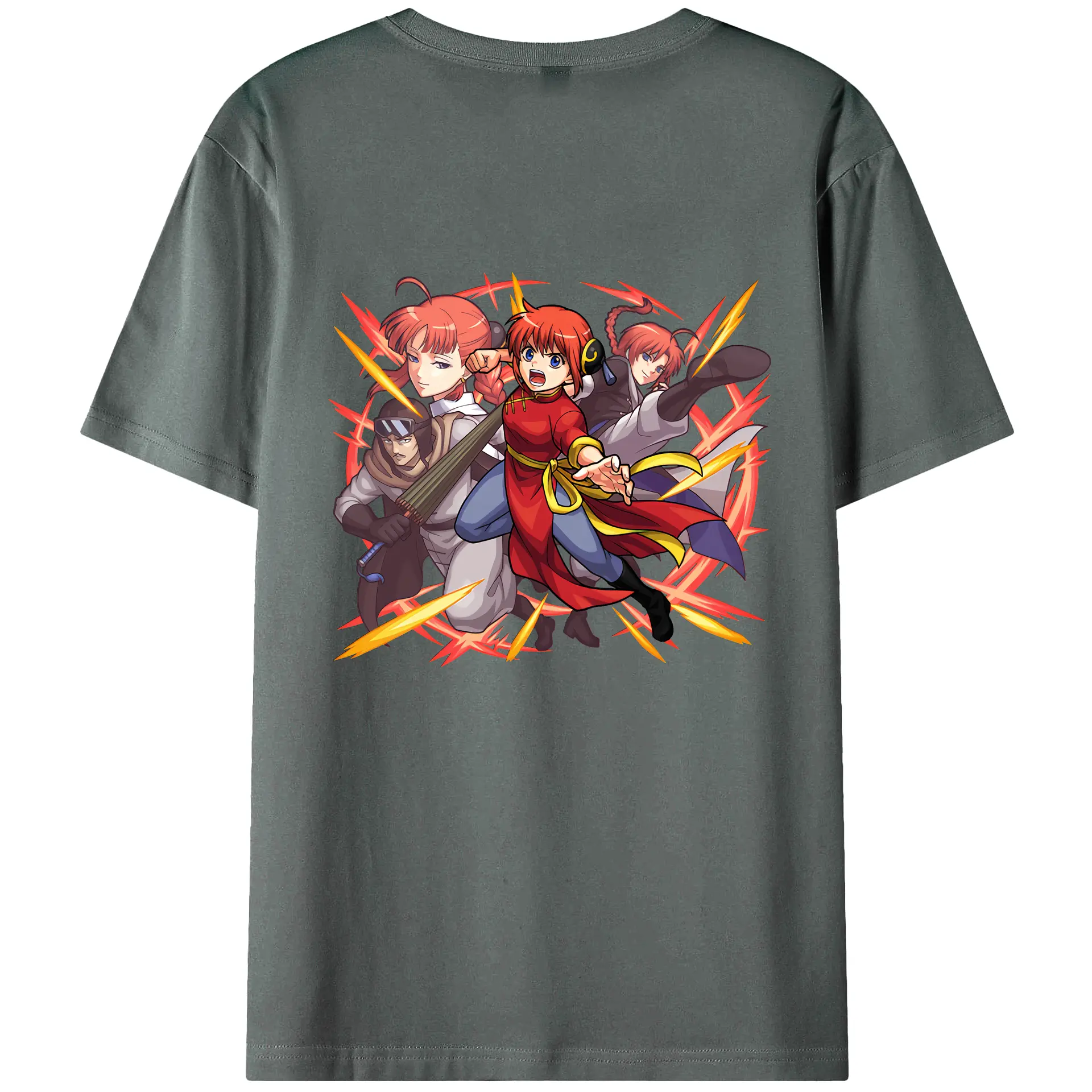 銀魂 グッズ 神楽 - 綿100% ヴィンテージ風 半袖Tシャツ ・ 背面プリント ・ 柔らか肌触り ・ 通気性 快適 ・ スポーツ カジュアル 外出用