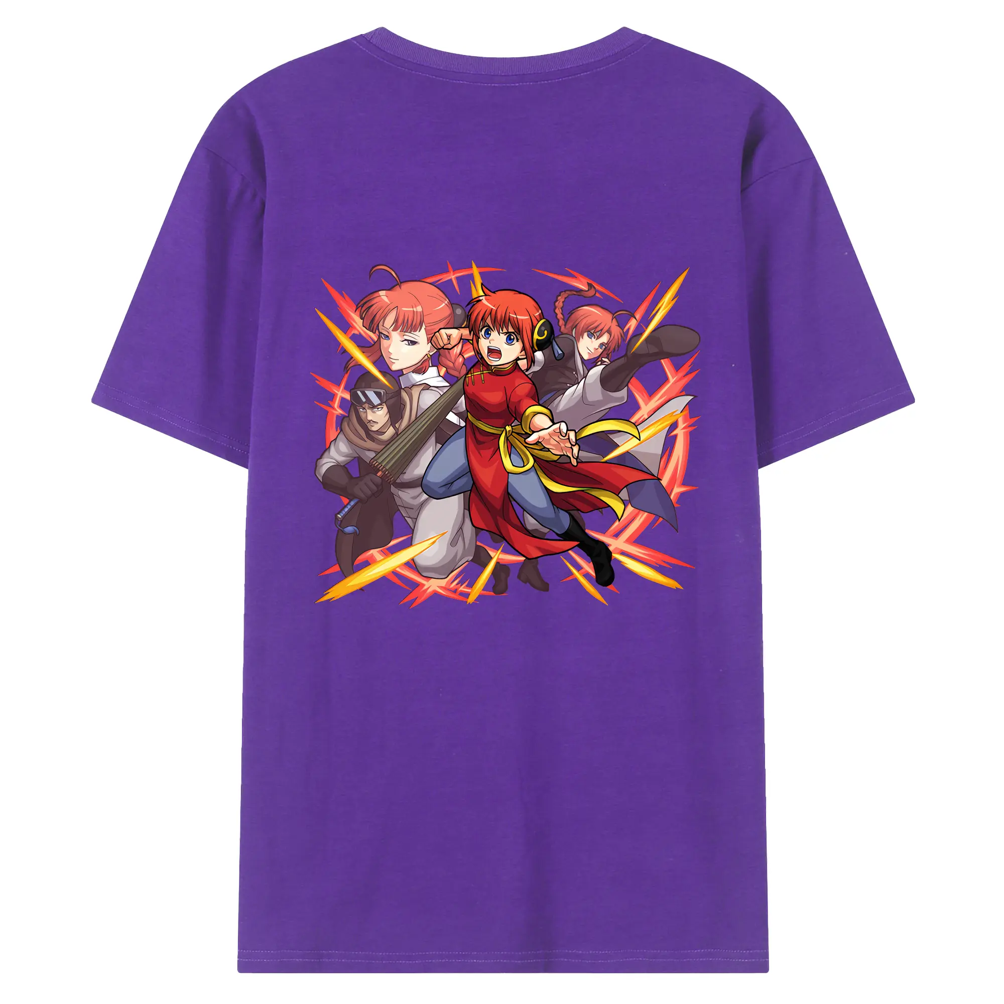 銀魂 グッズ 神楽 - 綿100% 半袖Tシャツ ・ フロントプリント ・ 快適 通気性 ・ 日常使い 散歩 スポーツ用
