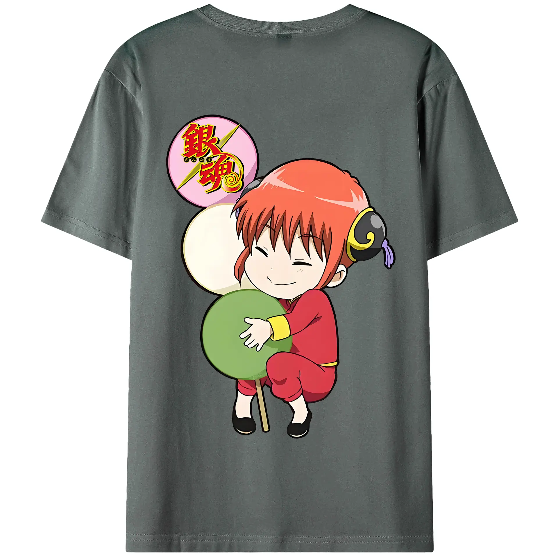 銀魂 グッズ 神楽 - 綿100% 半袖Tシャツ ・ フロントプリント ・ 快適 通気性 ・ 日常使い 散歩 スポーツ用