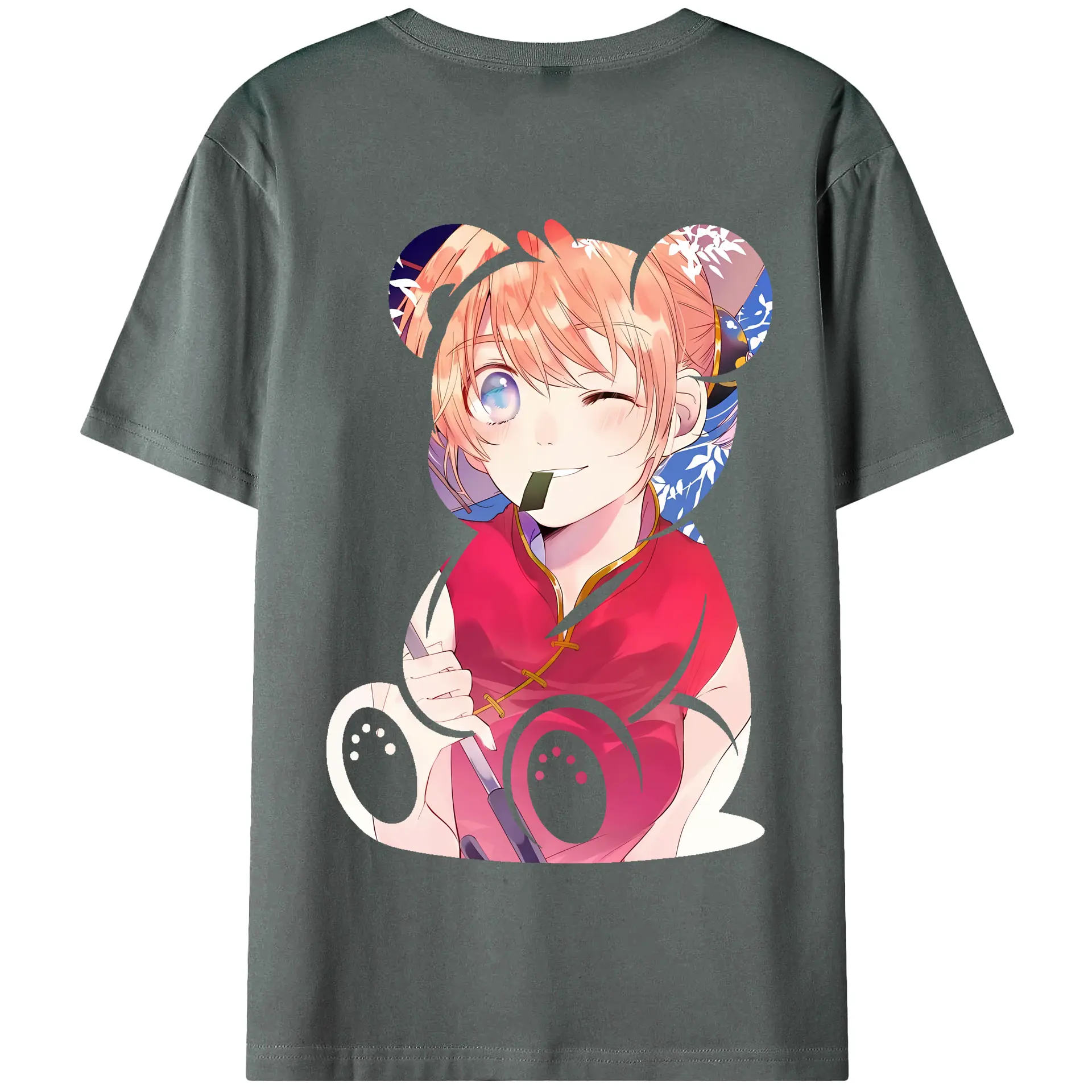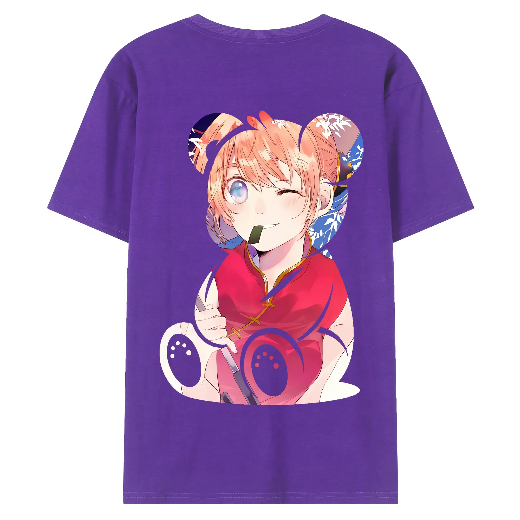 銀魂 グッズ 神楽 - 綿100% ヴィンテージ風 半袖Tシャツ ・ 背面プリント ・ 柔らか肌触り ・ 通気性 快適 ・ スポーツ カジュアル 外出用