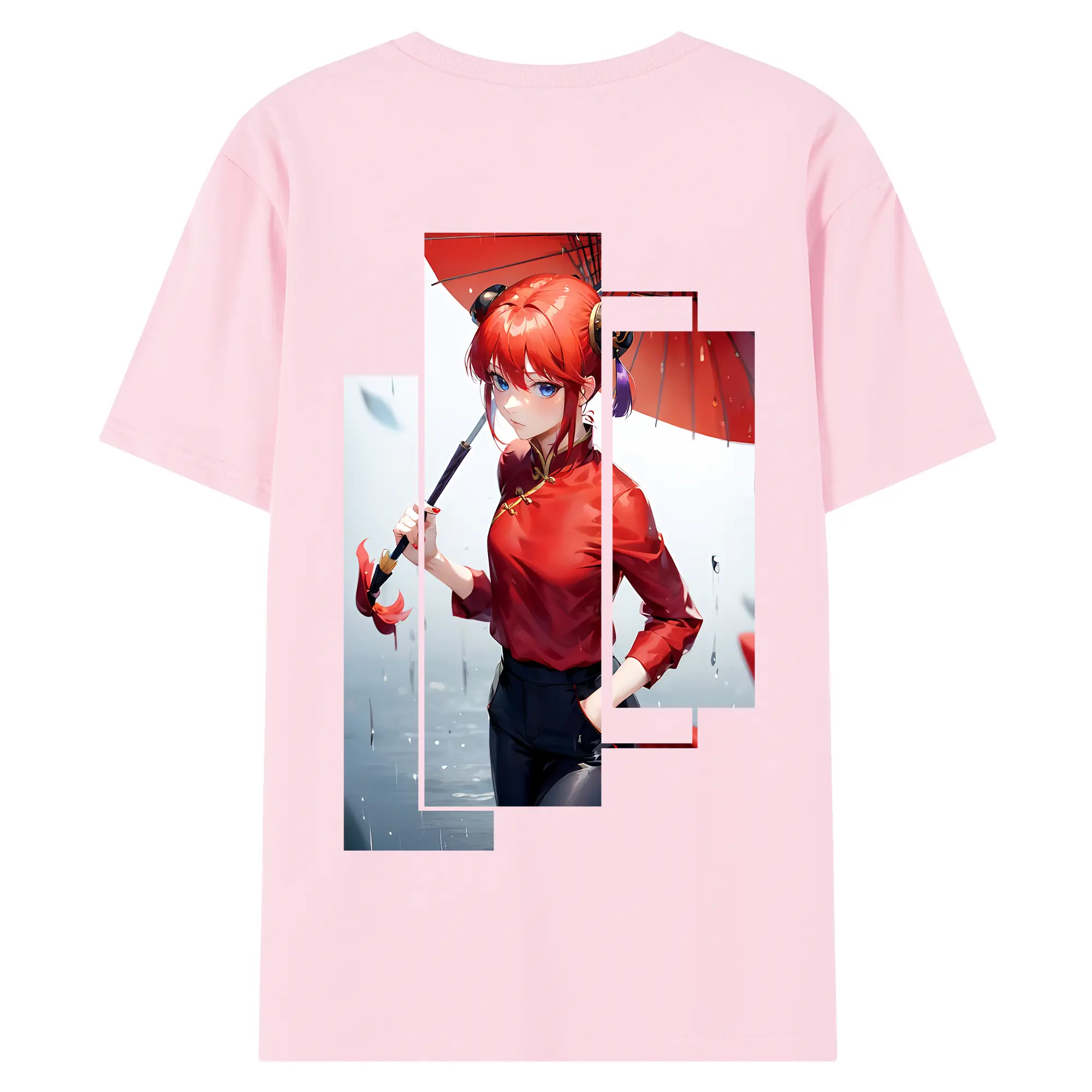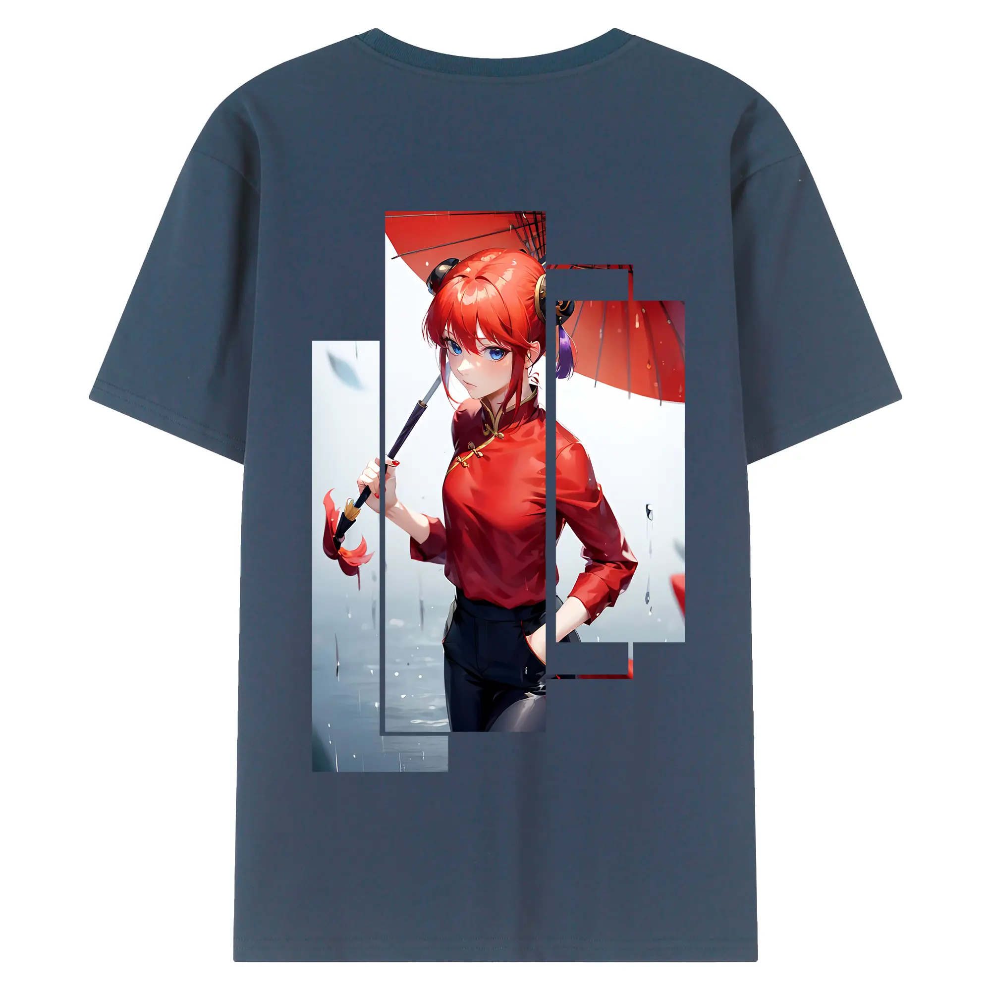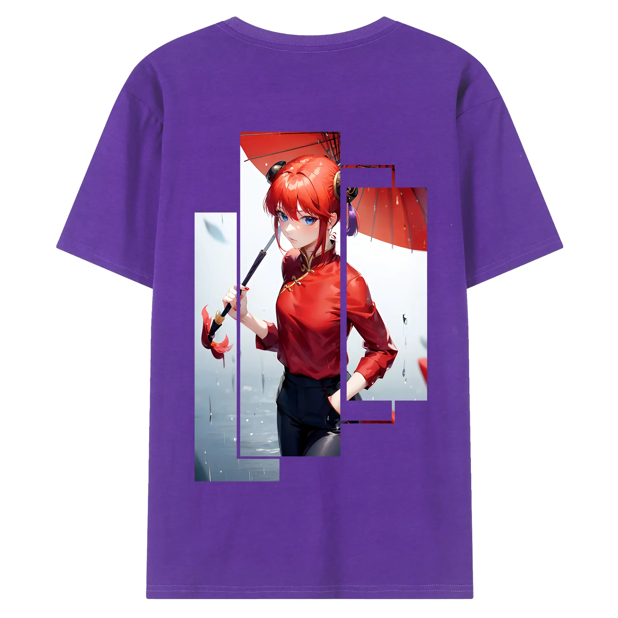 銀魂 グッズ 神楽 - 綿100% ヴィンテージ風 半袖Tシャツ ・ 背面プリント ・ 柔らか肌触り ・ 通気性 快適 ・ スポーツ カジュアル 外出用