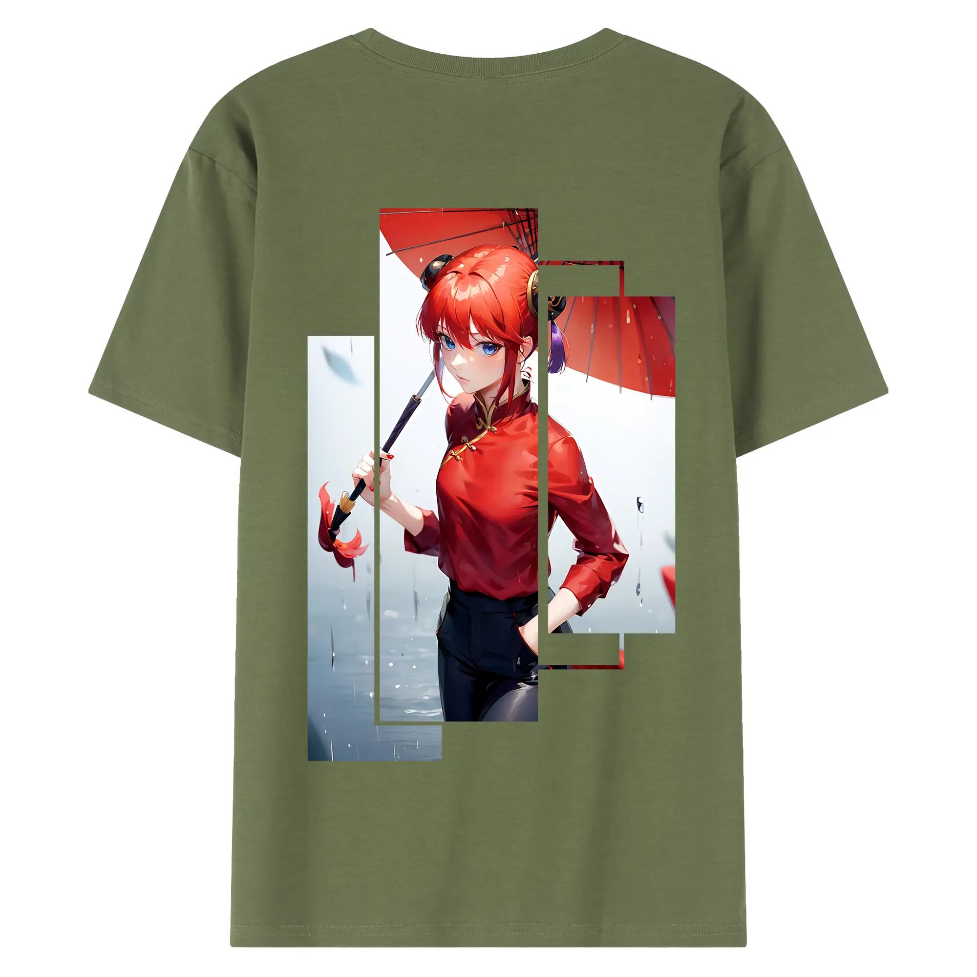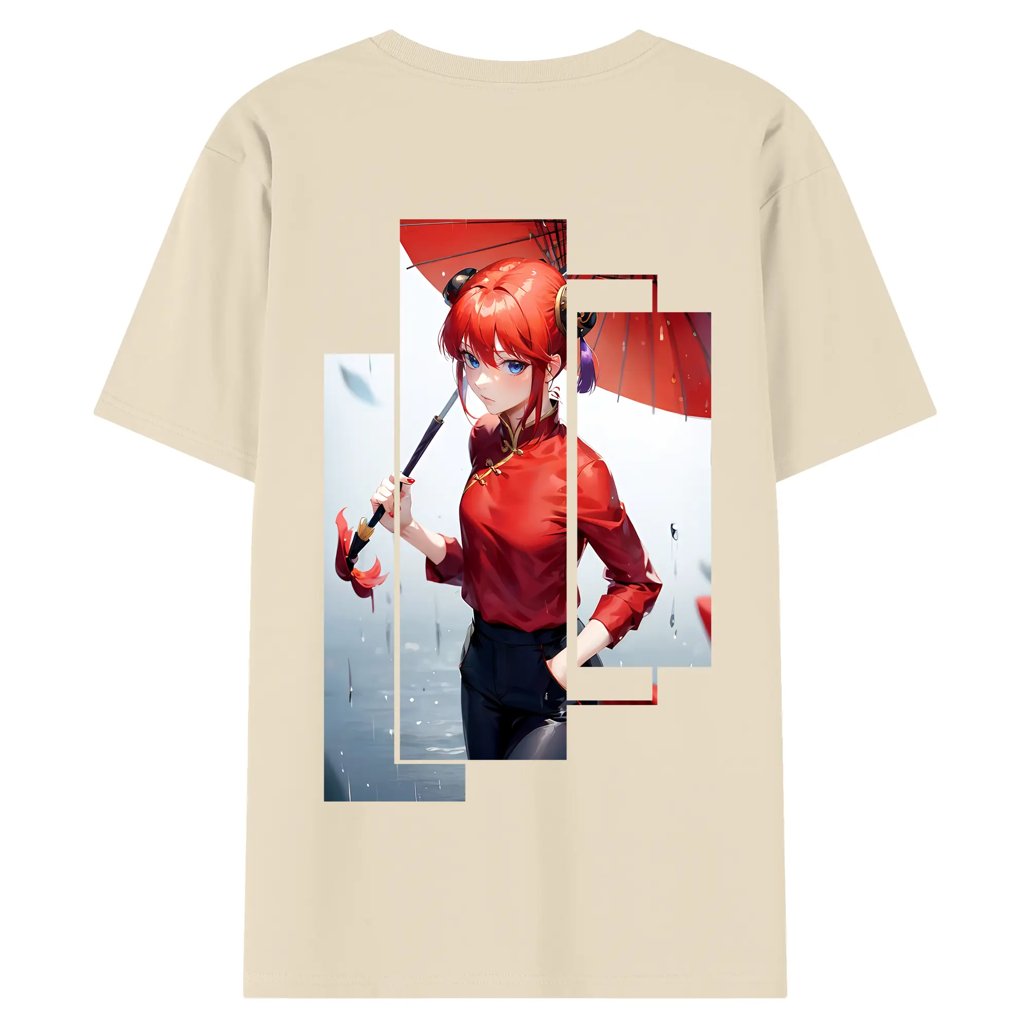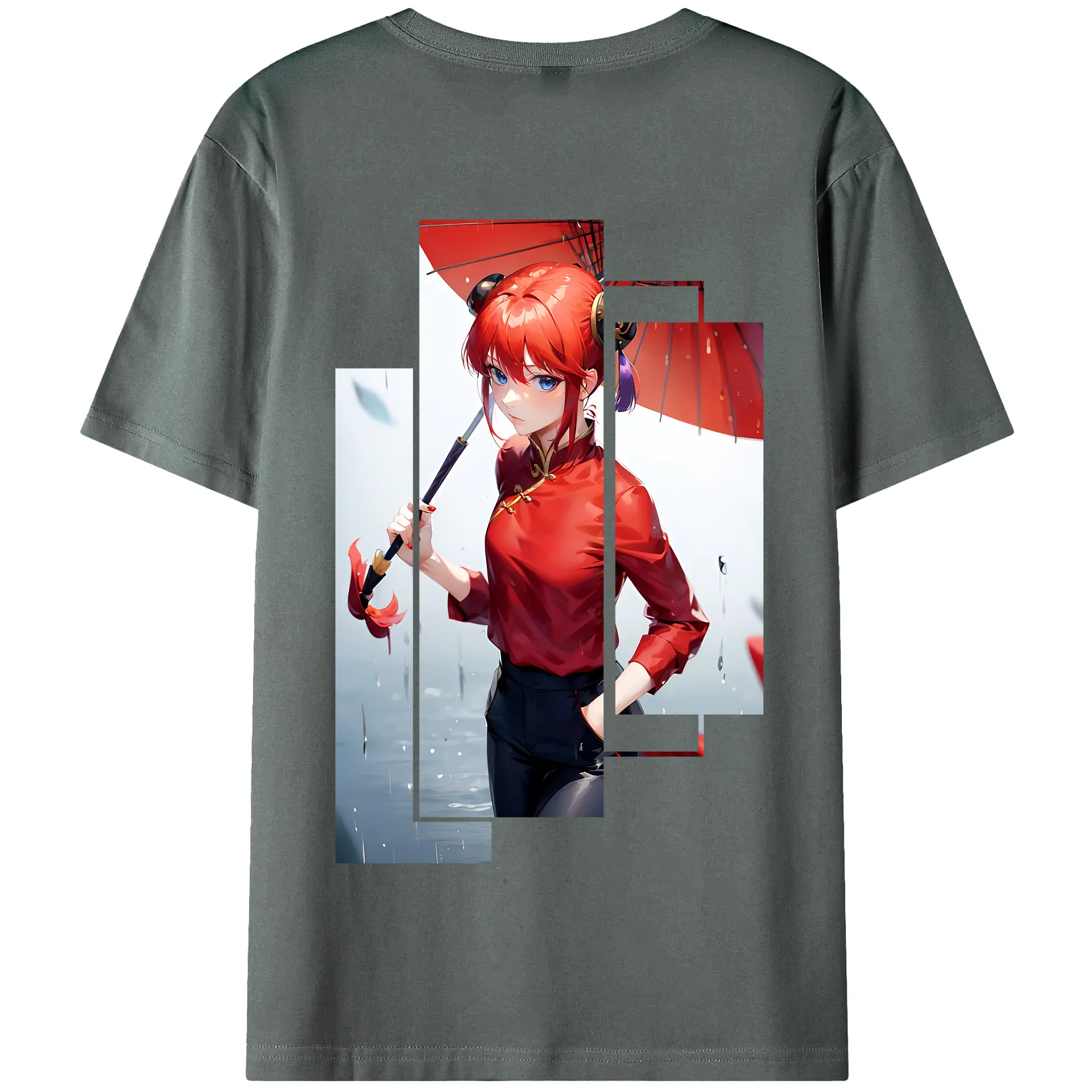 銀魂 グッズ 神楽 - 綿100% ヴィンテージ風 半袖Tシャツ ・ 背面プリント ・ 柔らか肌触り ・ 通気性 快適 ・ スポーツ カジュアル 外出用