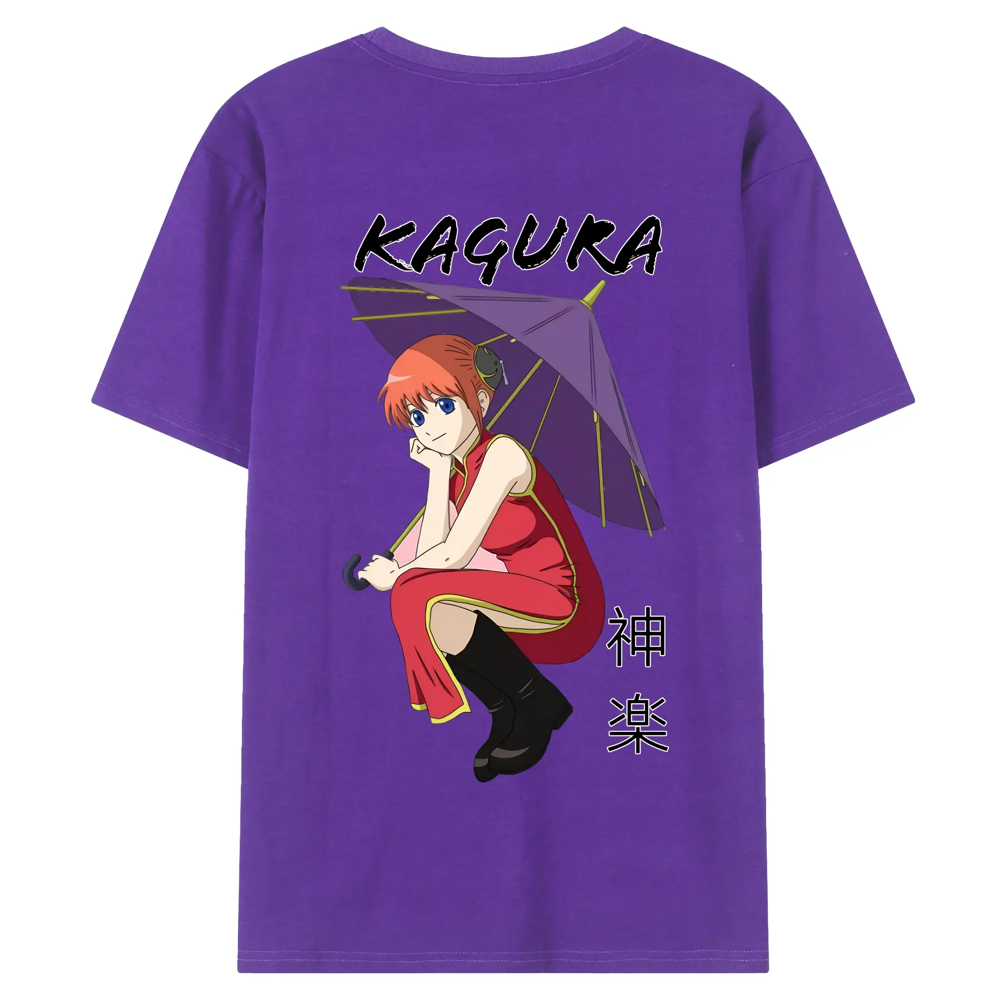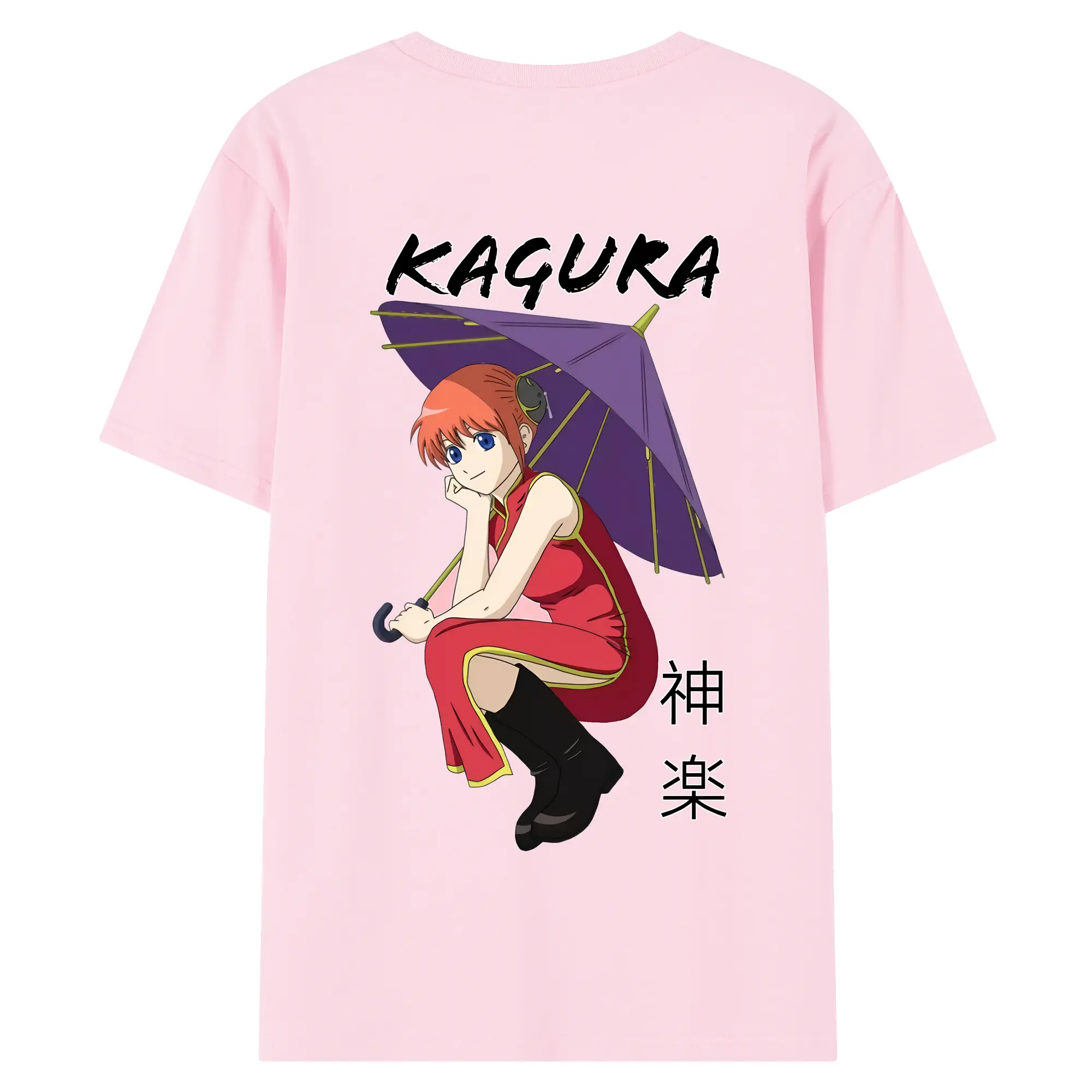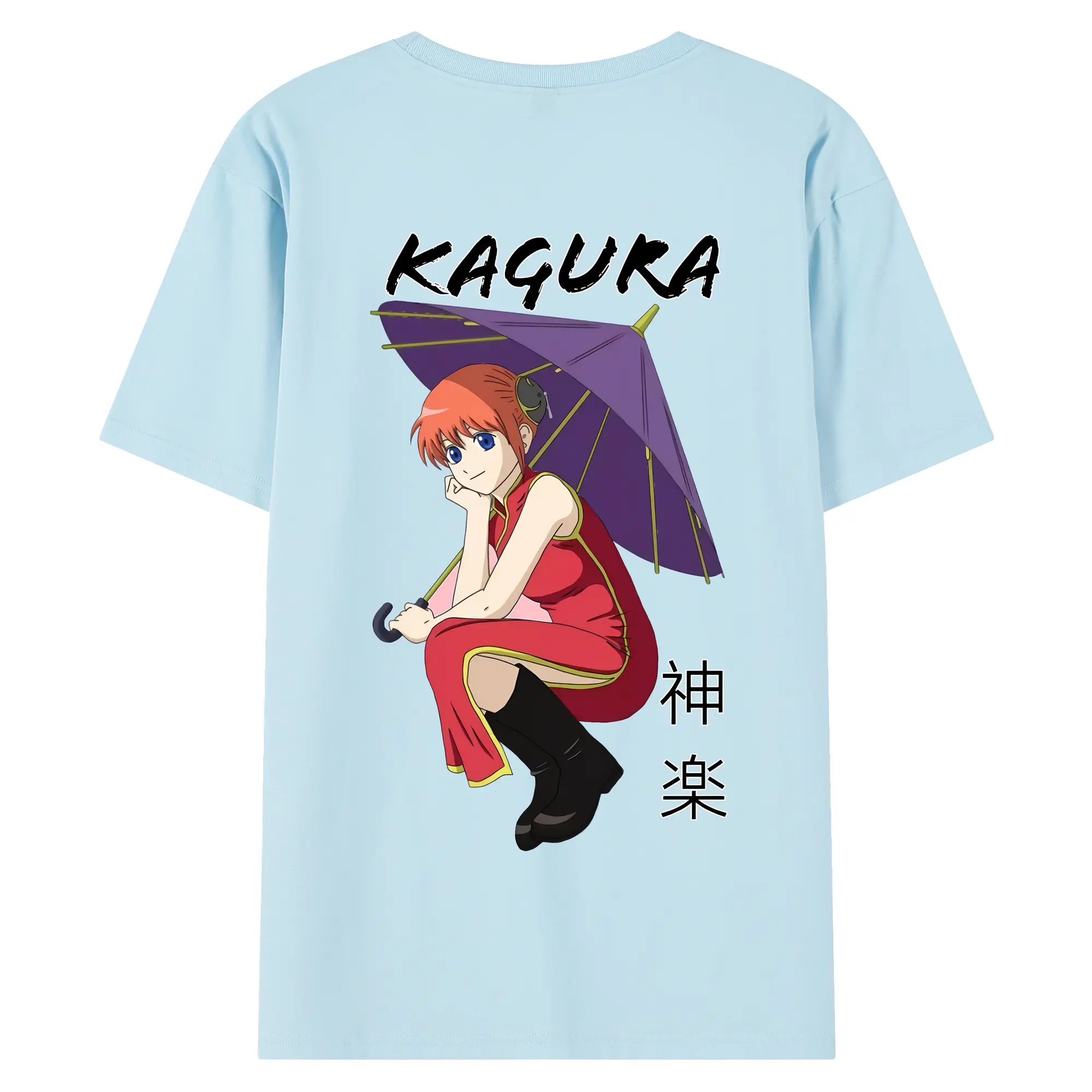 銀魂 グッズ 神楽 - 綿100% 半袖Tシャツ ・ フロントプリント ・ 快適 通気性 ・ 日常使い 散歩 スポーツ用