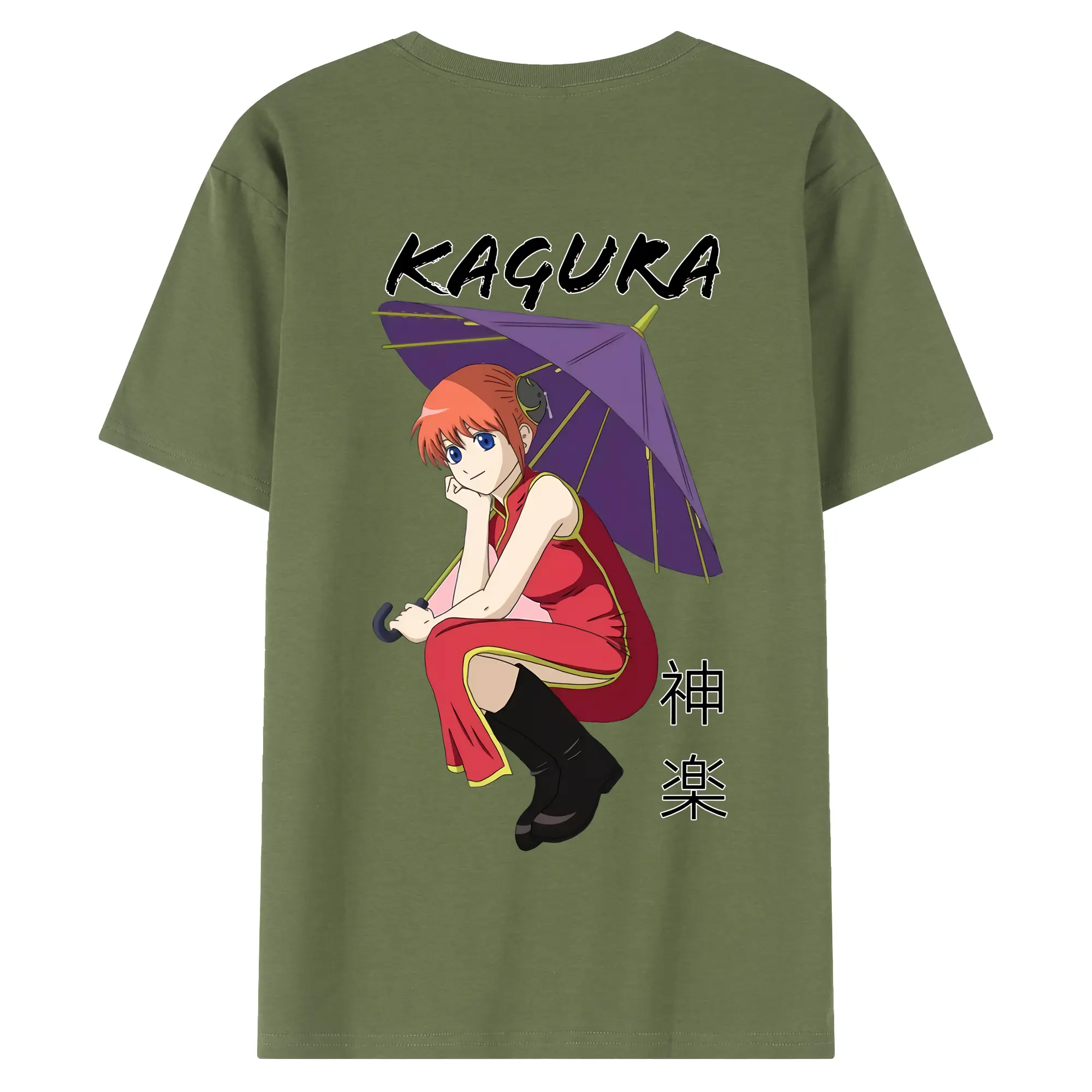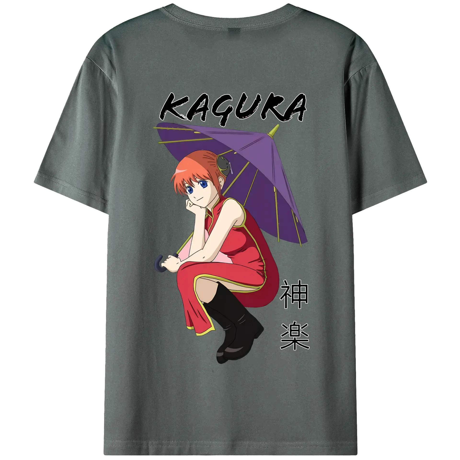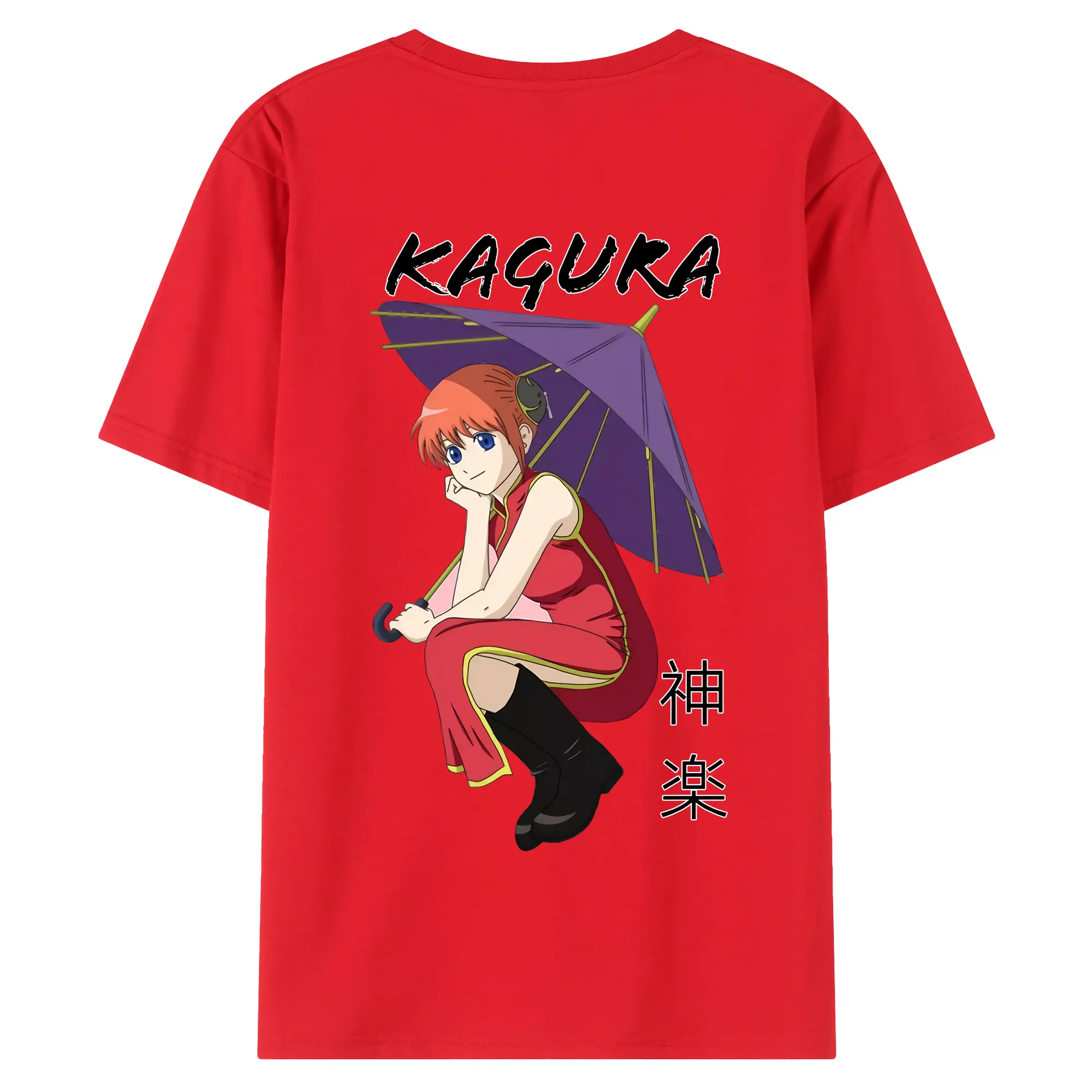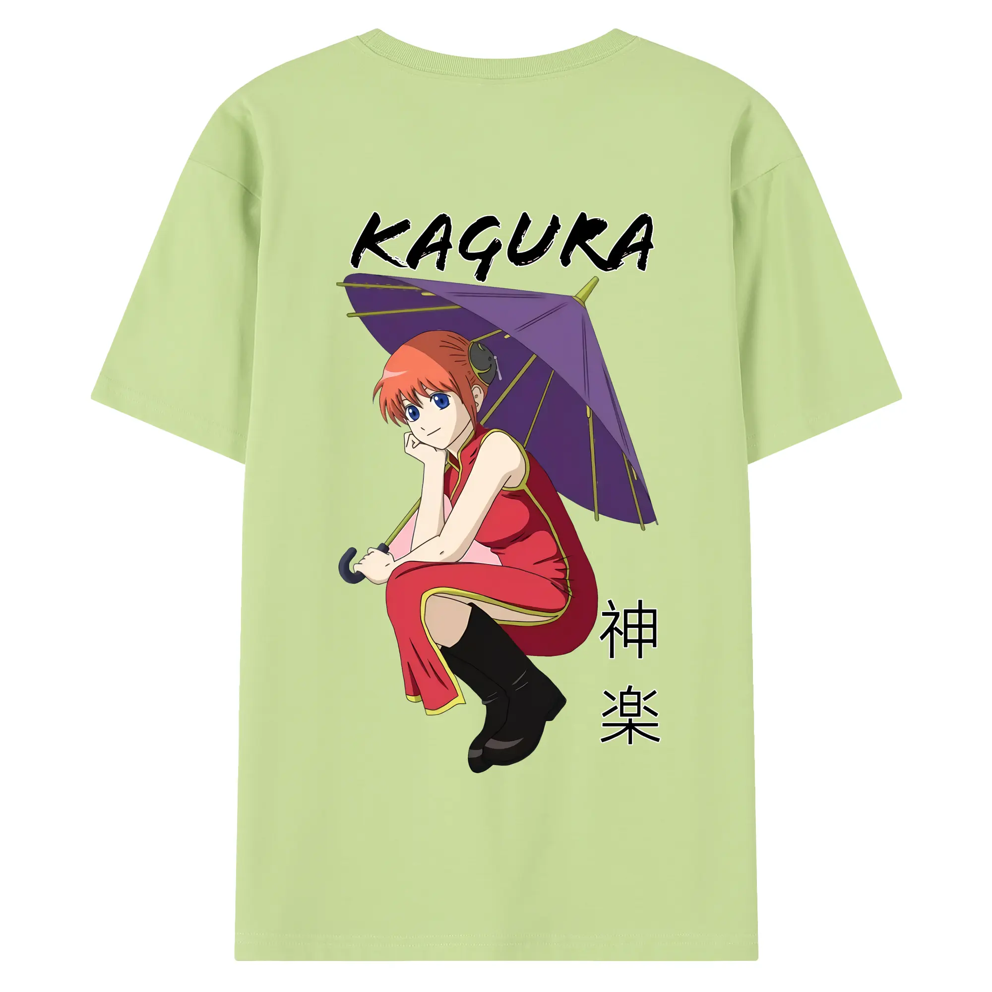 銀魂 グッズ 神楽 - 綿100% 半袖Tシャツ ・ フロントプリント ・ 快適 通気性 ・ 日常使い 散歩 スポーツ用