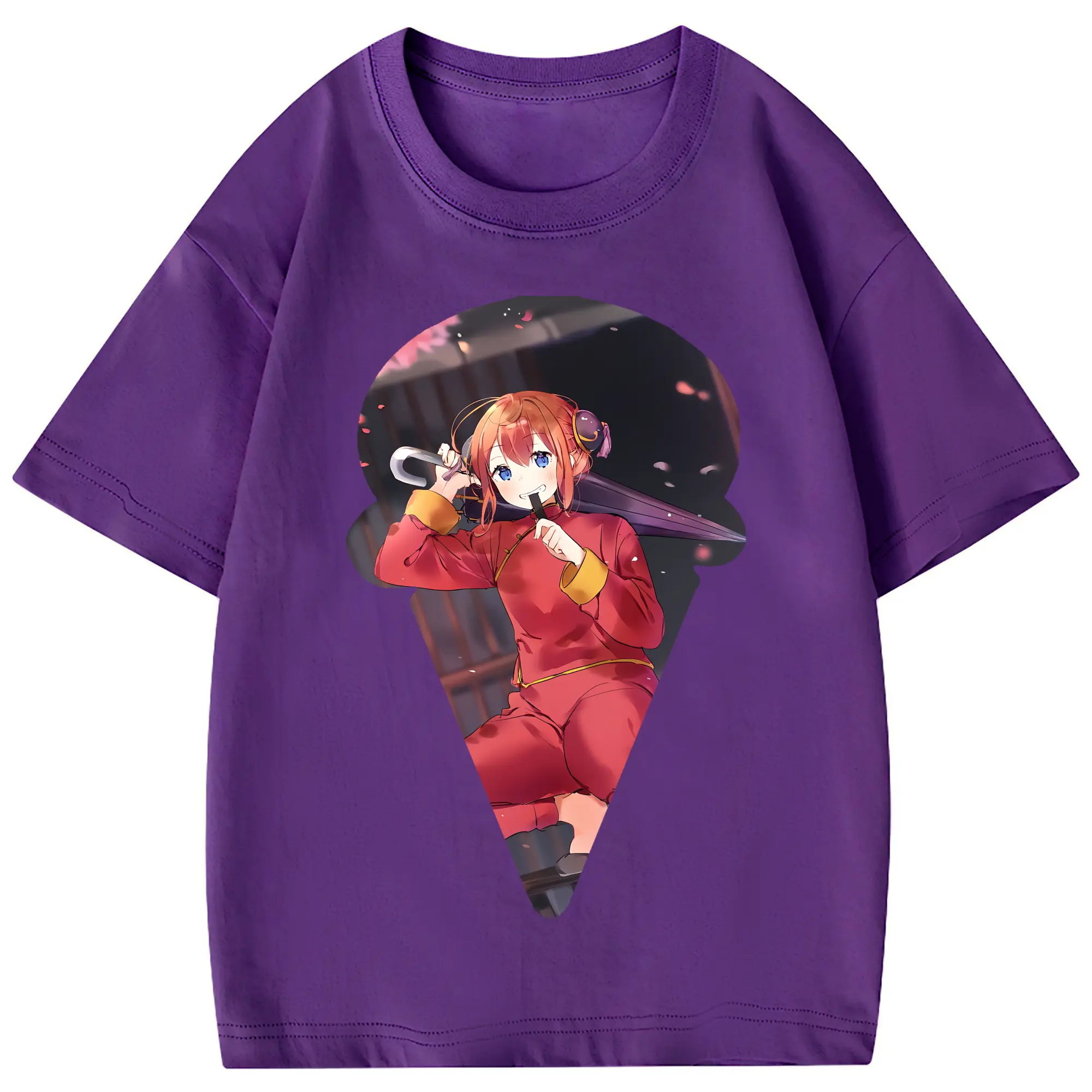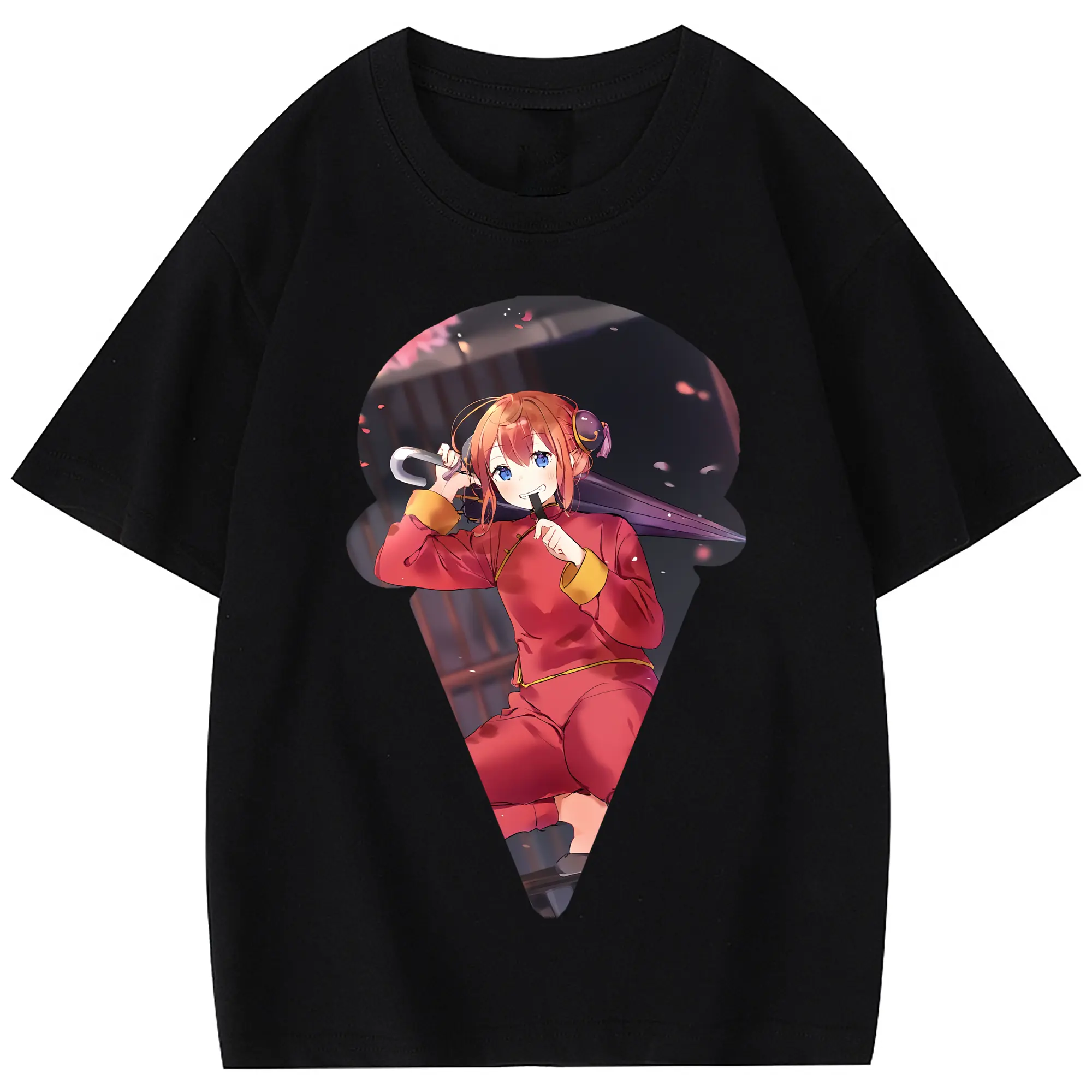 銀魂 グッズ 神楽 - 綿100% 半袖Tシャツ ・ フロントプリント ・ 快適 通気性 ・ 日常使い 散歩 スポーツ用