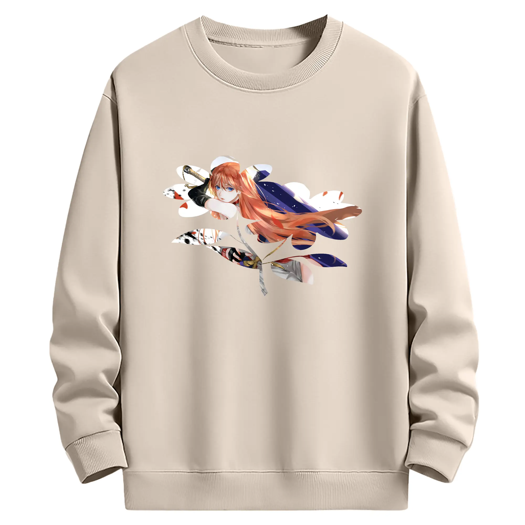 銀魂 グッズ 神楽 - 薄手 クルーネック スウェット 裏毛260g · ポリエステル 春秋向け カジュアル 男女兼用 · トレーナー デイリー スポーツ 散歩に最適