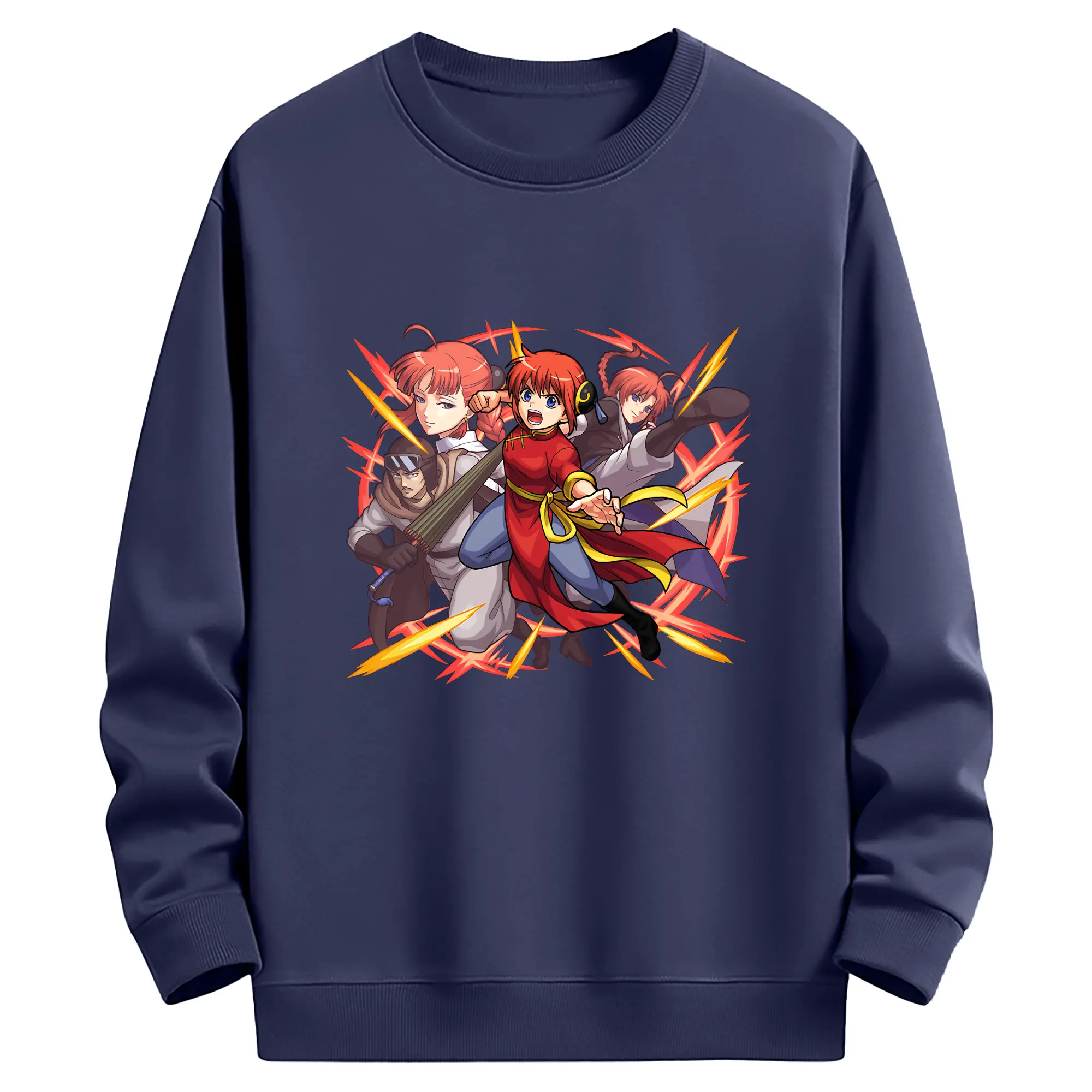 銀魂 グッズ 神楽 - 薄手 クルーネック スウェット 裏毛260g · ポリエステル 春秋向け カジュアル 男女兼用 · トレーナー デイリー スポーツ 散歩に最適