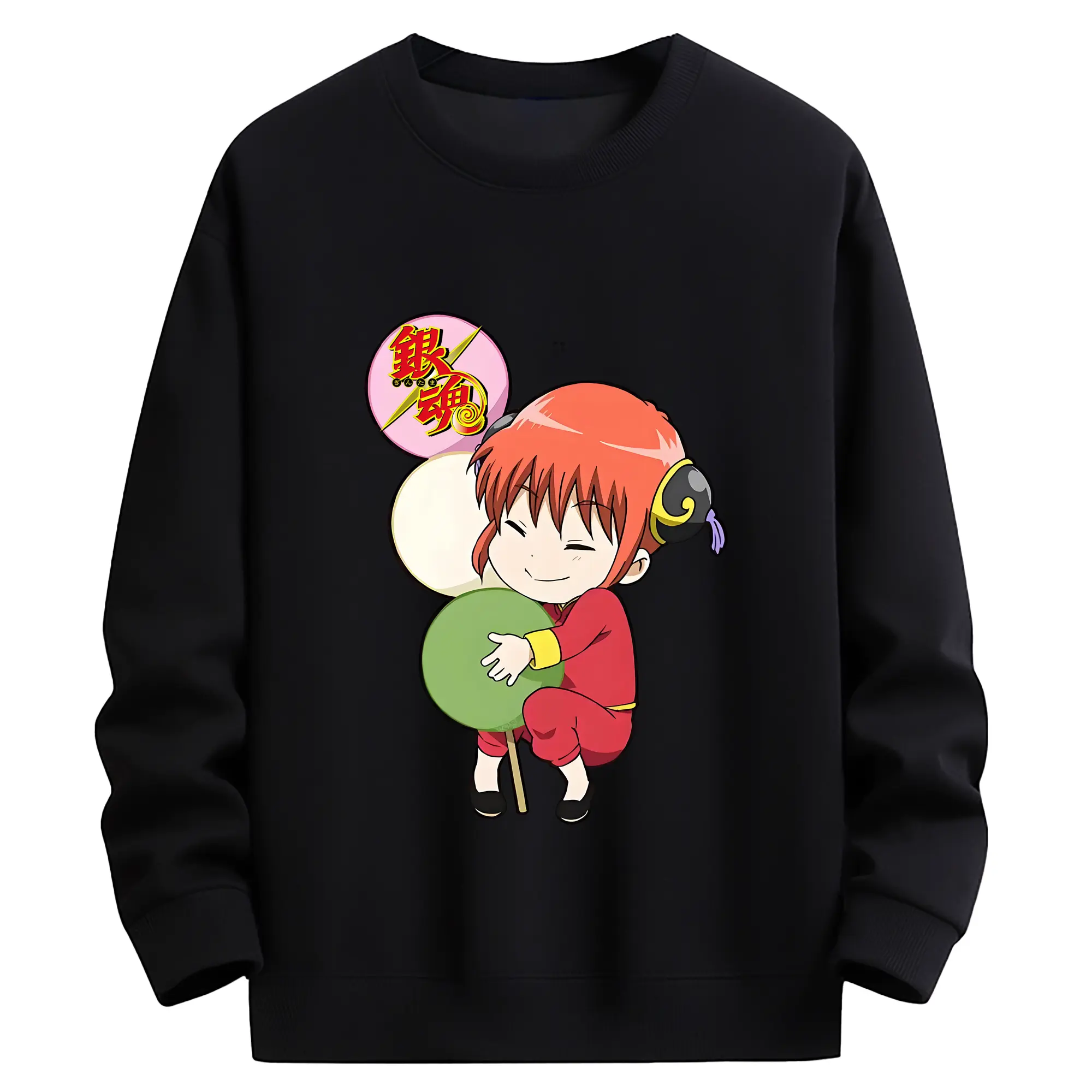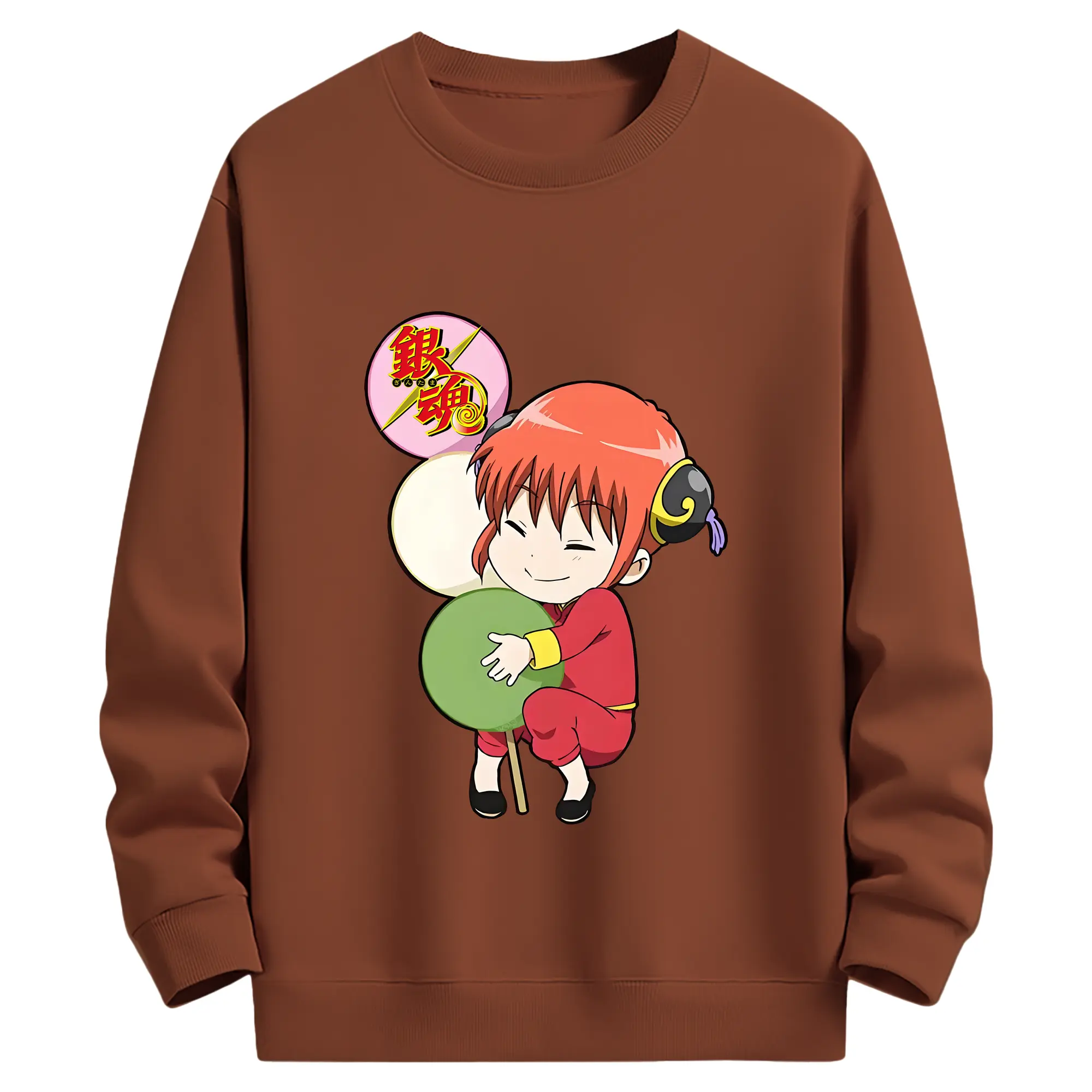 銀魂 グッズ 神楽 - 薄手 クルーネック スウェット 裏毛260g · ポリエステル 春秋向け カジュアル 男女兼用 · トレーナー デイリー スポーツ 散歩に最適